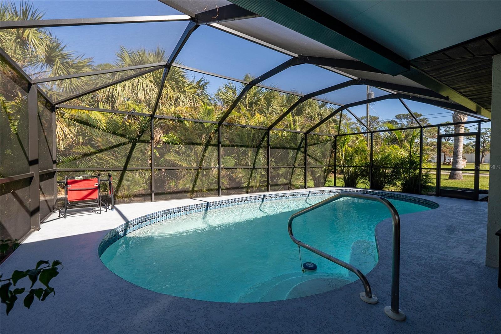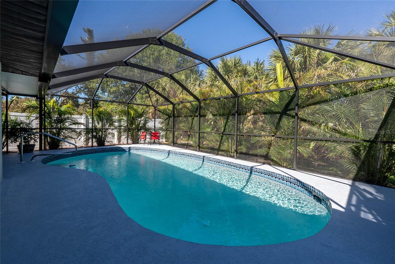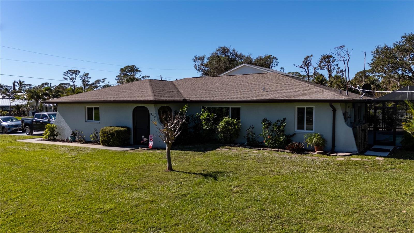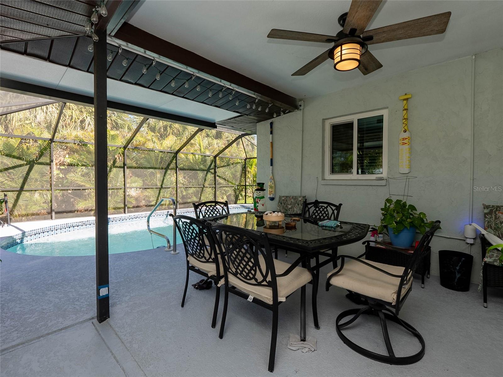 You will love this quiet peaceful location with a new price. Just a short walk or bike ride to Lemon Bay Environmental Park and Lemon Bay! This split floor plan three bedroom home, located on an over sized lot, features many upgrades, including an updated kitchen with stainless steel appliances and granite counter tops. Ceramic tile floors in every room except the second bedroom (vinyl). No carpet to replace. New roof in August of 2018. New water heater, hurricane windows amd hurricane rated garage door, which will give you a discount on your insurance premium! New A/C in 2018. New pool cage in 2023, and a brand new driveway. Also, a newer electric panel. If you are purchasing with financing, no flood insurance required! Many furniture items are available by separate contract. Homes in this highly sought after neighborhood are rarely available, so make your showing appointment before it is gone!