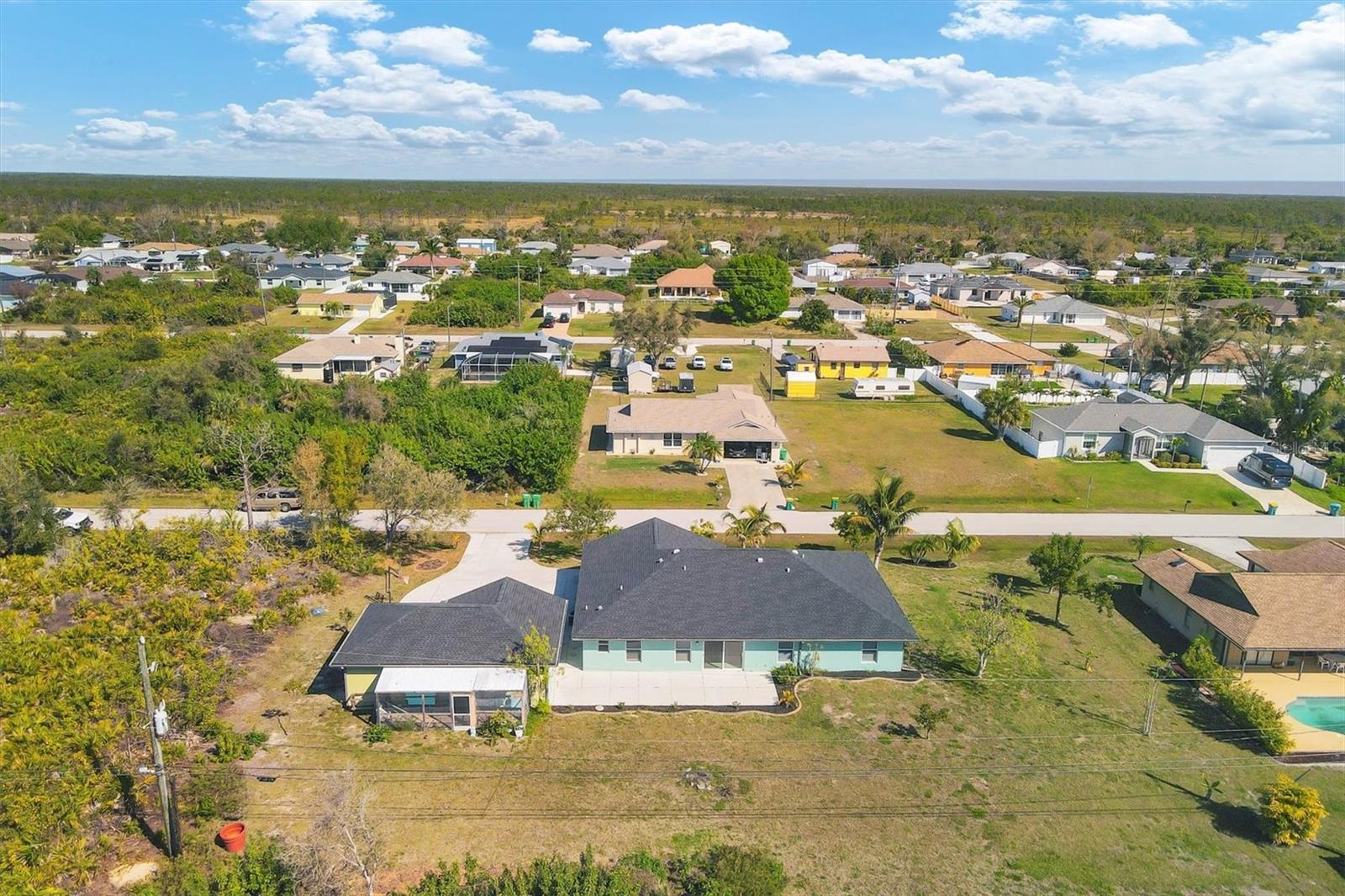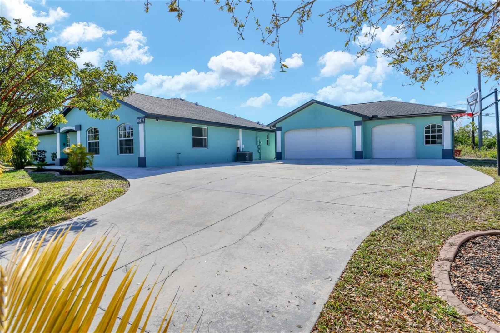 Welcome to your Englewood East family home, conveniently located in Flood Zone X, which won’t require flood insurance by most Lenders. This zone is considered to be the safest area in terms of Flood Risk. Properties in this zone are outside of a 500-year flood plane and protected from the 100-year food plane by a flood control system. Having taken zero hurricane damage from either Hurricane Helene or Milton, this 2003 beautifully built, custom floor plan is perfect for large families featuring 5 bedrooms, 3 baths and sits on a double lot, with plenty of room to play. The exterior of the home was freshly painted in 2022 and the interior was freshly painted in 2024. You will enter through the patio-covered entry into the spacious inviting living room with ample natural lighting. The kitchen features wrap-around counters with ample cabinet space and a private pantry while leading to the quaint dining space that is well-lit by the newly installed, hurricane-impact sliding glass doors to the backyard. The sizable master features a large walk-in closet along with a second sliding door closet and the master bathroom features a bathtub and separate, recently updated walk-in shower. The remaining four bedrooms and bedroom-sized office without a closet that can be used as a bedroom have newly laid Lux Cork Back Vinyl flooring and are located across the home providing privacy to the Master Bedroom and have two additional bathrooms which previously functioned as girl’s and boy’s bathrooms. Lastly, the home features an open utility room with a dryer, Queen Speed commercial washer, electric water heater, and Pex Plumbing Water System Panel. This space can function as another pantry or in-home storage space as desired. There is a long-extended driveway providing abundant guest parking or a great spot to shoot hoops with the 2023 Basketball hoop. The massive three-car detached garage was built in 2006 and has a newly installed, hurricane-impact Double French Glass Door. The home features a 2023 full roof replacement, newer hot water heater, Nest thermostat, security lighting, Ring Floodlight Camera, and ample mature landscaping featuring Gumbo Limbo Tree, Jasper Bush, Gardena, and Fruit Trees such as Coconut Palms, Banana, and Maranga Trees. One of the best-kept secrets in Florida, Englewood is perfectly situated between Fort Myers & Sarasota for additional access to Marinas, Boating, Fishing, Parks, Playgrounds, Shopping, Restaurants, Baseball Spring Training, Myakka State Preserve, Wildlife, and much more. Come enjoy all that the Southwest Florida Lifestyle has to provide. Let me help you find Your Piece of Paradise!