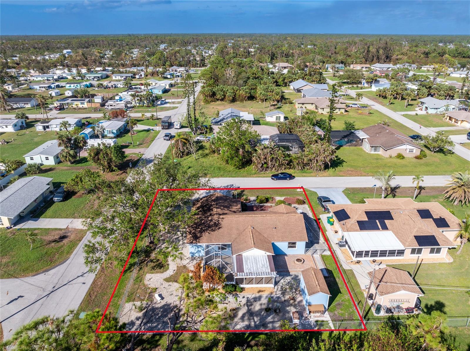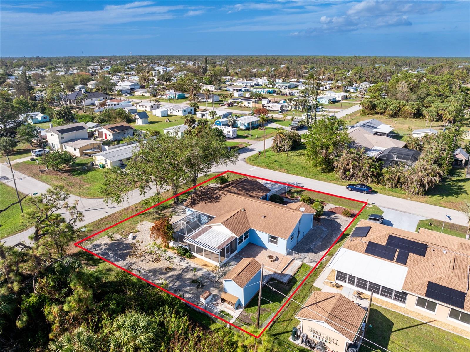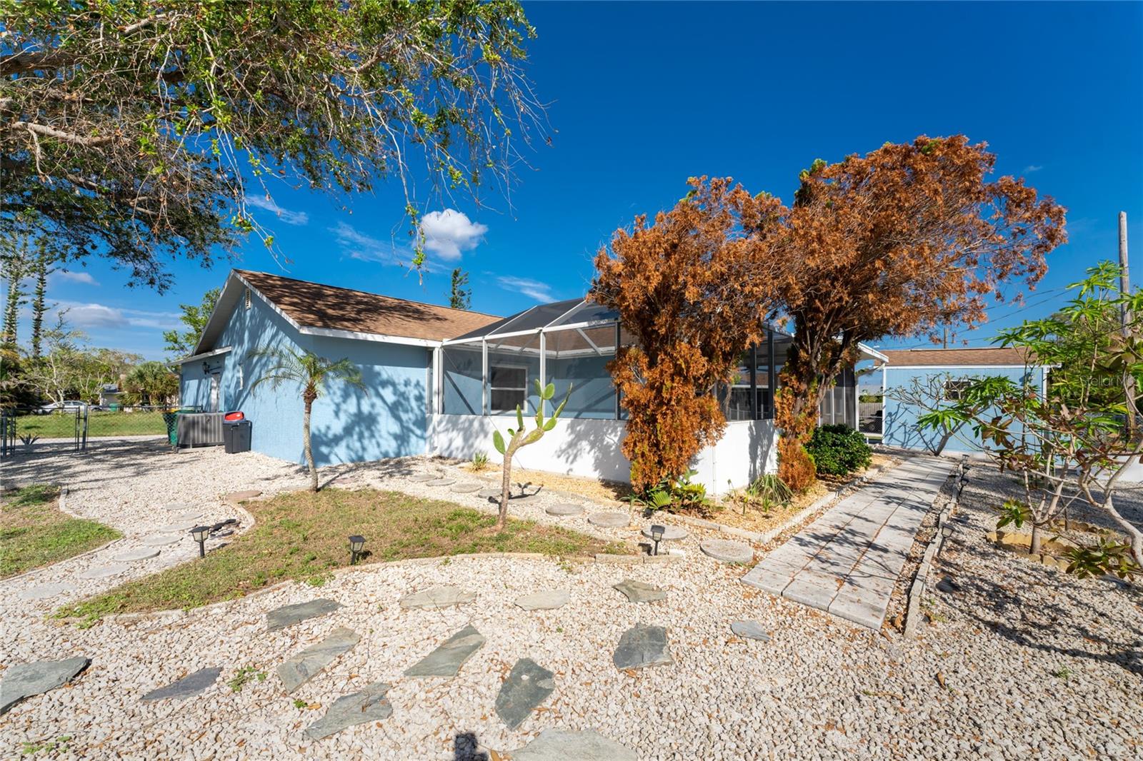 PRICE IMPROVEMENT Charming 3-Bedroom Home in Englewood, Florida. Move-in ready and ideally located just 3.3 miles from Englewood Public Beach. This 3-bedroom, 2-bath home offers the perfect blend of comfort and convenience. Situated in the heart of Englewood, you'll be just minutes from shopping, healthcare facilities, golfing, boating, fishing and much more. The home features an open split floor plan, perfect for both everyday living and entertaining. The spacious master suite includes a walk-in closet and a private ensuite bathroom. The property boasts “great bones” with recent updates and a low-maintenance design, including: • Freshly painted interior and exterior (2023) • New water heater (2023) • New windows (2022) with a transferable extended warranty • New roof (2018) • HVAC system (2015). Sitting on a large corner lot, the home includes a 2-car garage with washer/dryer hookups and ample space for outdoor gatherings. The backyard is a private oasis, featuring • Outdoor screen lanai • Fire pit • Enclosed chain-link fence (great for kids, pets, or added privacy) • Outdoor shed for tools and lawn equipment. With zero water intrusion from hurricanes, this home is as secure as it is inviting. The low-maintenance yard showcases attractive pebble landscaping, freeing up your weekends to enjoy everything Englewood has to offer. Make this house your next home today!