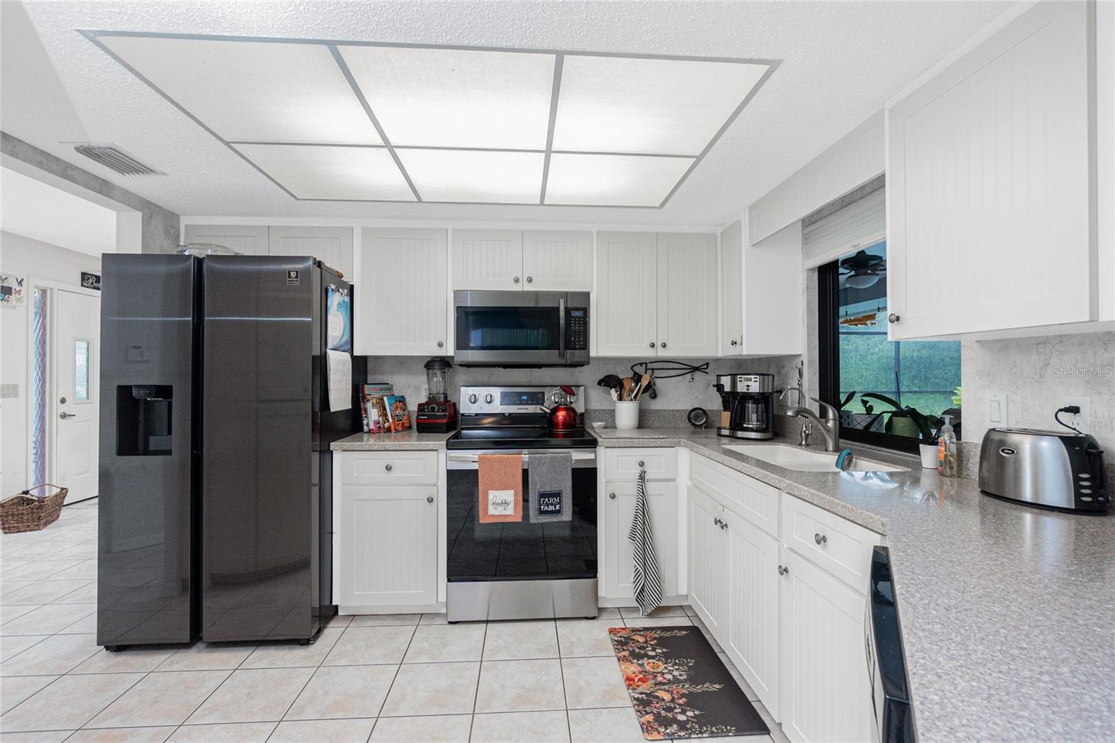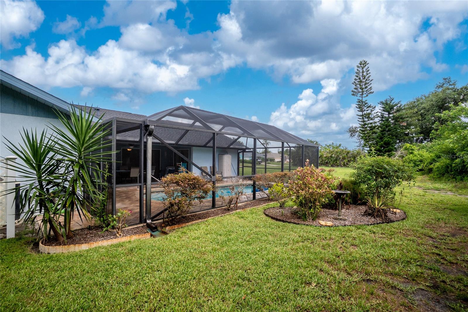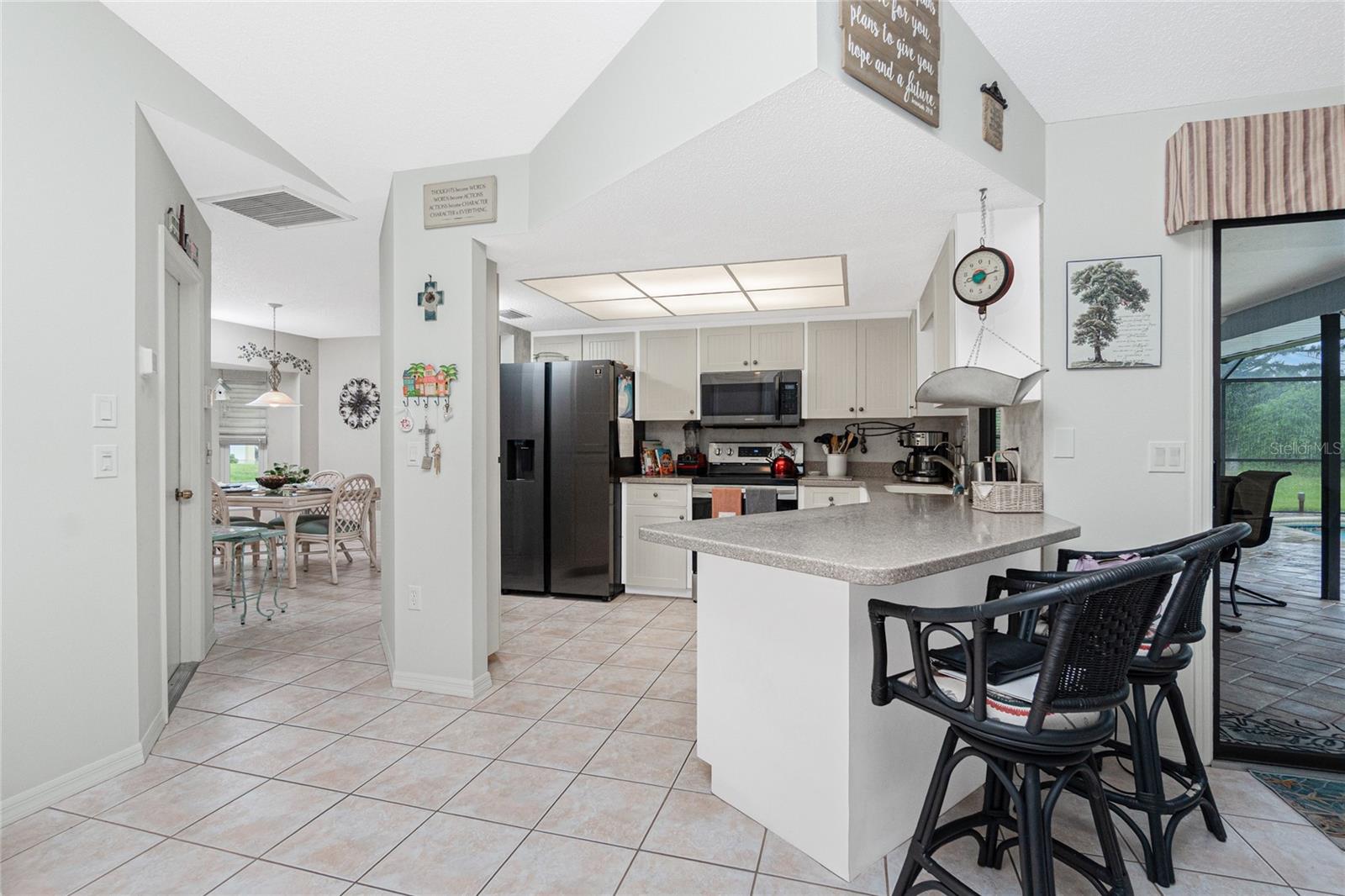 PRICE IMPROVEMENT! Welcome to this beautifully maintained 2-bedroom, 2-bathroom, 1,531 sq ft pool home in sunny Southwest Florida—move-in ready. There are NO HOA fees, NO CDDs, NO Deed Restrictions, and located in the preferred X Flood Zone—no flood insurance required! This split-bedroom floor plan is ideal for privacy and functionality, with the spacious owner’s suite located on the opposite side of the home from the guest bedroom. The owner’s suite has been recently remodeled with new carpet, fresh paint, a modern ceiling fan, and a fully updated ensuite bathroom completed in 2022. Sliding glass doors provide easy access to the lanai and pool without disturbing guests. The main living spaces flow effortlessly from room to room. The bright and open dining room leads into a well-appointed kitchen featuring a breakfast bar, ample counter space, a large pantry cabinet, and an R/O water filtration system. The family room is open to the kitchen, making entertaining a breeze. A 5x7 indoor laundry room provides additional space for storage and functionality. Step outside to your private backyard oasis, complete with a resurfaced pool (2016), new pool timer and screens (2023), and a spacious covered lanai—perfect for outdoor gatherings. The guest bathroom has direct access to the pool, enhancing the home's entertainment value. Some of the updates include: new roof in 2022, Gutters and exterior paint 2022,A:C replaced 2020, Refrigerator 2021, stove 2020, washer 20217, hurricane windows 2021, hurricane garage door 2021. There is additional storage in the 424 sq ft garage. The mature landscaping is maintained with an irrigation system using well water. This home did not have any flood water damage. Located just a short drive from the pristine beaches of Manasota Key and Boca Grande, plus Englewood’s historic downtown area with restaurants, boutique shops, and a seasonal Thursday Farmers Market. Whether you're starting out, relocating, or downsizing, this home offers charm, location, and an unbeatable value. Don’t miss your opportunity to enjoy everything this Florida gem has to offer!