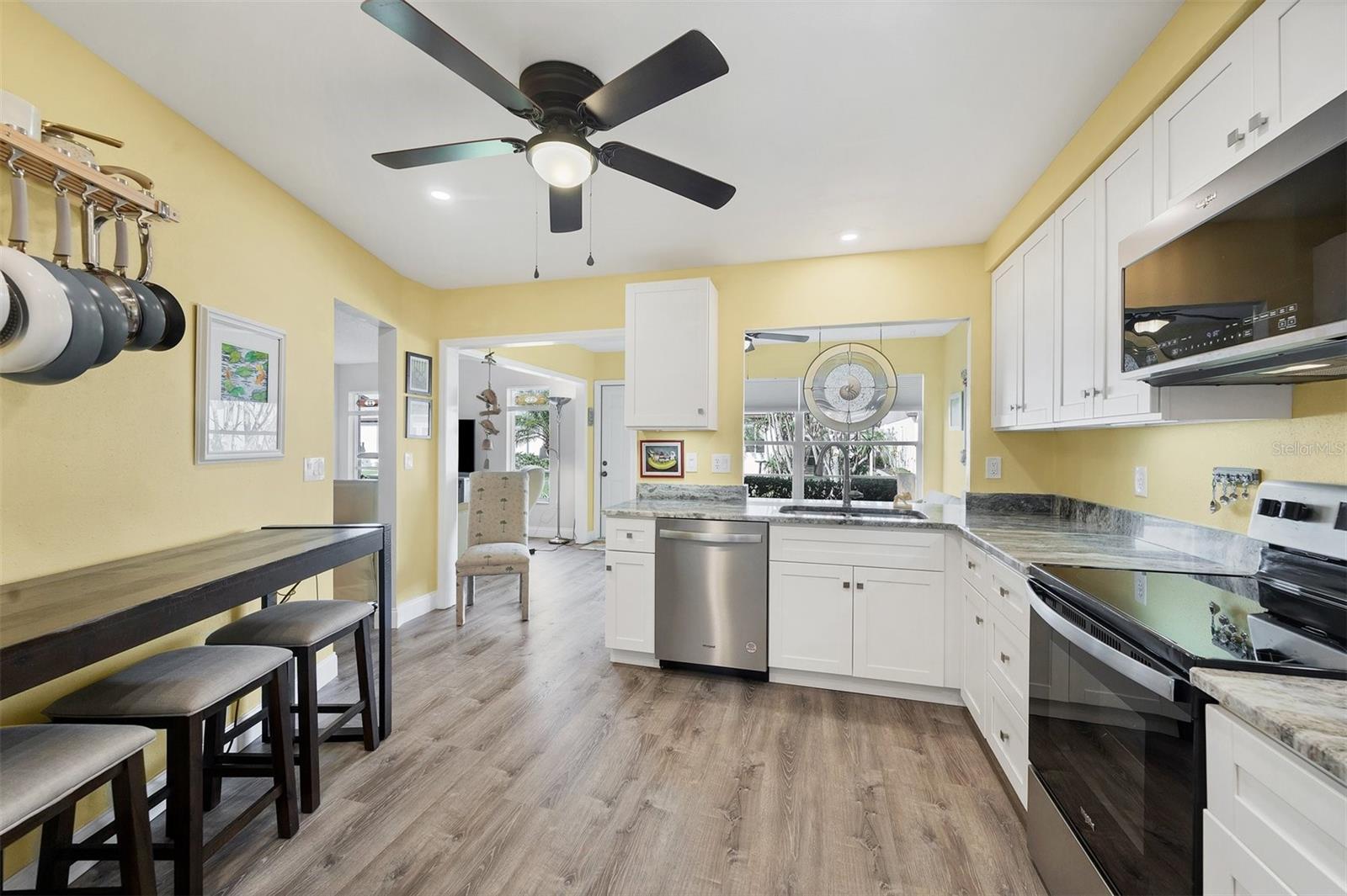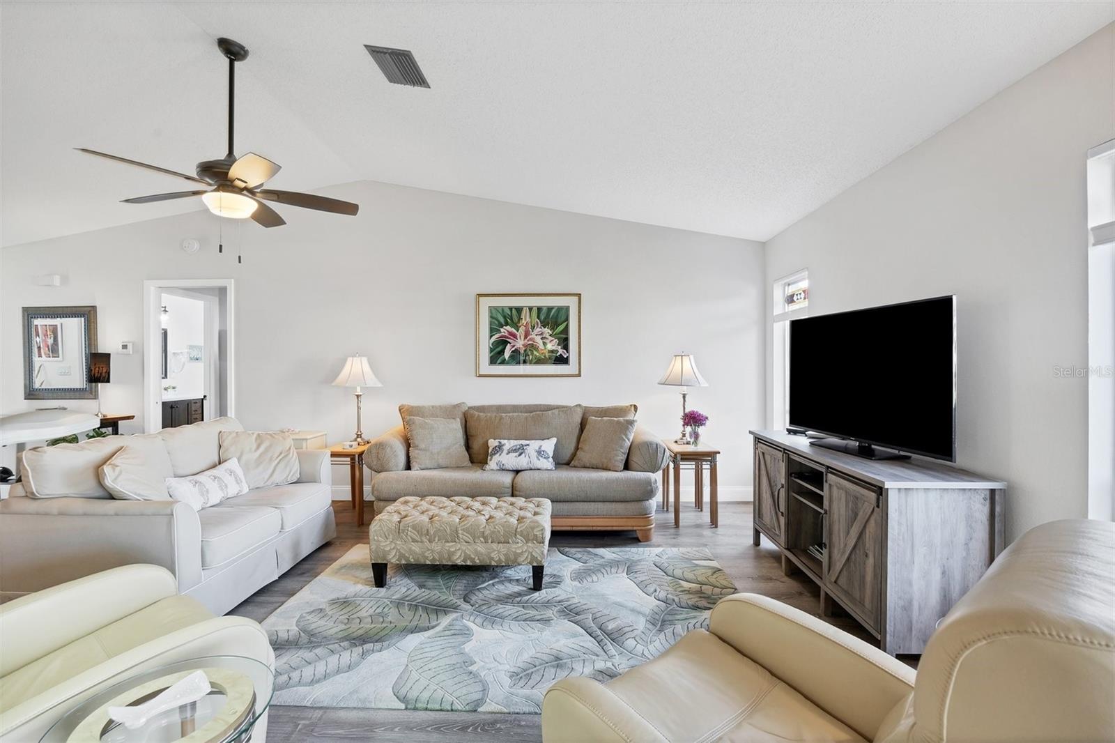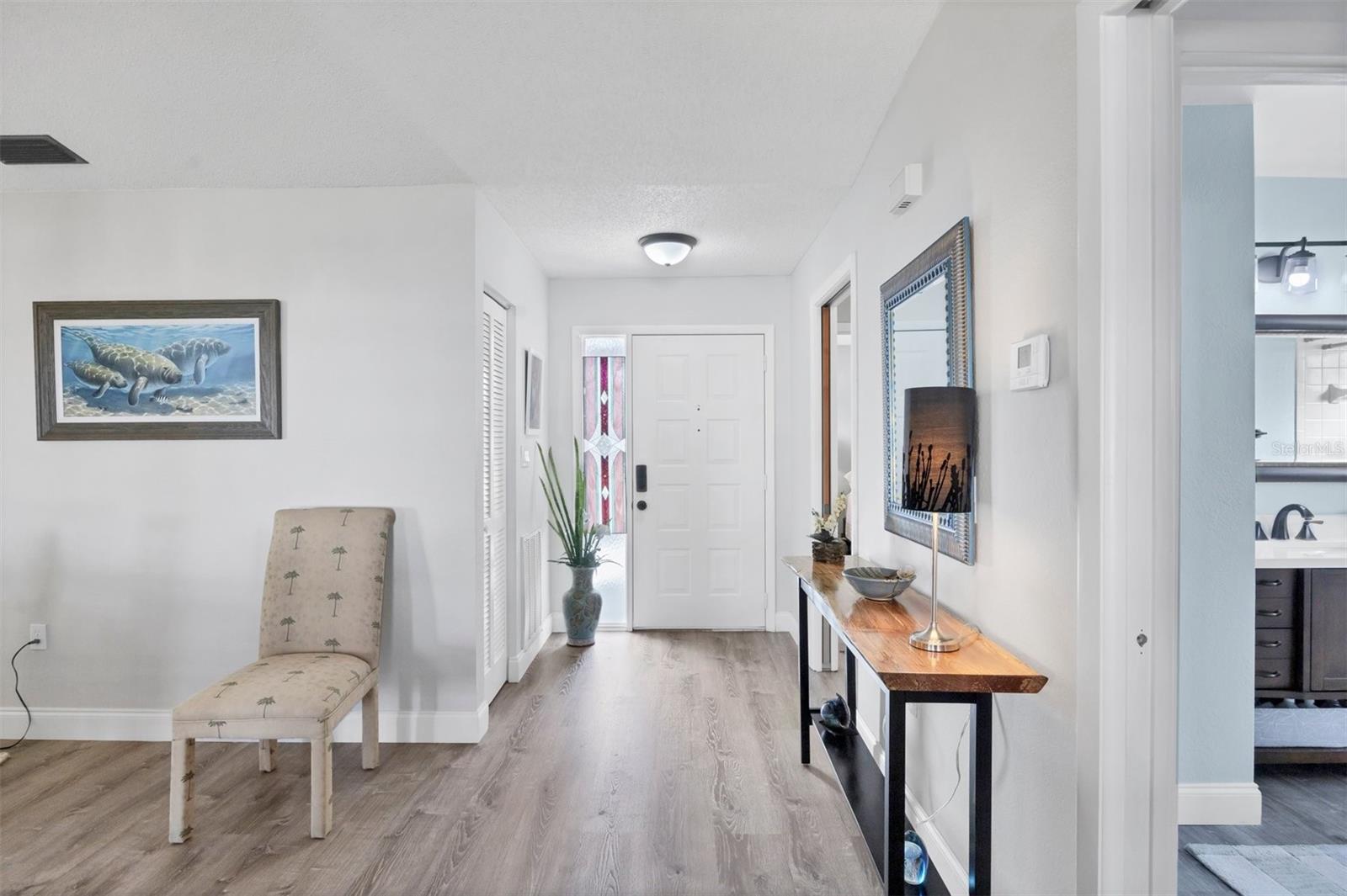 Ready to purchase your own slide of Paradise? Foxwood a 55+ community is the perfect place only a few minutes from beautiful beaches on the Gulf of Mexico! If you're looking for a nice friendly social environment this community has a lot to offer. Amenities include a large clubhouse used for many social activities throughout the year. There is a library, workout center, craft clubs, heated pool, tennis courts, spa, and shuffleboard! The Gulf of Mexico is only minutes away to enjoy boating, fishing, kayaking, paddle boarding, or just relax at the beach. Spring training is in full swing as there are 2 teams within a 20 minutes, Tampa Bay Rays and Atlanta Braves. This home has a nice open floor plan, with lovely modern decor, no updates needed. One feature you're sure not to miss is all the one of a kind stainless glass throughout the home (it all stays with the property). The primary bedroom has a large walk in closet and the master bath has been updated with large new vanity with hard surface counter, new mirror, new lighting & features a walk in shower. The guest bedroom & bath has also been updated with a beautiful new vanity and hard surface counters. The kitchen is stunning, white wood cabinets, granite counters and newer stainless appliances only 2 years old. The A/C was installed in 2022, Roof 2023, hot water heater is 5 yrs old, and all new overhead water lines have been installed. This home is move in ready!
