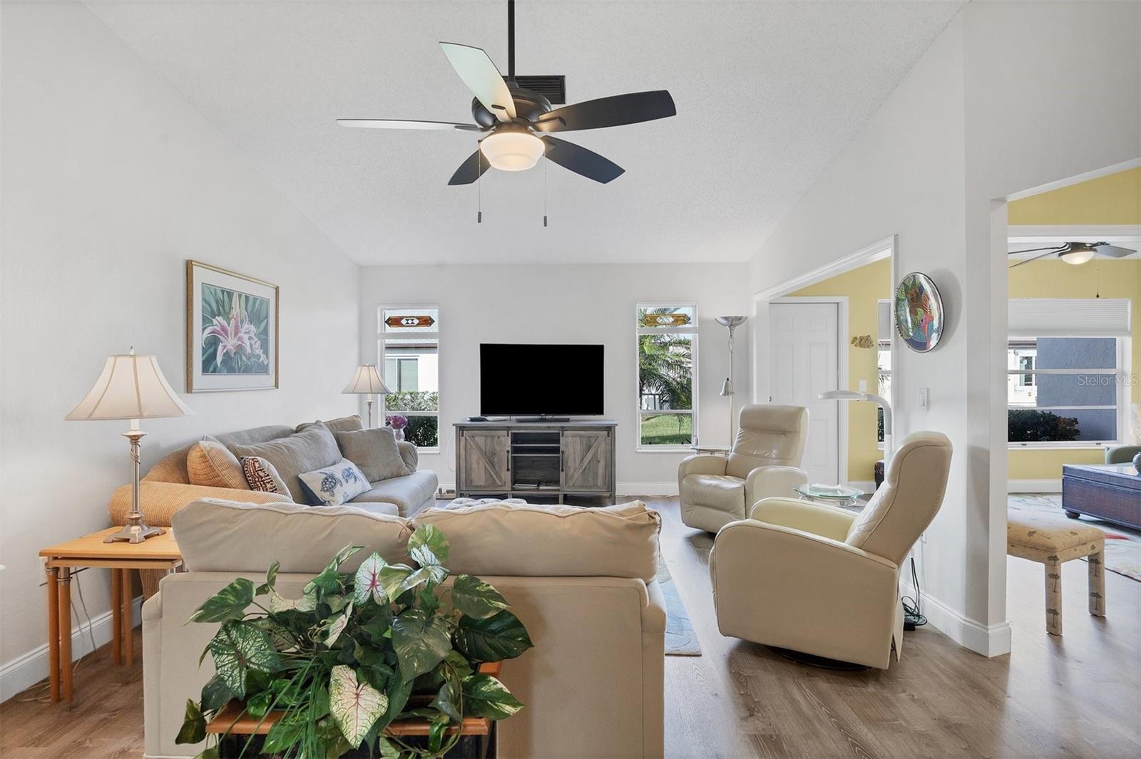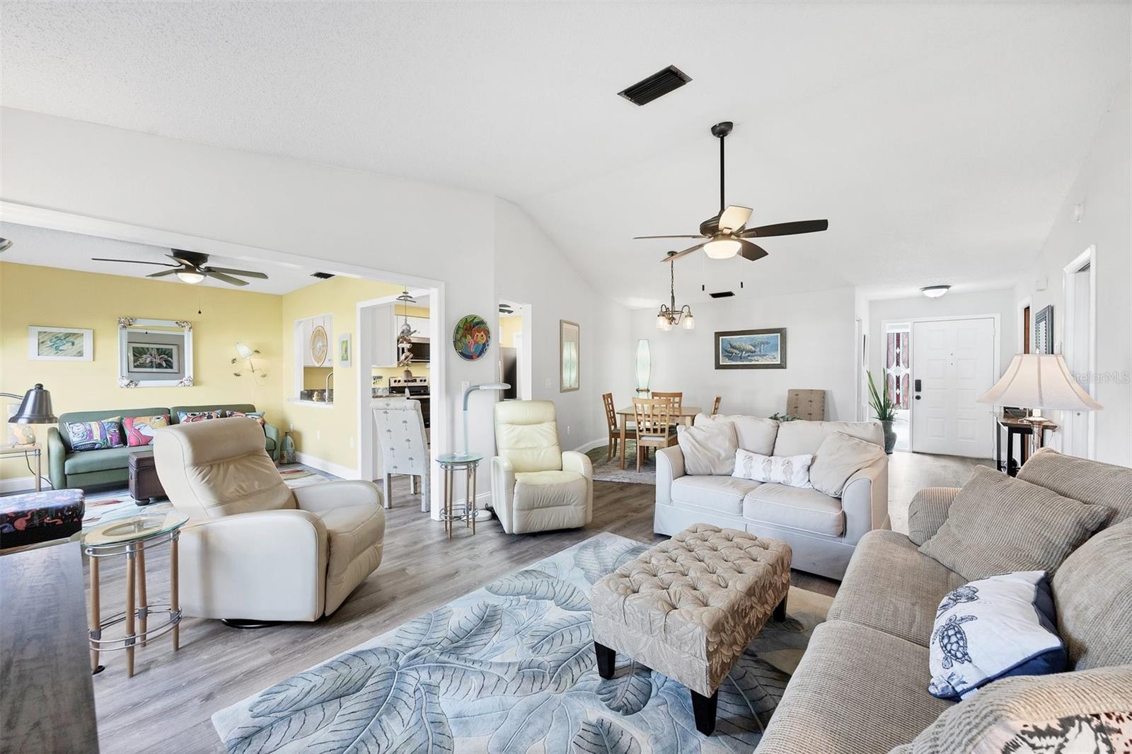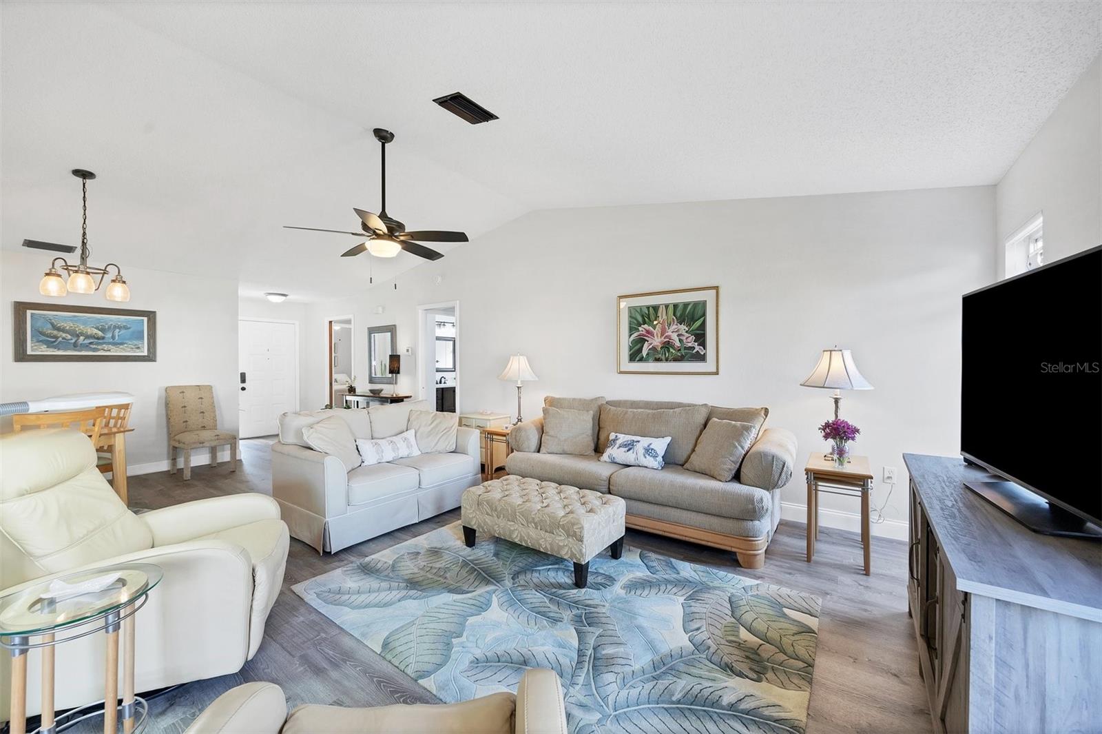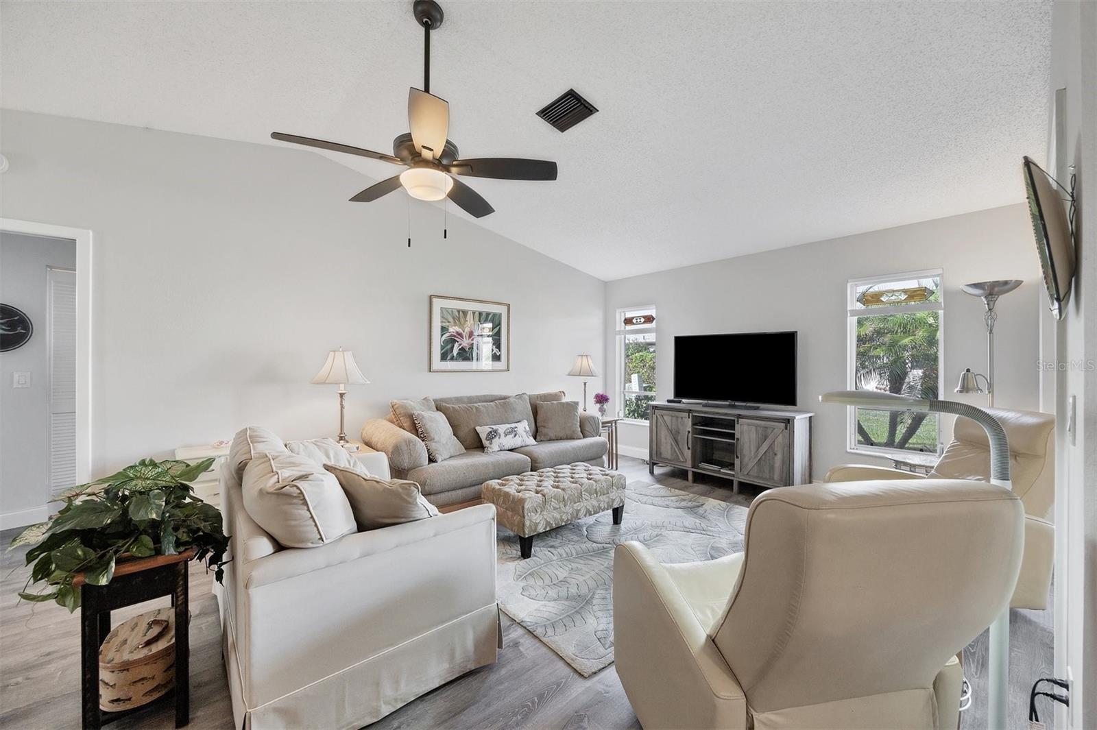 Ready to purchase your own slide of Paradise? Foxwood a 55+ community is the perfect place only a few minutes from beautiful beaches on the Gulf of Mexico! If you're looking for a nice friendly social environment this community has a lot to offer. Amenities include a large clubhouse used for many social activities throughout the year. There is a library, workout center, craft clubs, heated pool, tennis courts, spa, and shuffleboard! The Gulf of Mexico is only minutes away to enjoy boating, fishing, kayaking, paddle boarding, or just relax at the beach. Spring training is in full swing as there are 2 teams within a 20 minutes, Tampa Bay Rays and Atlanta Braves. This home has a nice open floor plan, with lovely modern decor, no updates needed. One feature you're sure not to miss is all the one of a kind stainless glass throughout the home (it all stays with the property). The primary bedroom has a large walk in closet and the master bath has been updated with large new vanity with hard surface counter, new mirror, new lighting & features a walk in shower. The guest bedroom & bath has also been updated with a beautiful new vanity and hard surface counters. The kitchen is stunning, white wood cabinets, granite counters and newer stainless appliances only 2 years old. The A/C was installed in 2022, Roof 2023, hot water heater is 5 yrs old, and all new overhead water lines have been installed. This home is move in ready!