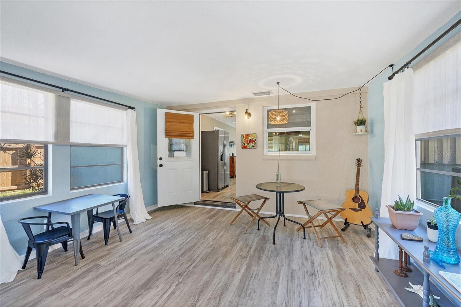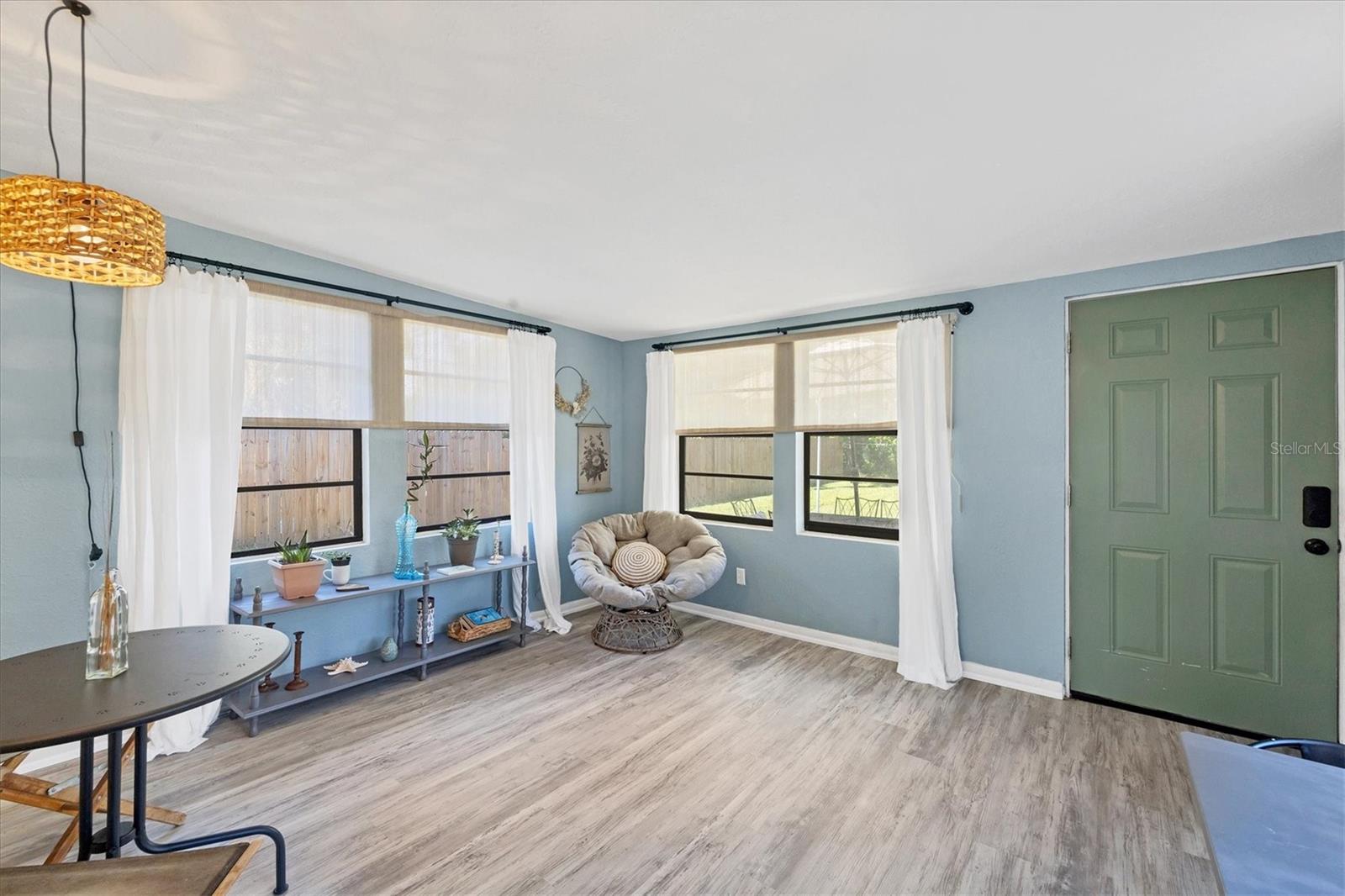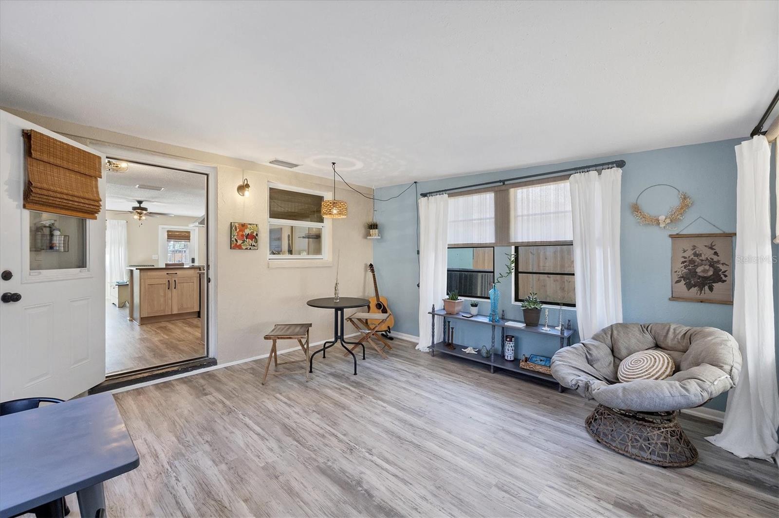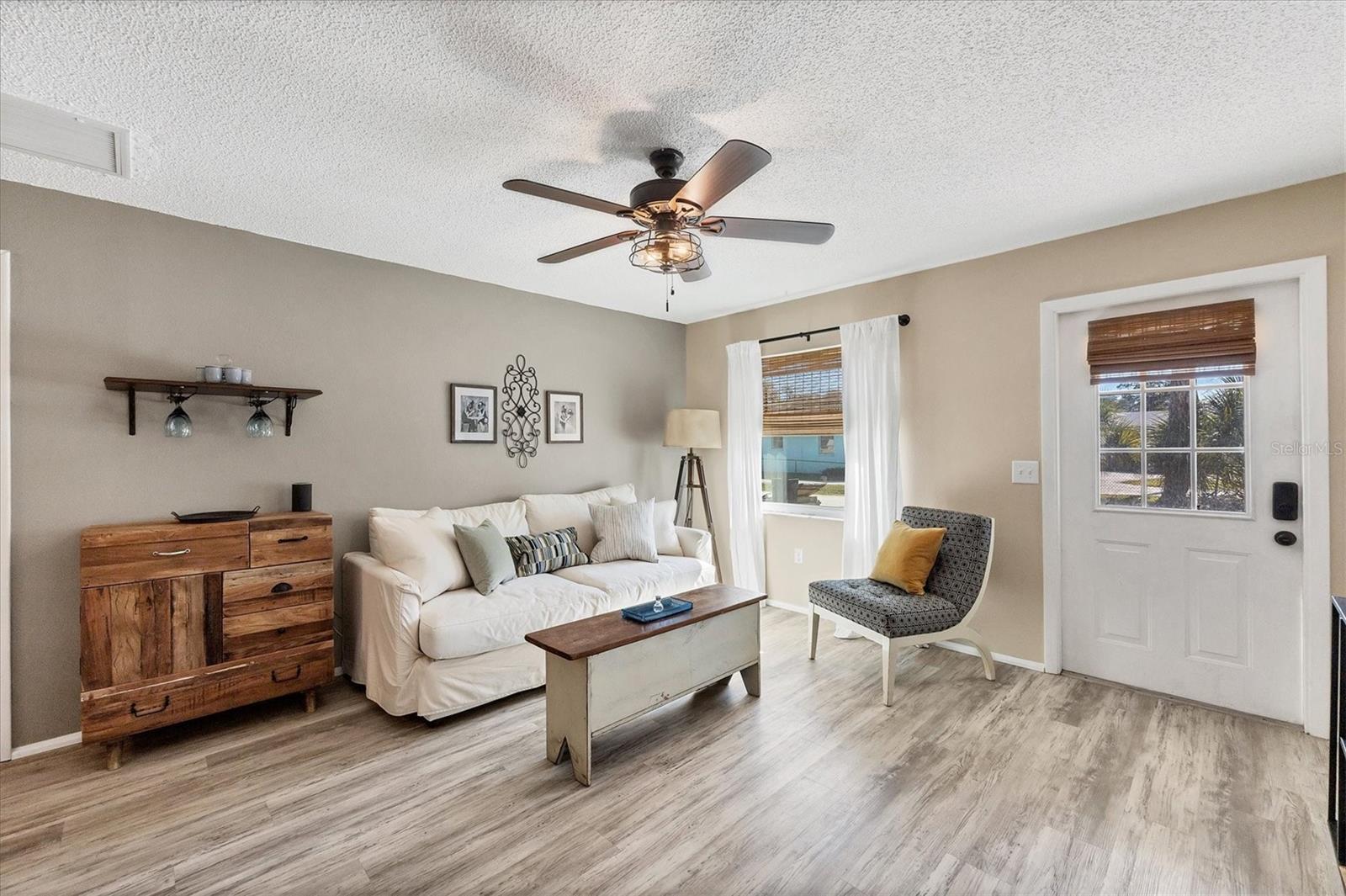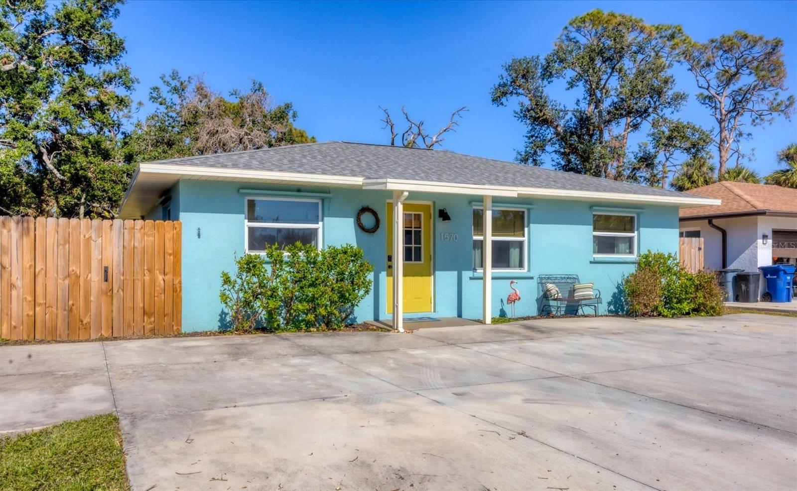 Experience hometown charm in this nicely updated home, just minutes from Historic Dearborn Street, where you can enjoy weekly farmers markets, shopping, dining, special events, and more! This adorable two-bedroom, two-bath home has been recently remodeled, featuring LVP flooring throughout, fresh interior and exterior paint, updated light fixtures, and smart door locks. The kitchen is a dream with beautiful Jerusalem stone countertops, open shelving, and a breakfast bar, all open to the living area. The primary ensuite bedroom includes a walk-in closet, while the primary bathroom offers a tiled tub-shower combo and single sink vanity. The second bedroom has an ensuite bathroom and features a beautifully tiled walk-in shower. The enclosed Florida room is a versatile flex space, perfect for creating the room you've always wanted. A convenient laundry room has a side entry door. Outdoors, enjoy a fenced-in backyard and patio that is ideal for morning coffee or afternoon cocktails. The large concrete parking area provides ample space for all your vehicles. For added peace of mind, this home is located in the X flood zone and includes hurricane shutters. This home is perfectly located near area beaches, tiki bars, boat ramps, kayak launches, medical facilities, major grocery shopping, and more. Whether you're a first-time homebuyer, looking for a winter home, investment property, or a place to downsize, this is it. Contact us today to schedule a showing!