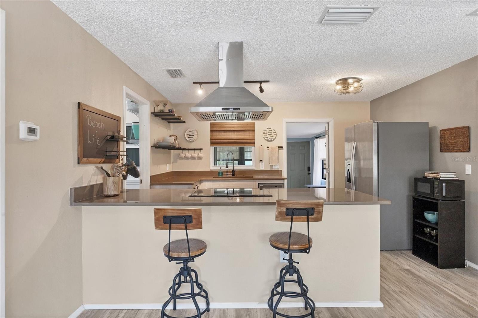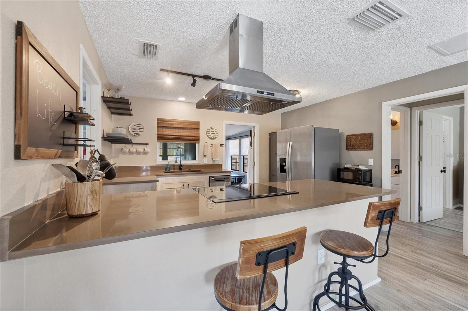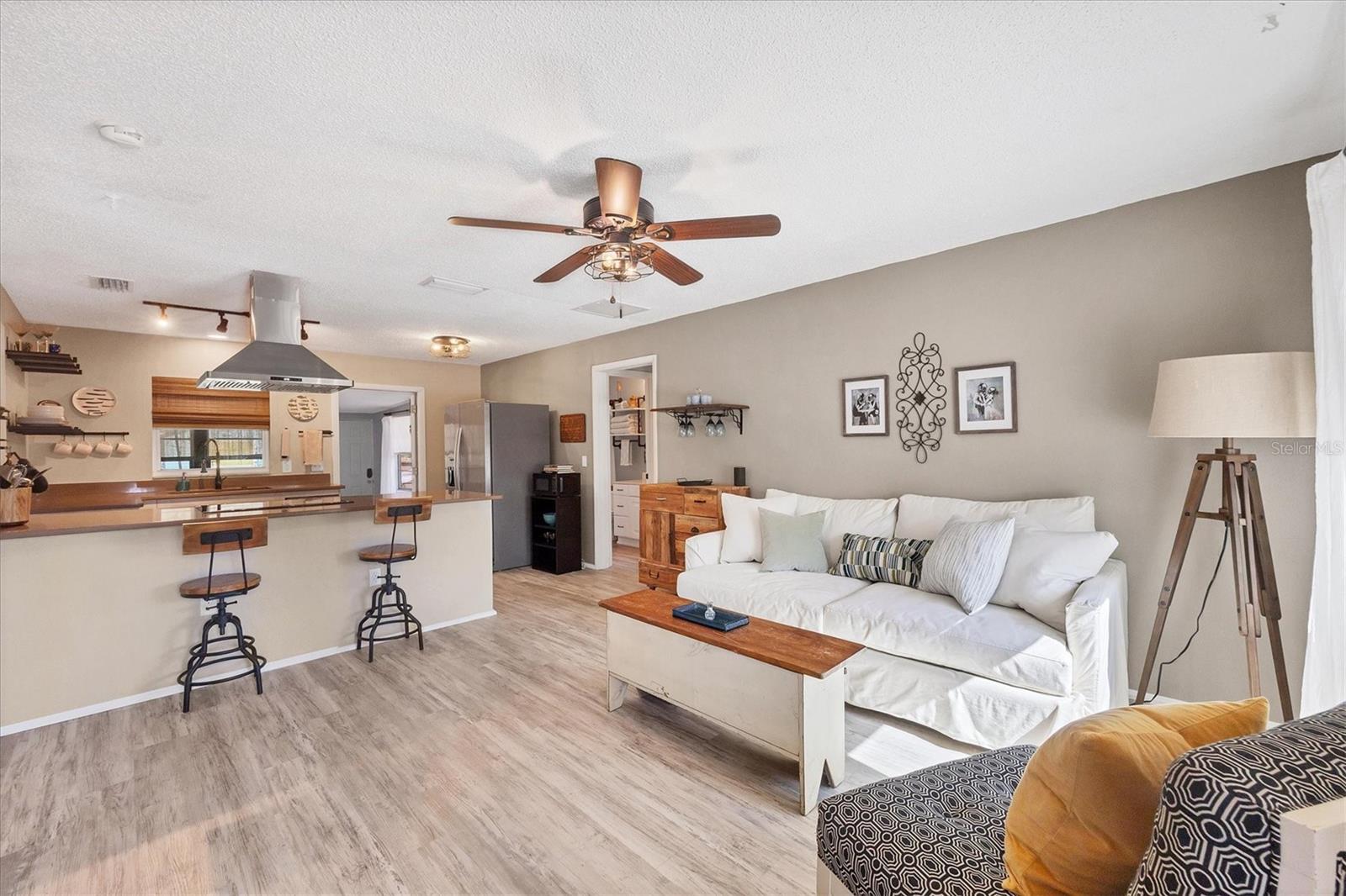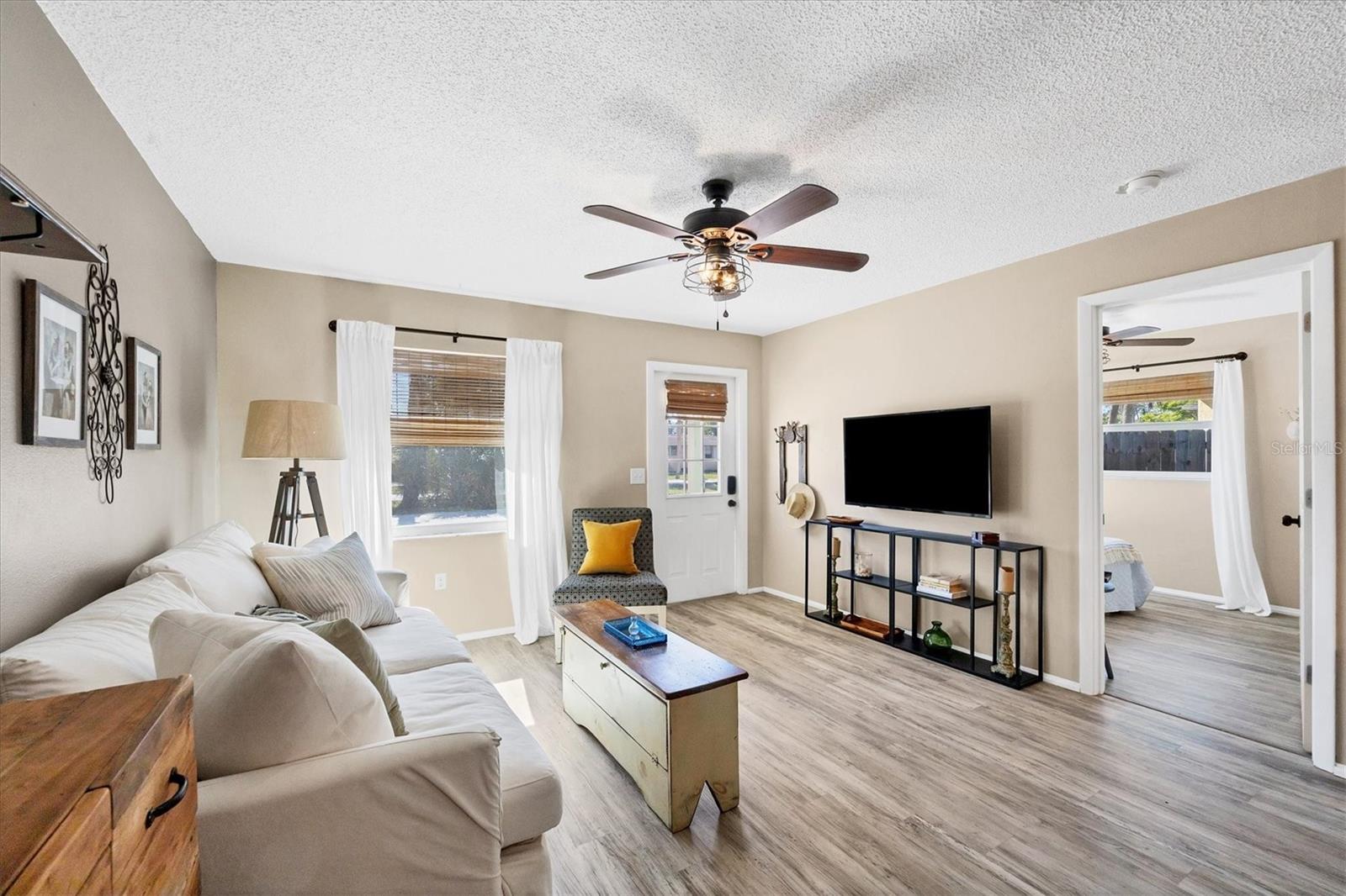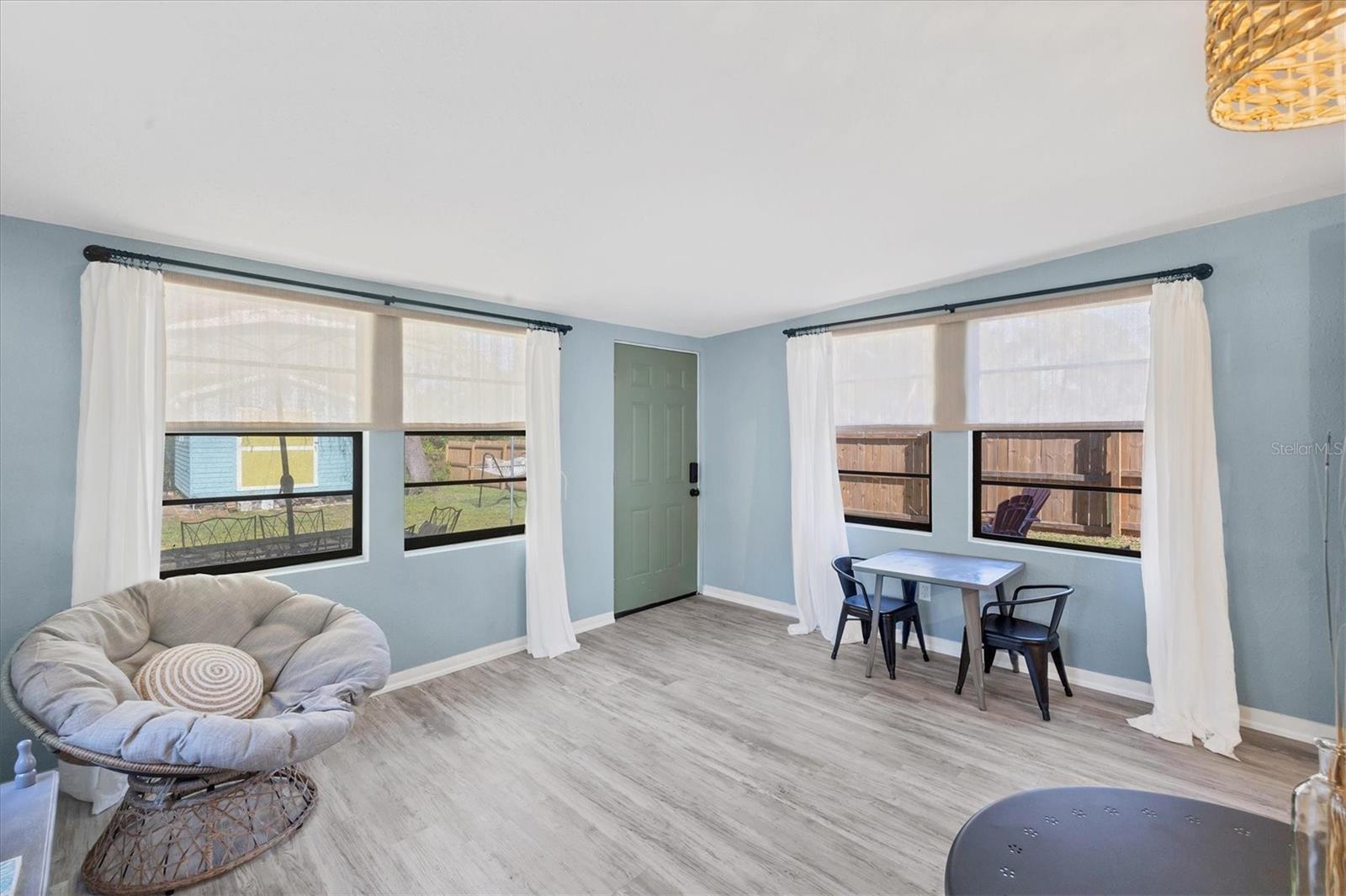 Experience hometown charm in this nicely updated home, just minutes from Historic Dearborn Street, where you can enjoy weekly farmers markets, shopping, dining, special events, and more! This adorable two-bedroom, two-bath home has been recently remodeled, featuring LVP flooring throughout, fresh interior and exterior paint, updated light fixtures, and smart door locks. The kitchen is a dream with beautiful Jerusalem stone countertops, open shelving, and a breakfast bar, all open to the living area. The primary ensuite bedroom includes a walk-in closet, while the primary bathroom offers a tiled tub-shower combo and single sink vanity. The second bedroom has an ensuite bathroom and features a beautifully tiled walk-in shower. The enclosed Florida room is a versatile flex space, perfect for creating the room you've always wanted. A convenient laundry room has a side entry door. Outdoors, enjoy a fenced-in backyard and patio that is ideal for morning coffee or afternoon cocktails. The large concrete parking area provides ample space for all your vehicles. For added peace of mind, this home is located in the X flood zone and includes hurricane shutters. This home is perfectly located near area beaches, tiki bars, boat ramps, kayak launches, medical facilities, major grocery shopping, and more. Whether you're a first-time homebuyer, looking for a winter home, investment property, or a place to downsize, this is it. Contact us today to schedule a showing!