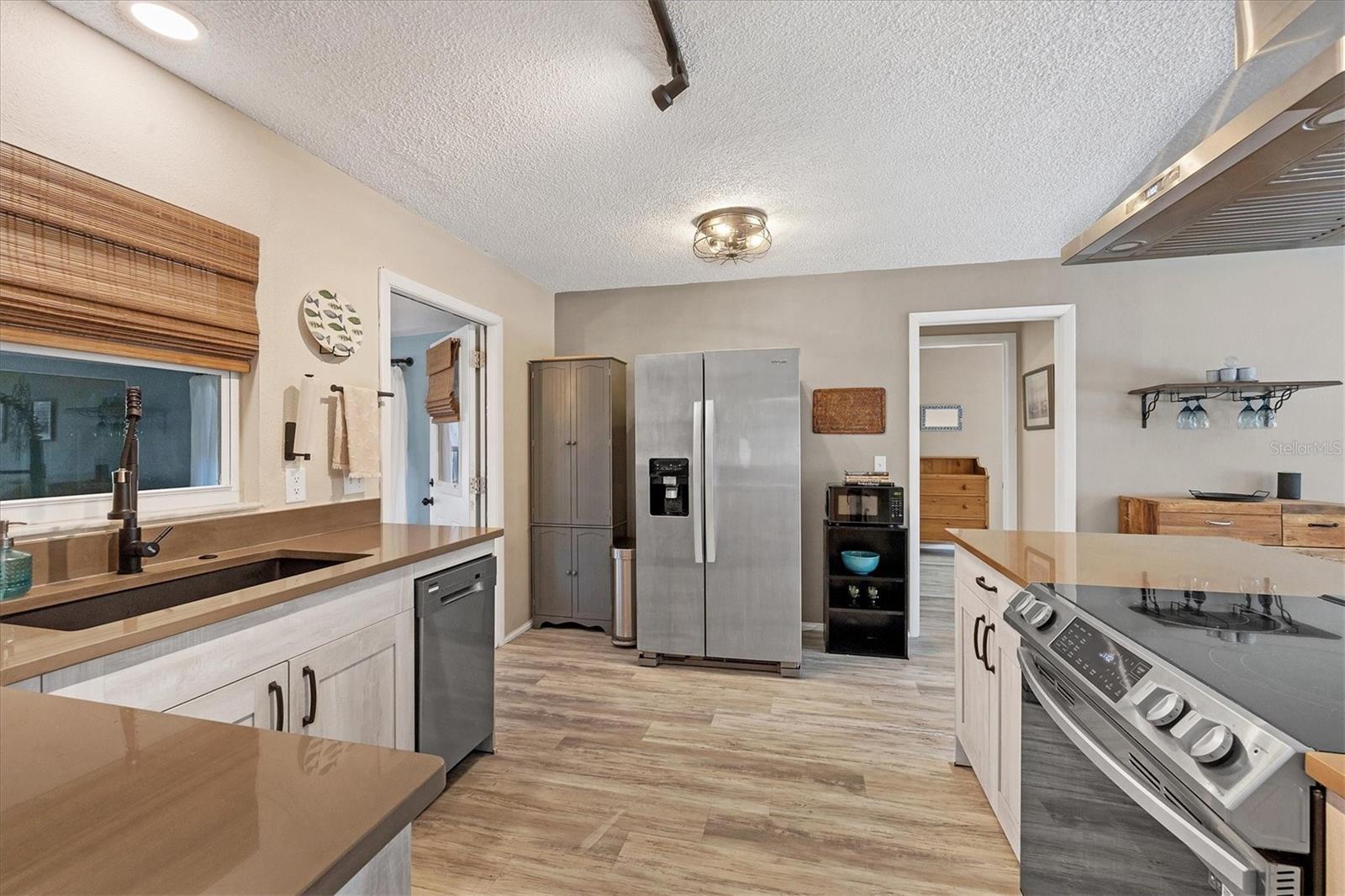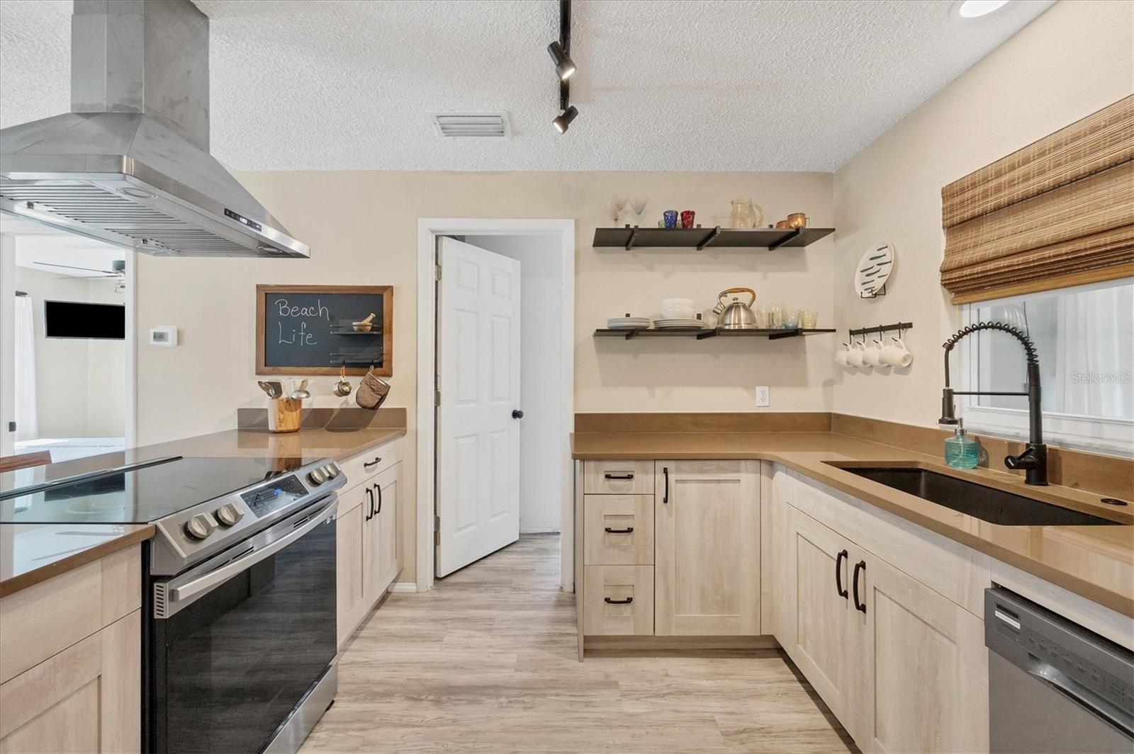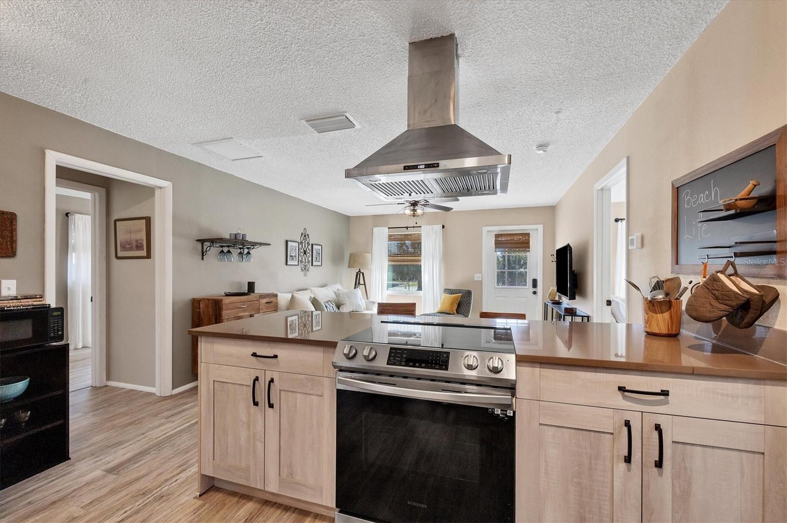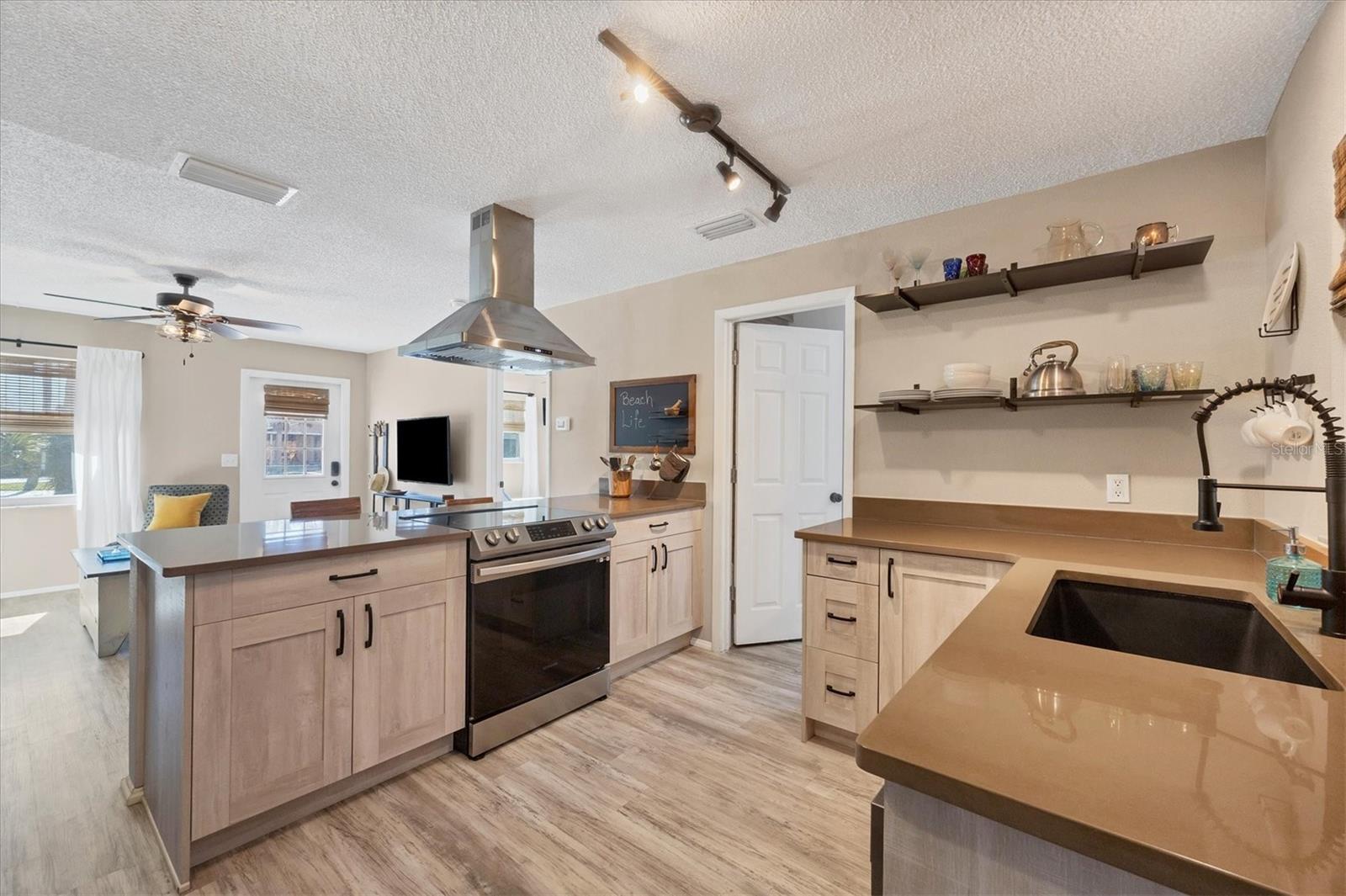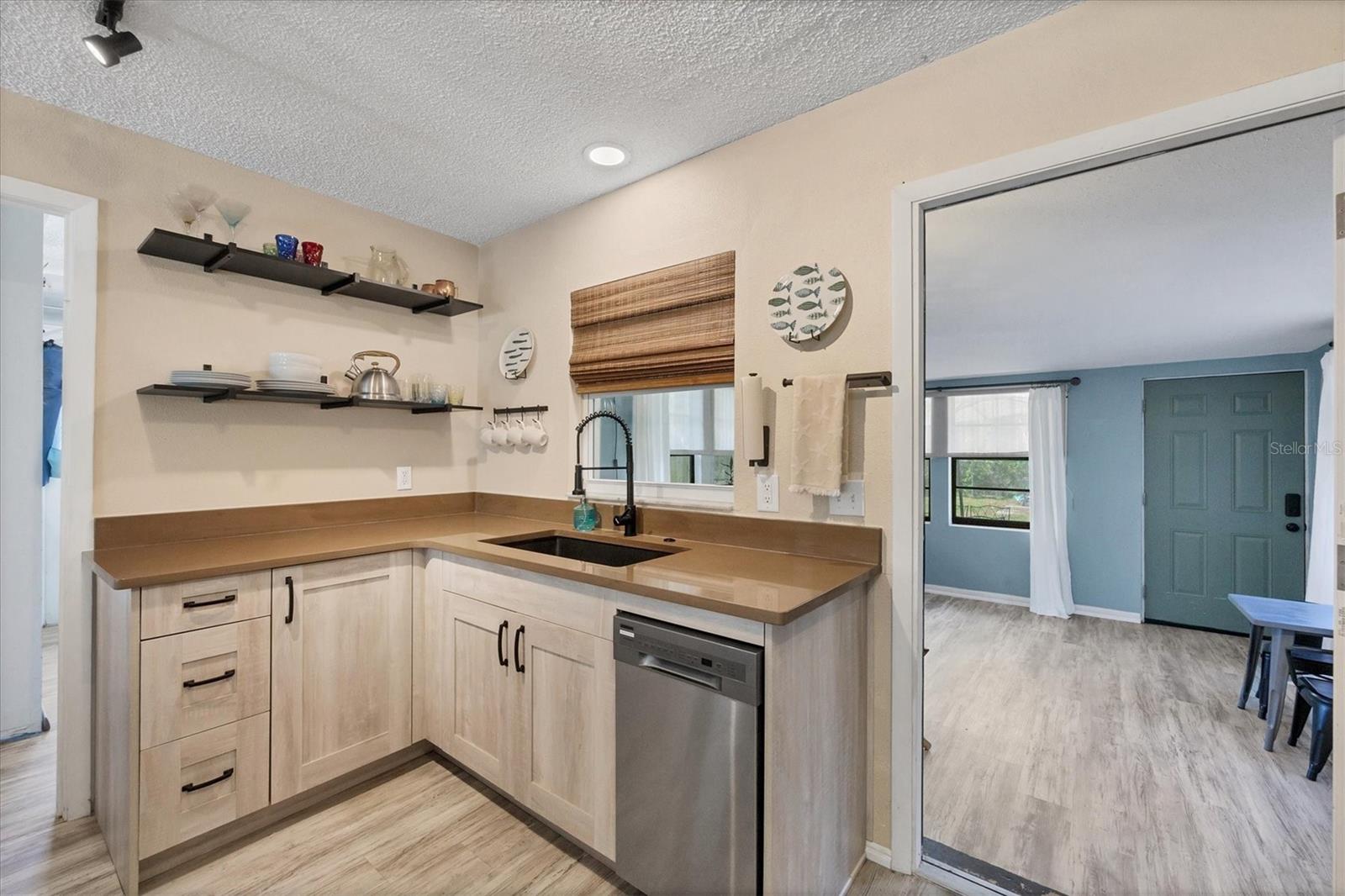 Experience hometown charm in this nicely updated home, just minutes from Historic Dearborn Street, where you can enjoy weekly farmers markets, shopping, dining, special events, and more! This adorable two-bedroom, two-bath home has been recently remodeled, featuring LVP flooring throughout, fresh interior and exterior paint, updated light fixtures, and smart door locks. The kitchen is a dream with beautiful Jerusalem stone countertops, open shelving, and a breakfast bar, all open to the living area. The primary ensuite bedroom includes a walk-in closet, while the primary bathroom offers a tiled tub-shower combo and single sink vanity. The second bedroom has an ensuite bathroom and features a beautifully tiled walk-in shower. The enclosed Florida room is a versatile flex space, perfect for creating the room you've always wanted. A convenient laundry room has a side entry door. Outdoors, enjoy a fenced-in backyard and patio that is ideal for morning coffee or afternoon cocktails. The large concrete parking area provides ample space for all your vehicles. For added peace of mind, this home is located in the X flood zone and includes hurricane shutters. This home is perfectly located near area beaches, tiki bars, boat ramps, kayak launches, medical facilities, major grocery shopping, and more. Whether you're a first-time homebuyer, looking for a winter home, investment property, or a place to downsize, this is it. Contact us today to schedule a showing!