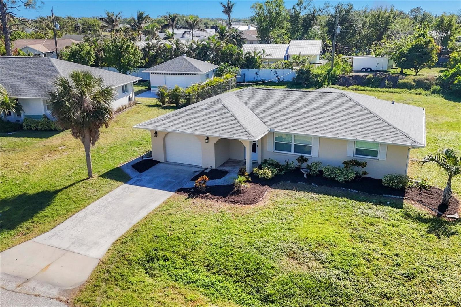 Fantastic Opportunity to Own a Charming Home Near the Gulf of Mexico. Don’t miss out on this rare opportunity to own a beautiful home in a prime location before the market rebounds! Situated in an X Flood Zone, this property offers peace of mind with no flood insurance required. This 2-bedroom, 2-bathroom home has seen several thoughtful upgrades, including a brand-new roof in July 2024, ensuring years of worry-free living. Enjoy the benefits of hurricane-ready features, including hurricane-rated windows and doors installed in 2018, and about 7-year-old septic system. Inside, the home boasts a stylish neutral tile flooring throughout, creating a clean and modern aesthetic, while a spacious living room provides ample room for family gatherings and entertainment. The well-sized kitchen flows seamlessly into the adjacent dining room, perfect for hosting meals or casual get-togethers. An added bonus is the back family room, which offers flexible space for extra seating or a cozy entertaining area. Large windows throughout allow for an abundance of natural light, making the home feel bright and airy at every turn. The thoughtful split floor plan offers privacy, with the primary suite on one side of the home and the guest room on the other—ideal for family or visitors. Additional conveniences include a separate laundry room with ample storage space. The freshly redone landscaping enhances the home's curb appeal, while the fenced-in backyard provides a safe and secure area for pets or little ones to play. For added versatility, the garage has been partially converted into a bonus room/office, but with minimal effort, it can be easily returned to a full garage space if desired. The home is being sold turn-key, making it an easy move-in for those looking to enjoy the Florida lifestyle right away. Whether you're looking for a full-time residence, a vacation retreat, or a rental property, this home offers tremendous value with its upgrades, location, and layout. Seize this opportunity before the market picks up again!