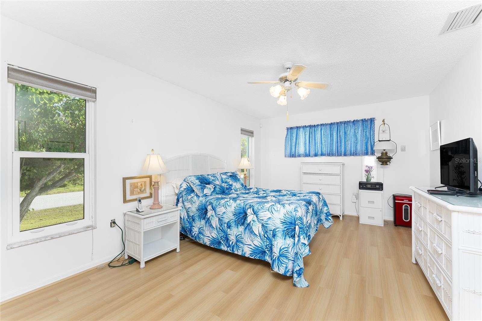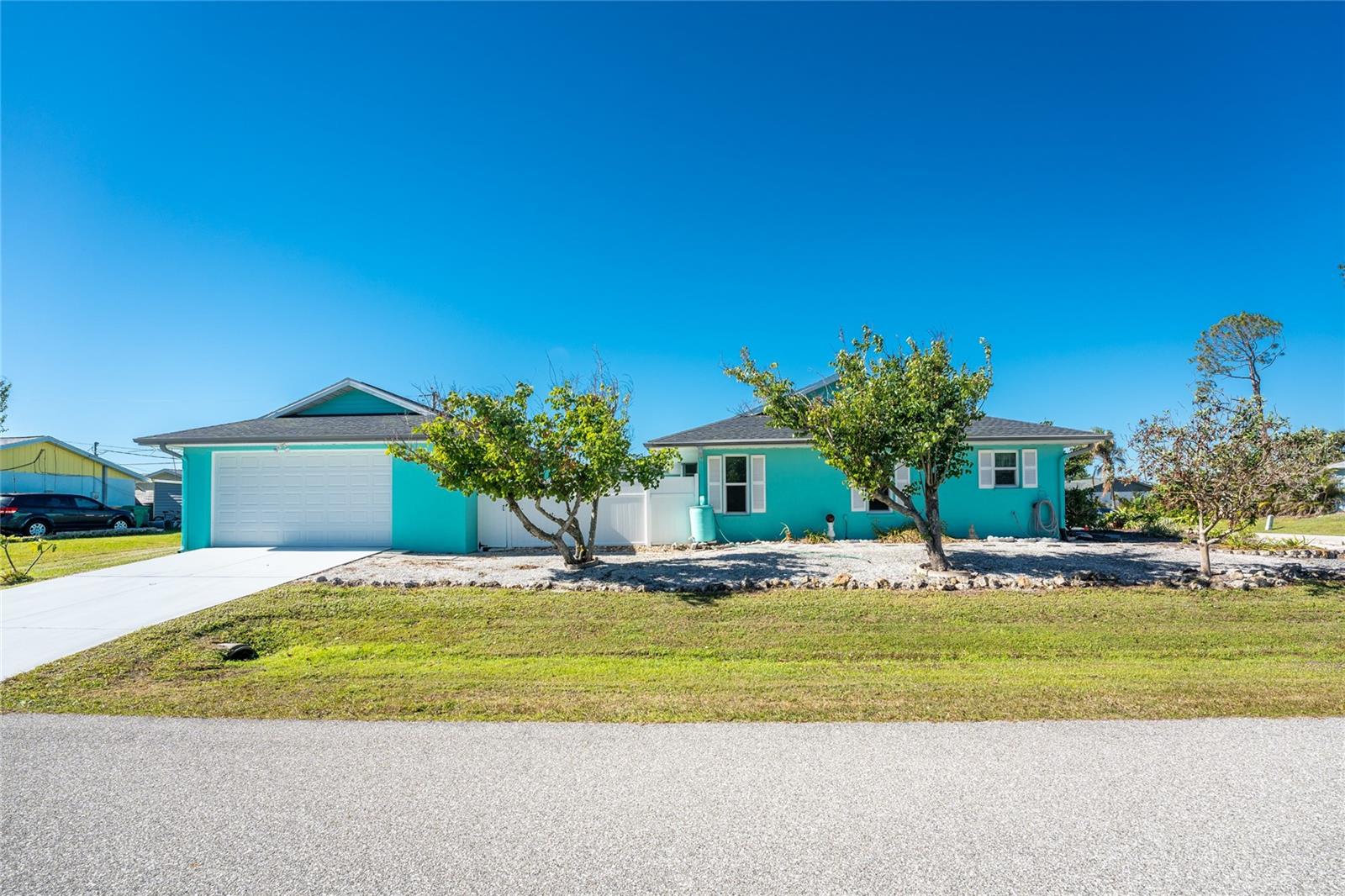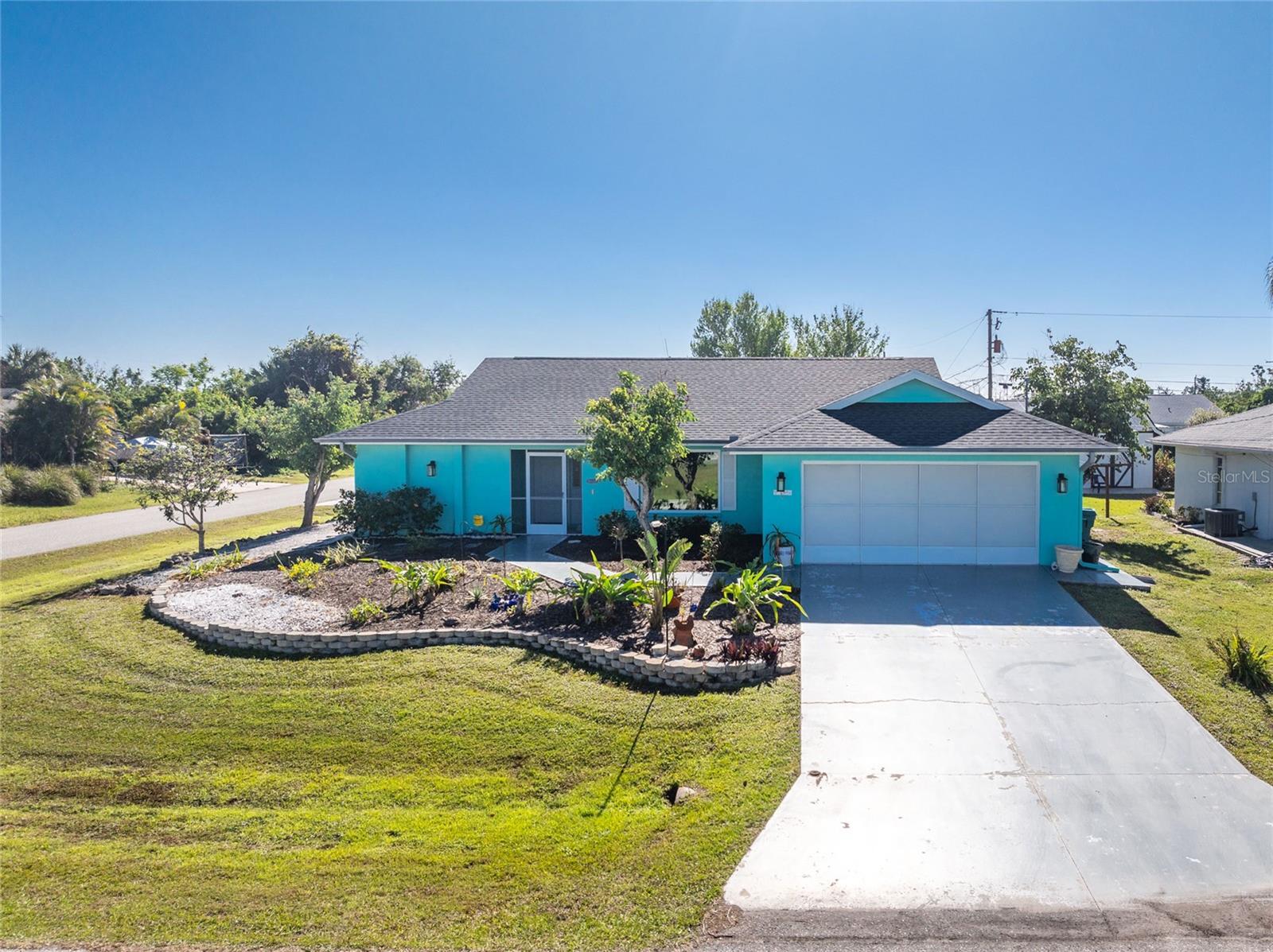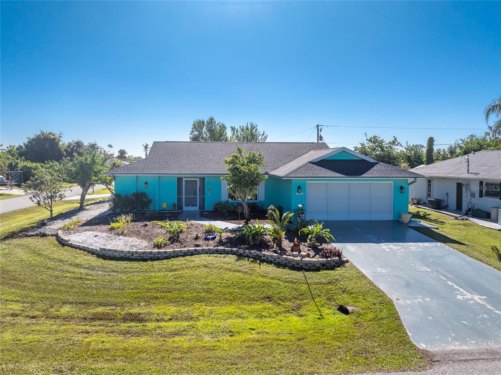 CAR COLLECTOR ALERT! WOODWORKER ALERT! HOME HOBBYIST ALERT! ALL THE EXTRA SPACE YOU NEED WITH THIS HUGE DETACHED GARAGE! TAKE A LOOK AT THIS 2 BED/2 BATH HOME with both a 2 Car attached garage PLUS DETACHED 24 X 30 CBS AIR CONDITIONED GARAGE, situated on an oversized corner lot! No HOA or deed restrictions! Property located in a no flood zone (X) so your lender will not require flood insurance. Fresh paint inside and out! Enter through the tiled and screened front entry into the Living/Dining area, which has easy care laminate flooring and cathedral ceiling for that open and spacious feel that you are looking for! Sliding glass doors from the dining area connect you to the lanai. Kitchen is updated with cottage style cabinetry and granite counter tops, pantry closet, skylight, Tiled flooring, breakfast bar and a pass through to the lanai. Appliances include: Maytag dishwasher, Kenmore smooth top stove, Whirlpool microwave and a Whirlpool stainless steel French door refrigerator! Adjoining Dinette area also has tiled flooring, new light fixture and an other set of sliding glass doors to the lanai. Enjoy movie night in the spacious Family room, with tiled flooring, and cathedral ceiling. Primary bedroom has laminate flooring, walk in closet and ensuite bath, which features cultured marble vanity top with double basin, linen closet, tiled flooring, New lighting fixture, new toilet and a combo tub/shower. Bedroom #2 has a wall closet and tiled flooring and adjacent Guest bath has been updated with all new shower walls and door, new toilet, new vanity, new faucet, new light fixture and tiled flooring. Huge laundry room has utility tub, tiled flooring and GE washer & dryer. Vinyl enclosed and tiled lanai provides another space to read a good book or have morning coffee. Ceiling fans are in all major rooms and the garage, providing good air flow and energy efficiency. Two car attached garage has a screened overhead door, new automatic garage door opener and pull down stairs for extra storage in the attic! Windows have been upgraded to IMPACT RESISTANT WINDOWS! Best of all this property also has an AIR CONDITIONED (WALL UNIT) DETACHED GARAGE! This a great place for a man cave, extra work space, workshop, or a party room (so many possibilities)!! This garage has a ceiling fan, built in cabinetry, pull down stairs (more storage), wall AC, water, and a new automatic garage door opener to go along with the insulated hurricane rated overhead garage door itself, NEW IN 2023! There's a large concrete pad in between the two buildings, which would be perfect for a variety of uses! Roof on house was new in 2023 and detached garage in 2019, all soffit on house new in 2023, AC in 2015 Shopping, medical facilities, restaurants, library, banks are all within ten minutes of this home! AND just a short drive to area beaches! This is a special property with so many extras! Come make it your Florida dream home!