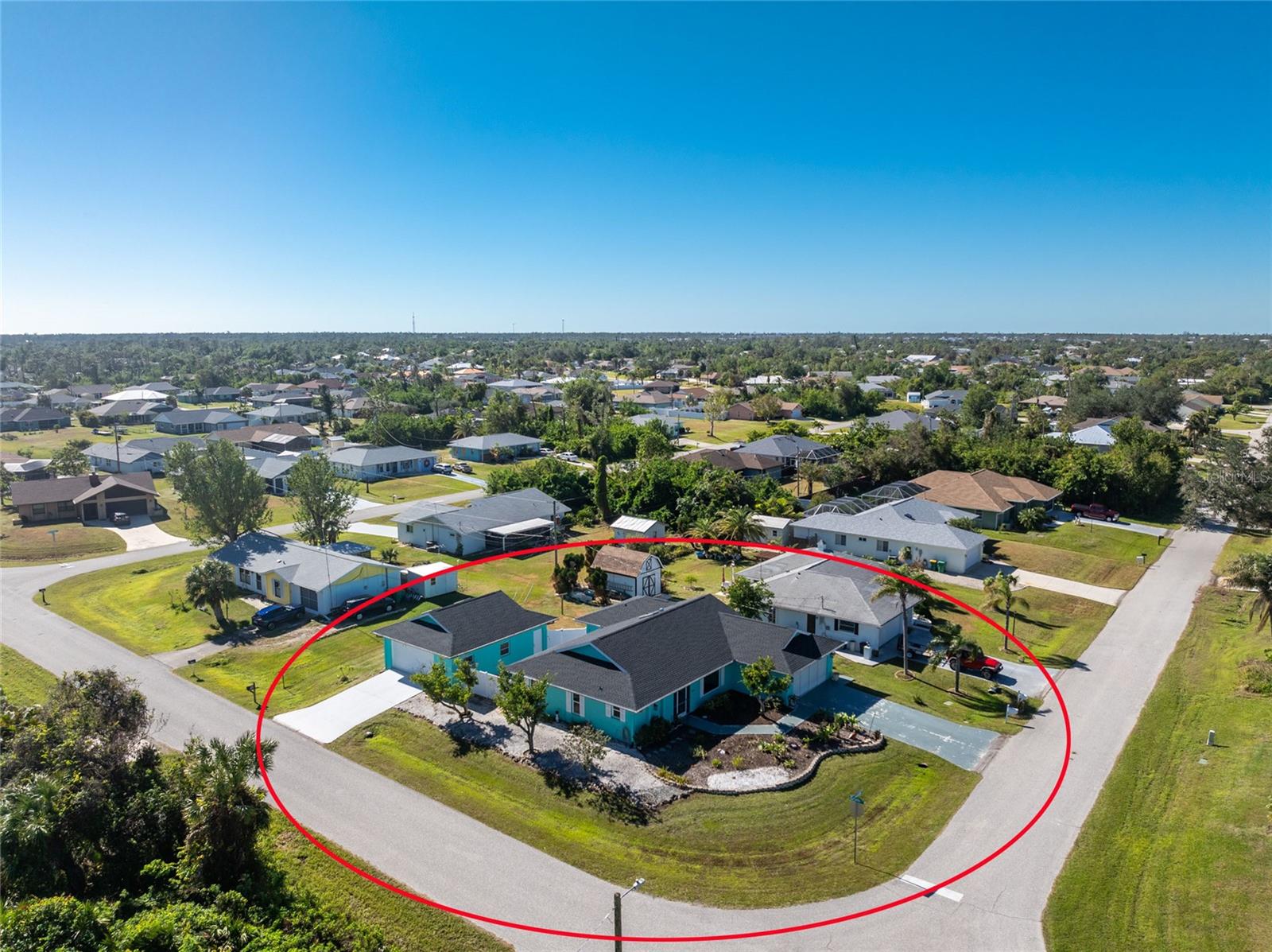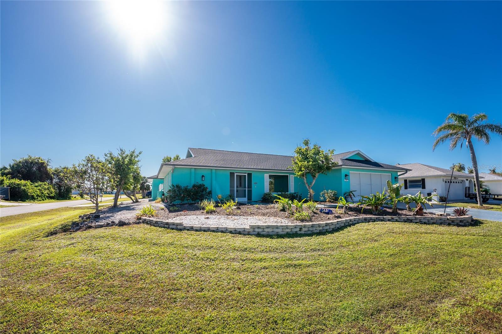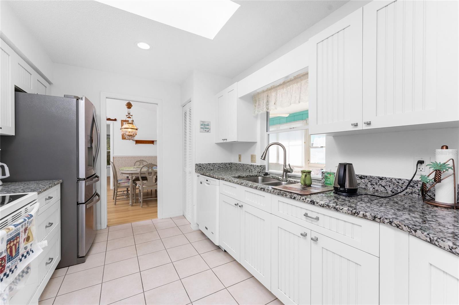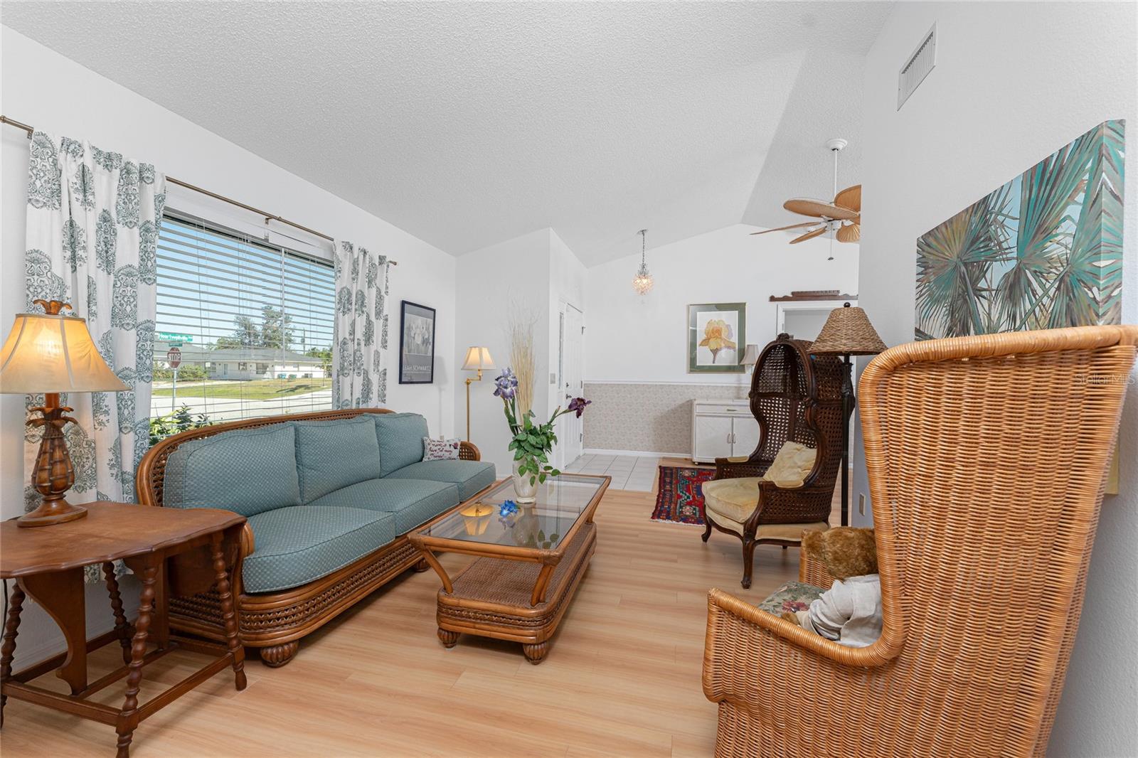 CAR COLLECTOR ALERT! WOODWORKER ALERT! HOME HOBBYIST ALERT! ALL THE EXTRA SPACE YOU NEED WITH THIS HUGE DETACHED GARAGE! TAKE A LOOK AT THIS 2 BED/2 BATH HOME with both a 2 Car attached garage PLUS DETACHED 24 X 30 CBS AIR CONDITIONED GARAGE, situated on an oversized corner lot! No HOA or deed restrictions! Property located in a no flood zone (X) so your lender will not require flood insurance. Fresh paint inside and out! Enter through the tiled and screened front entry into the Living/Dining area, which has easy care laminate flooring and cathedral ceiling for that open and spacious feel that you are looking for! Sliding glass doors from the dining area connect you to the lanai. Kitchen is updated with cottage style cabinetry and granite counter tops, pantry closet, skylight, Tiled flooring, breakfast bar and a pass through to the lanai. Appliances include: Maytag dishwasher, Kenmore smooth top stove, Whirlpool microwave and a Whirlpool stainless steel French door refrigerator! Adjoining Dinette area also has tiled flooring, new light fixture and an other set of sliding glass doors to the lanai. Enjoy movie night in the spacious Family room, with tiled flooring, and cathedral ceiling. Primary bedroom has laminate flooring, walk in closet and ensuite bath, which features cultured marble vanity top with double basin, linen closet, tiled flooring, New lighting fixture, new toilet and a combo tub/shower. Bedroom #2 has a wall closet and tiled flooring and adjacent Guest bath has been updated with all new shower walls and door, new toilet, new vanity, new faucet, new light fixture and tiled flooring. Huge laundry room has utility tub, tiled flooring and GE washer & dryer. Vinyl enclosed and tiled lanai provides another space to read a good book or have morning coffee. Ceiling fans are in all major rooms and the garage, providing good air flow and energy efficiency. Two car attached garage has a screened overhead door, new automatic garage door opener and pull down stairs for extra storage in the attic! Windows have been upgraded to IMPACT RESISTANT WINDOWS! Best of all this property also has an AIR CONDITIONED (WALL UNIT) DETACHED GARAGE! This a great place for a man cave, extra work space, workshop, or a party room (so many possibilities)!! This garage has a ceiling fan, built in cabinetry, pull down stairs (more storage), wall AC, water, and a new automatic garage door opener to go along with the insulated hurricane rated overhead garage door itself, NEW IN 2023! There's a large concrete pad in between the two buildings, which would be perfect for a variety of uses! Roof on house was new in 2023 and detached garage in 2019, all soffit on house new in 2023, AC in 2015 Shopping, medical facilities, restaurants, library, banks are all within ten minutes of this home! AND just a short drive to area beaches! This is a special property with so many extras! Come make it your Florida dream home!