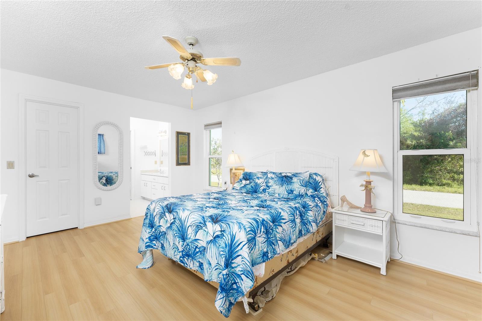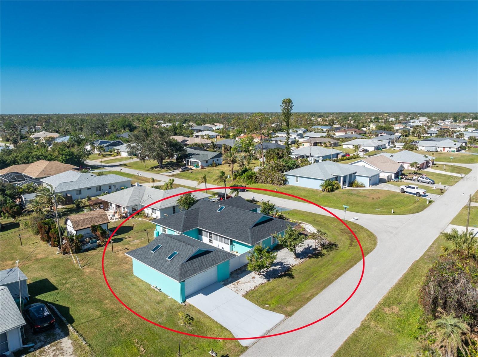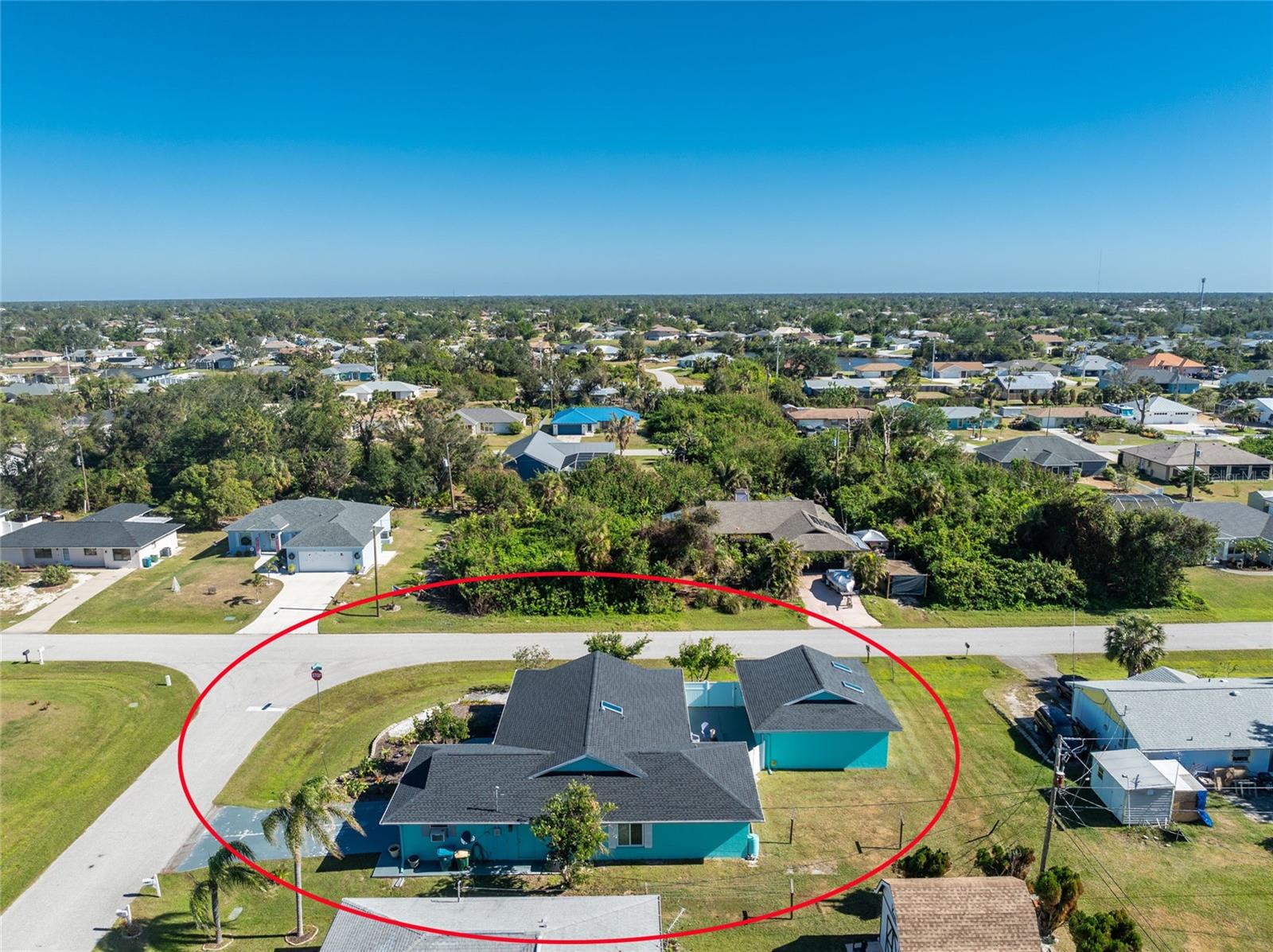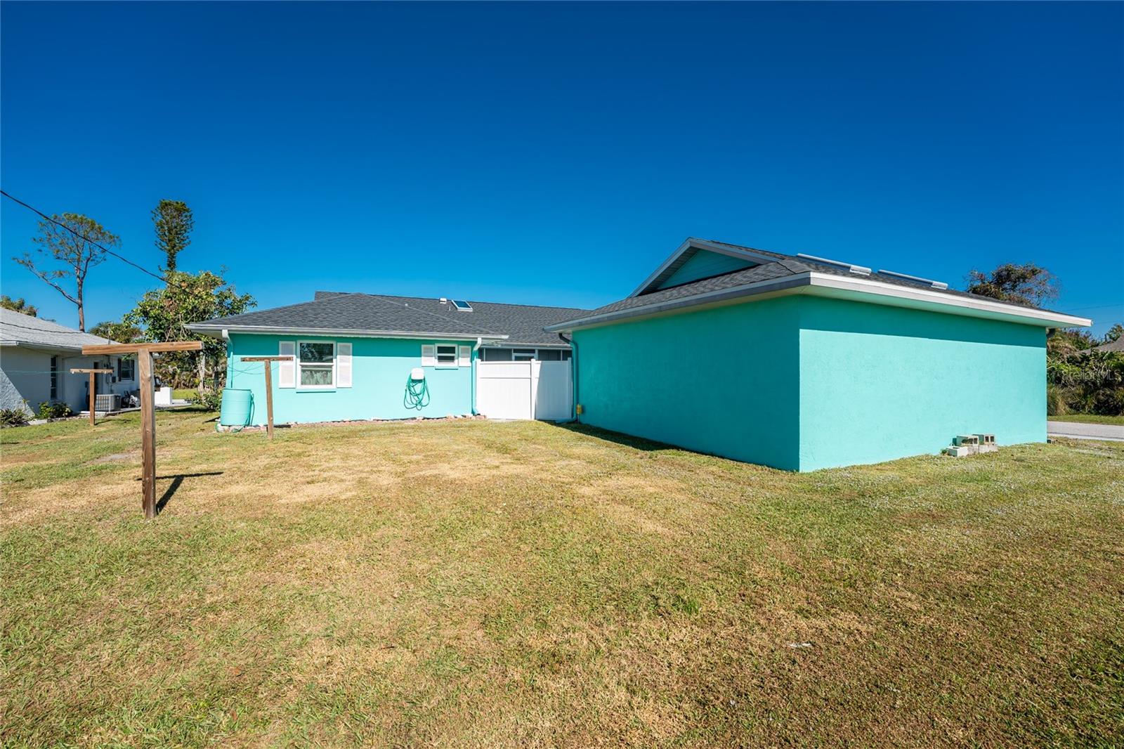 CAR COLLECTOR ALERT! WOODWORKER ALERT! HOME HOBBYIST ALERT! ALL THE EXTRA SPACE YOU NEED WITH THIS HUGE DETACHED GARAGE! TAKE A LOOK AT THIS 2 BED/2 BATH HOME with both a 2 Car attached garage PLUS DETACHED 24 X 30 CBS AIR CONDITIONED GARAGE, situated on an oversized corner lot! No HOA or deed restrictions! Property located in a no flood zone (X) so your lender will not require flood insurance. Fresh paint inside and out! Enter through the tiled and screened front entry into the Living/Dining area, which has easy care laminate flooring and cathedral ceiling for that open and spacious feel that you are looking for! Sliding glass doors from the dining area connect you to the lanai. Kitchen is updated with cottage style cabinetry and granite counter tops, pantry closet, skylight, Tiled flooring, breakfast bar and a pass through to the lanai. Appliances include: Maytag dishwasher, Kenmore smooth top stove, Whirlpool microwave and a Whirlpool stainless steel French door refrigerator! Adjoining Dinette area also has tiled flooring, new light fixture and an other set of sliding glass doors to the lanai. Enjoy movie night in the spacious Family room, with tiled flooring, and cathedral ceiling. Primary bedroom has laminate flooring, walk in closet and ensuite bath, which features cultured marble vanity top with double basin, linen closet, tiled flooring, New lighting fixture, new toilet and a combo tub/shower. Bedroom #2 has a wall closet and tiled flooring and adjacent Guest bath has been updated with all new shower walls and door, new toilet, new vanity, new faucet, new light fixture and tiled flooring. Huge laundry room has utility tub, tiled flooring and GE washer & dryer. Vinyl enclosed and tiled lanai provides another space to read a good book or have morning coffee. Ceiling fans are in all major rooms and the garage, providing good air flow and energy efficiency. Two car attached garage has a screened overhead door, new automatic garage door opener and pull down stairs for extra storage in the attic! Windows have been upgraded to IMPACT RESISTANT WINDOWS! Best of all this property also has an AIR CONDITIONED (WALL UNIT) DETACHED GARAGE! This a great place for a man cave, extra work space, workshop, or a party room (so many possibilities)!! This garage has a ceiling fan, built in cabinetry, pull down stairs (more storage), wall AC, water, and a new automatic garage door opener to go along with the insulated hurricane rated overhead garage door itself, NEW IN 2023! There's a large concrete pad in between the two buildings, which would be perfect for a variety of uses! Roof on house was new in 2023 and detached garage in 2019, all soffit on house new in 2023, AC in 2015 Shopping, medical facilities, restaurants, library, banks are all within ten minutes of this home! AND just a short drive to area beaches! This is a special property with so many extras! Come make it your Florida dream home!
