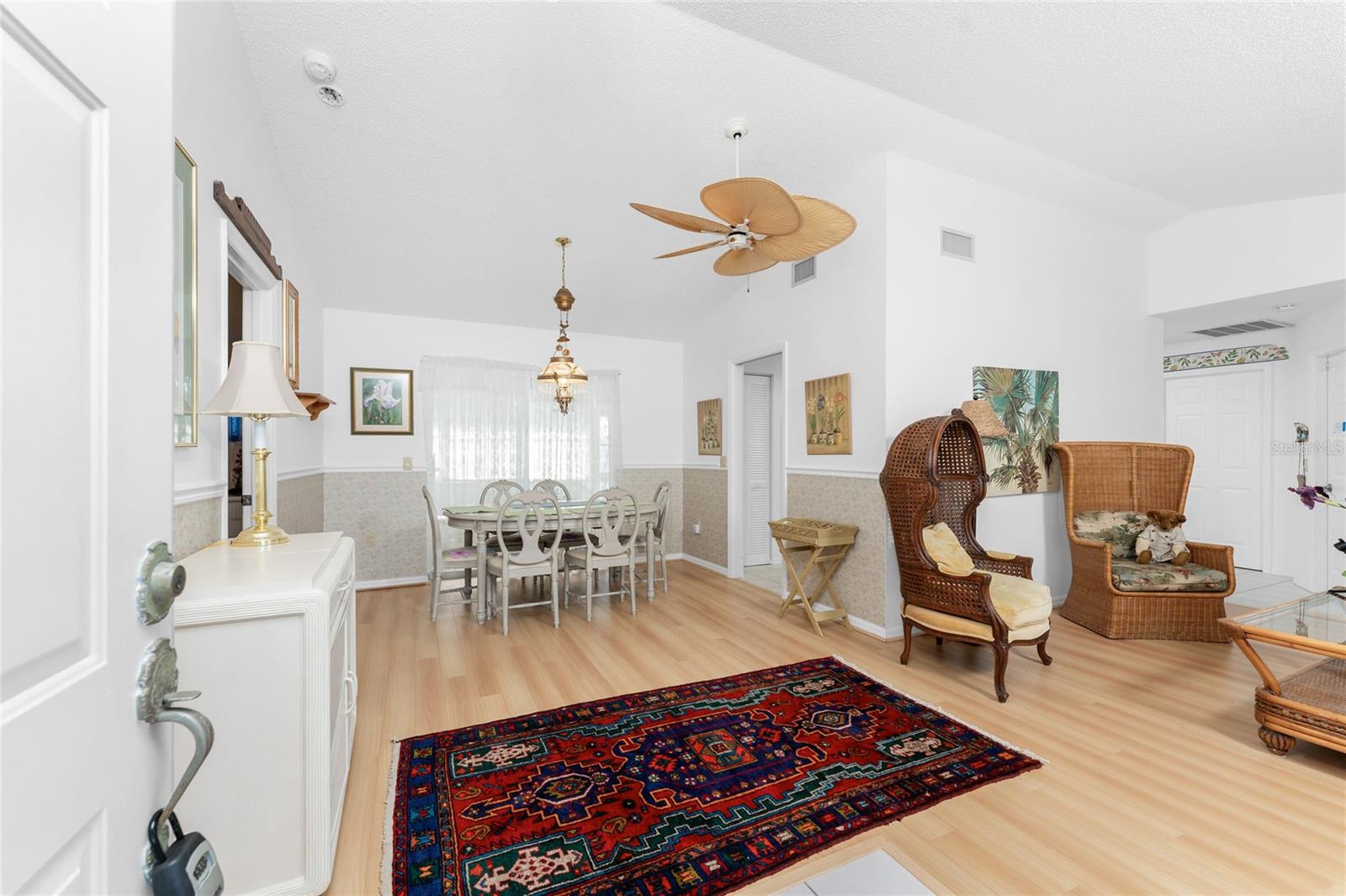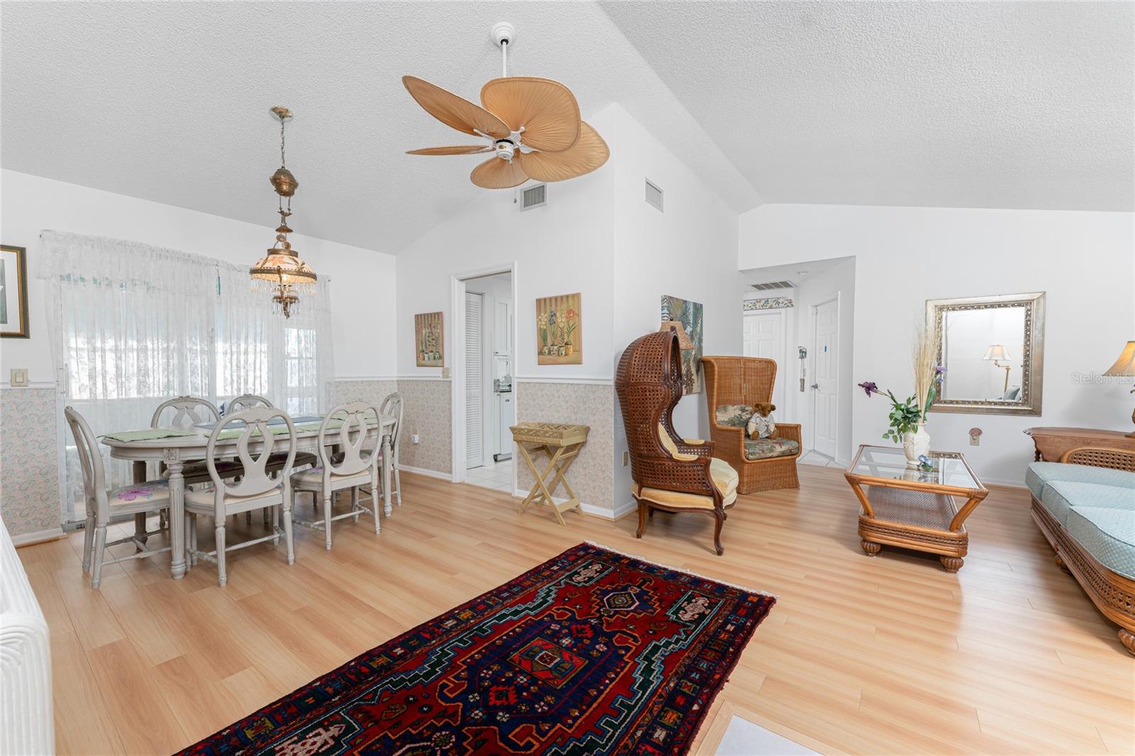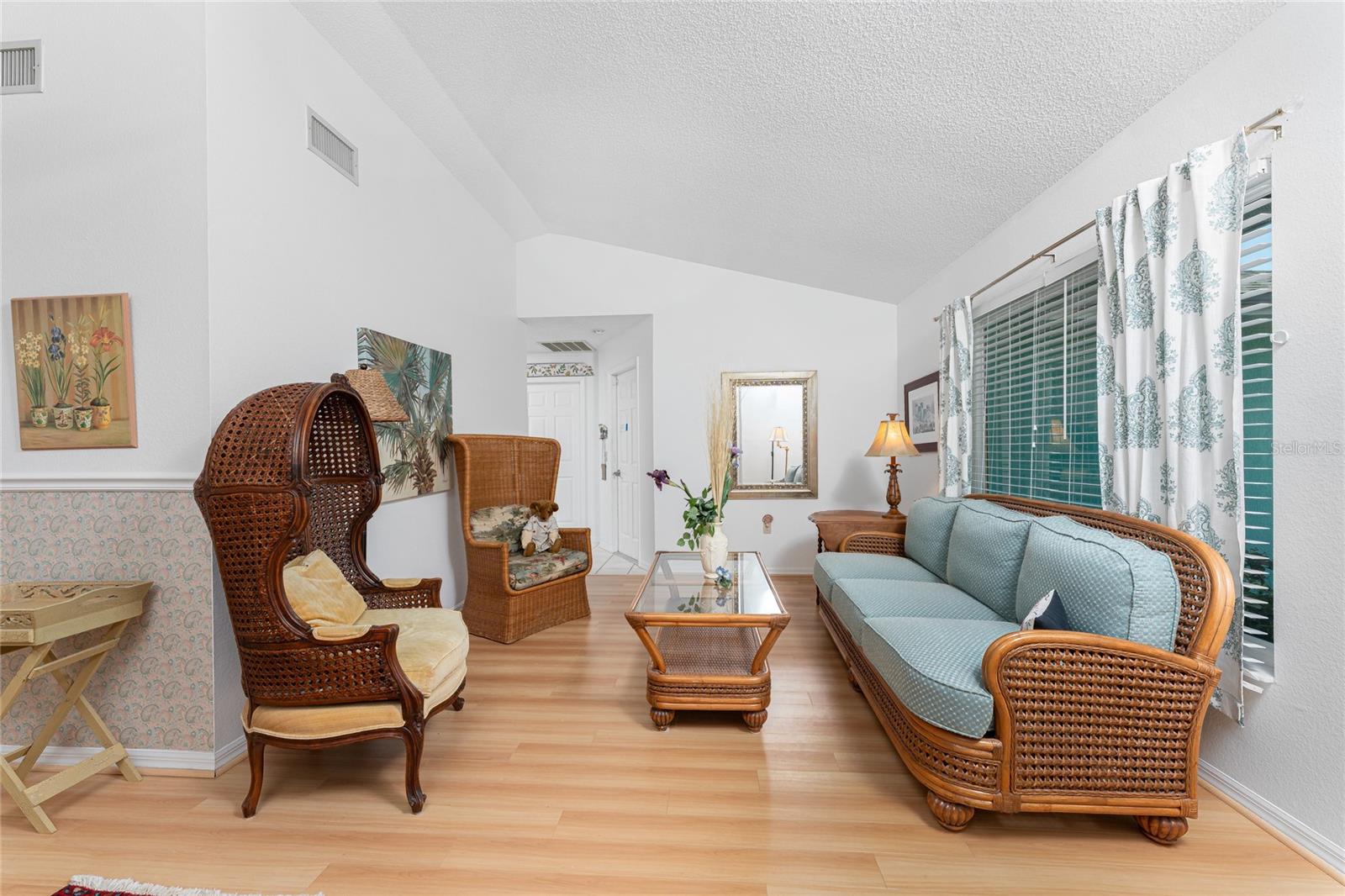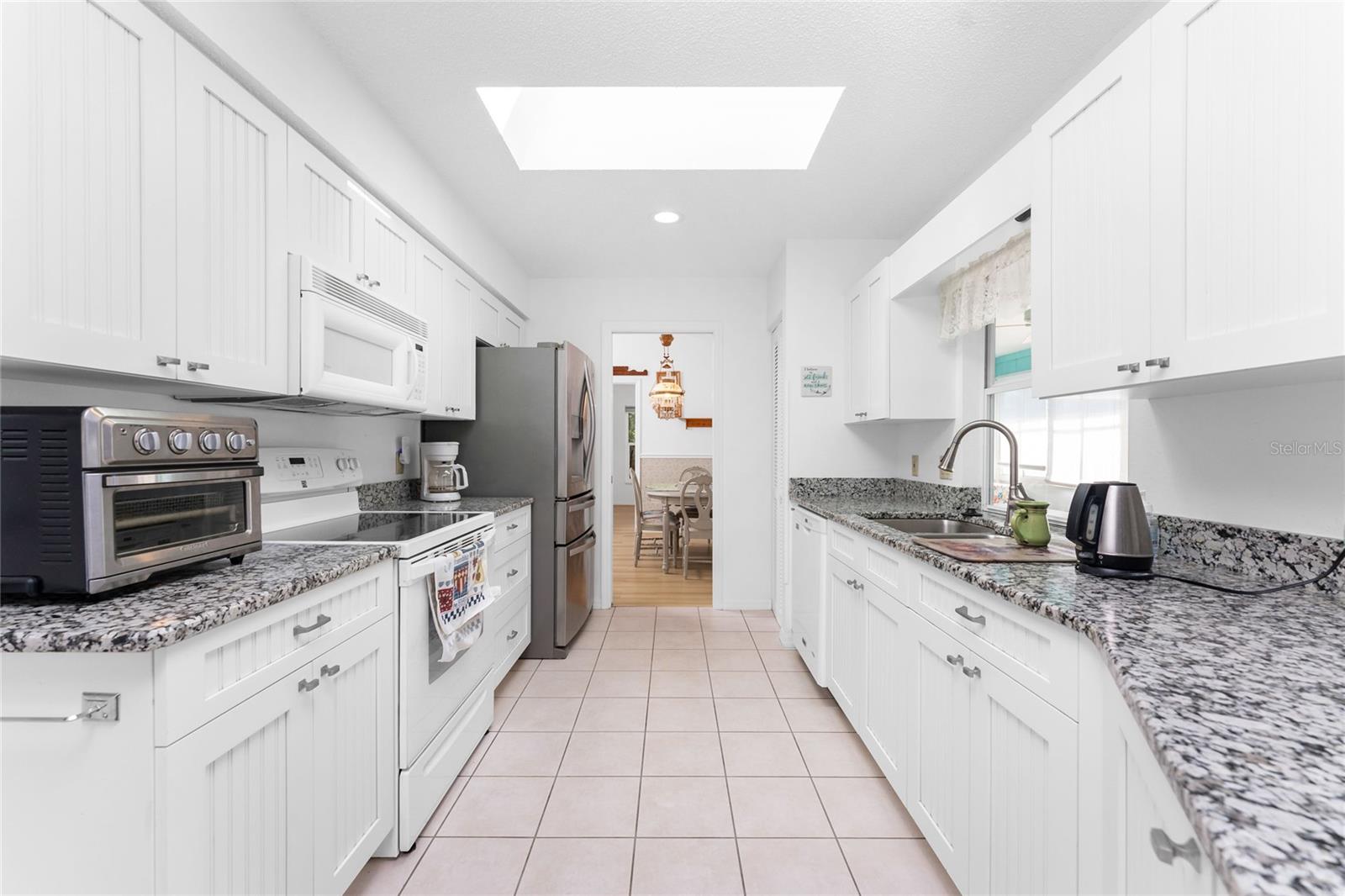 CAR COLLECTOR ALERT! WOODWORKER ALERT! HOME HOBBYIST ALERT! ALL THE EXTRA SPACE YOU NEED WITH THIS HUGE DETACHED GARAGE! TAKE A LOOK AT THIS 2 BED/2 BATH HOME with both a 2 Car attached garage PLUS DETACHED 24 X 30 CBS AIR CONDITIONED GARAGE, situated on an oversized corner lot! No HOA or deed restrictions! Property located in a no flood zone (X) so your lender will not require flood insurance. Fresh paint inside and out! Enter through the tiled and screened front entry into the Living/Dining area, which has easy care laminate flooring and cathedral ceiling for that open and spacious feel that you are looking for! Sliding glass doors from the dining area connect you to the lanai. Kitchen is updated with cottage style cabinetry and granite counter tops, pantry closet, skylight, Tiled flooring, breakfast bar and a pass through to the lanai. Appliances include: Maytag dishwasher, Kenmore smooth top stove, Whirlpool microwave and a Whirlpool stainless steel French door refrigerator! Adjoining Dinette area also has tiled flooring, new light fixture and an other set of sliding glass doors to the lanai. Enjoy movie night in the spacious Family room, with tiled flooring, and cathedral ceiling. Primary bedroom has laminate flooring, walk in closet and ensuite bath, which features cultured marble vanity top with double basin, linen closet, tiled flooring, New lighting fixture, new toilet and a combo tub/shower. Bedroom #2 has a wall closet and tiled flooring and adjacent Guest bath has been updated with all new shower walls and door, new toilet, new vanity, new faucet, new light fixture and tiled flooring. Huge laundry room has utility tub, tiled flooring and GE washer & dryer. Vinyl enclosed and tiled lanai provides another space to read a good book or have morning coffee. Ceiling fans are in all major rooms and the garage, providing good air flow and energy efficiency. Two car attached garage has a screened overhead door, new automatic garage door opener and pull down stairs for extra storage in the attic! Windows have been upgraded to IMPACT RESISTANT WINDOWS! Best of all this property also has an AIR CONDITIONED (WALL UNIT) DETACHED GARAGE! This a great place for a man cave, extra work space, workshop, or a party room (so many possibilities)!! This garage has a ceiling fan, built in cabinetry, pull down stairs (more storage), wall AC, water, and a new automatic garage door opener to go along with the insulated hurricane rated overhead garage door itself, NEW IN 2023! There's a large concrete pad in between the two buildings, which would be perfect for a variety of uses! Roof on house was new in 2023 and detached garage in 2019, all soffit on house new in 2023, AC in 2015 Shopping, medical facilities, restaurants, library, banks are all within ten minutes of this home! AND just a short drive to area beaches! This is a special property with so many extras! Come make it your Florida dream home!