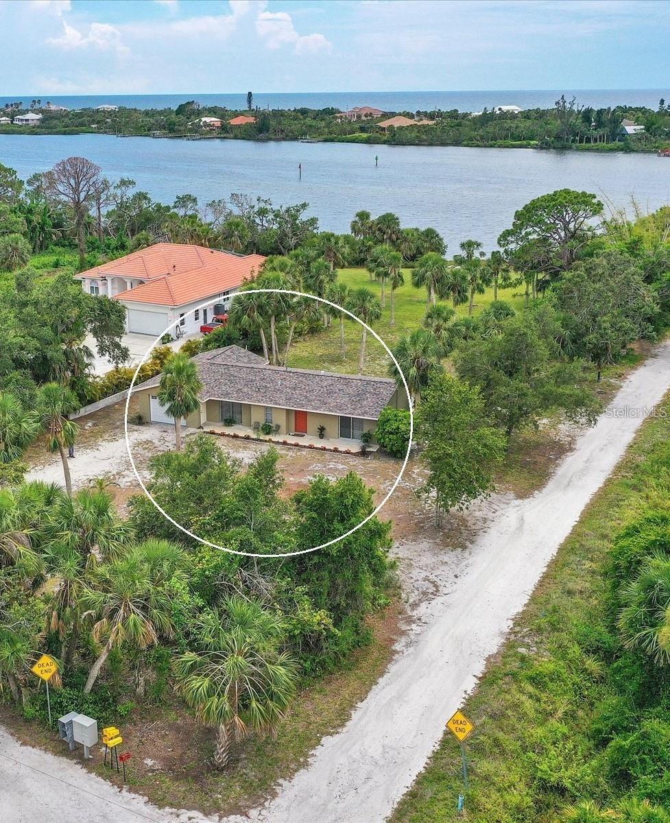 Unique and enticing buildable Lemon Bay waterfront lot situation! Back on market after the hurricanes at much reduced price. Consisting of a mid-century gem on nearly an acre and entire parcel of two lots. The existing home is situated on the streetside lot - the vacant buildable lot on the waterside. Create your own private compound. Live in the existing home once it is restored and build your dream waterfront home. Many possibilities - make the existing original home the guest house or income producing property. This is just one scenario of many possibilities and opportunities. Although solidly built the home did get water intrusion from the hurricane but with little work can be restored to tip top condition. Prior to hurricane home had been painted throughout, new tile flooring and new kitchen and baths. Roof was new in 2022. The seller has conserved and reconditioned the original fabulous cedar wood cathedral ceiling in the great room. Unobstructive water views from the great-room, kitchen, master bedroom and bonus office. An easy launch for a kayak or paddle board right off the property and walking distance to the public beach. Lemon Avenue is a privately maintained road with little traffic which has recently been designated a protected canopy road. Enjoy stress free waterfront living being off the barrier islands as Lemon Ave did not flood during the hurricanes. This is a peaceful residential setting with abundant trees and vegetation and captivating wildlife, especially over the water. It truly is a special property, waterfront and walk to beach with endless possibilities. Being sold As Is.