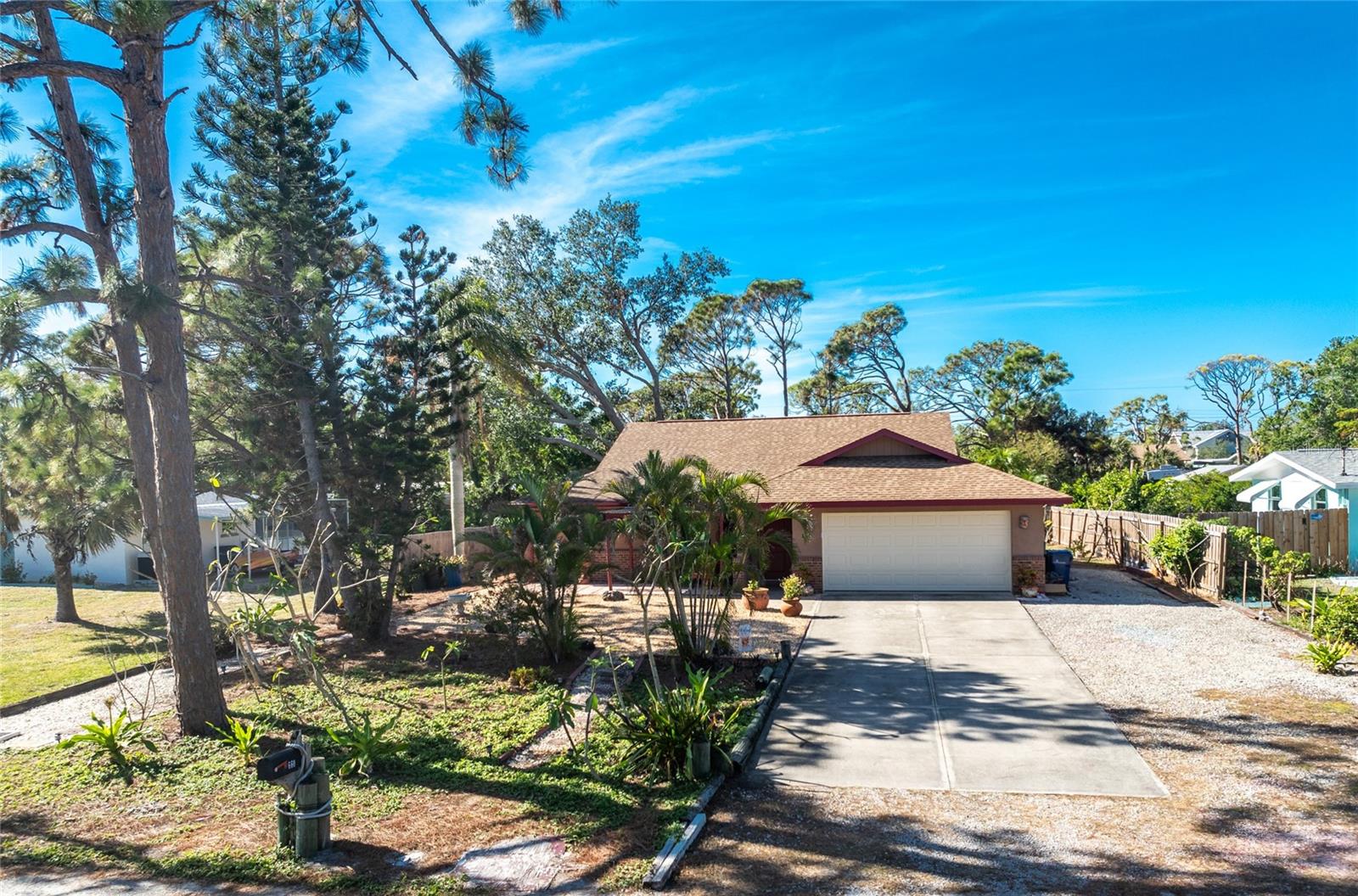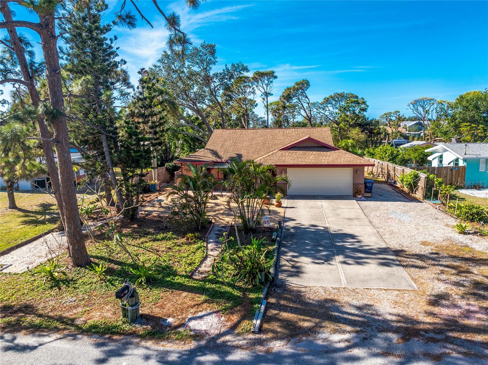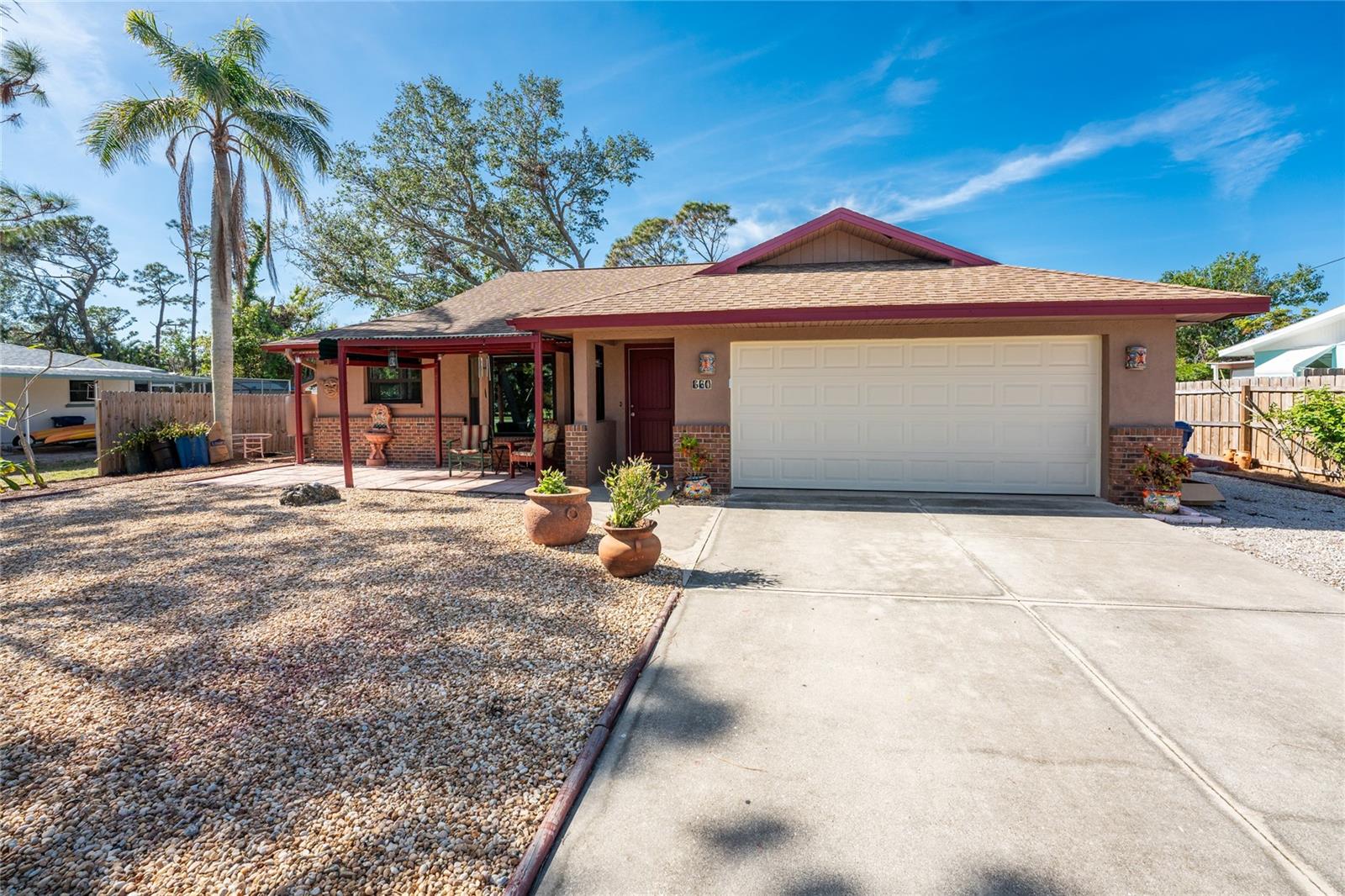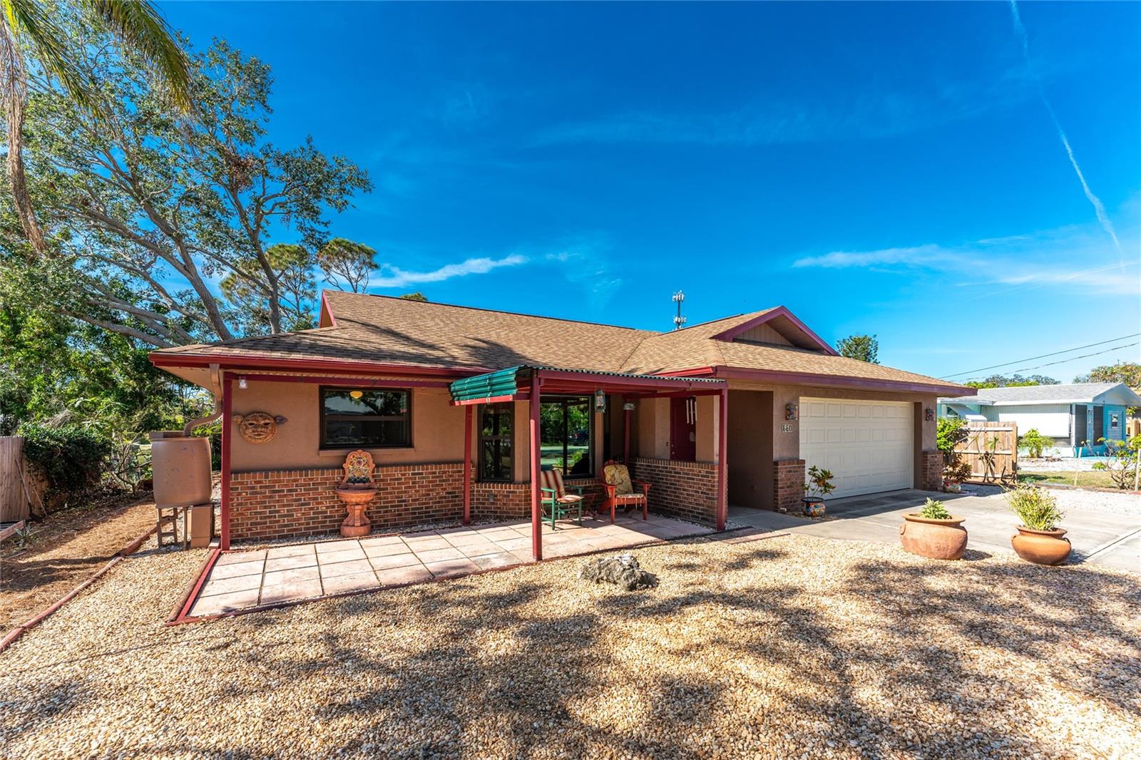 Less than 3 miles to Englewood Beach – what a fantastic location! This charming 2-bedroom + den, 2-bathroom home is situated in the desirable X flood zone and features impact-rated windows, doors, and a garage door for added peace of mind. Set on a spacious lot with mature landscaping, this home offers both privacy and curb appeal with its inviting front porch and brick accents. Inside, tile flooring throughout makes maintenance a breeze. The great room has a vaulted ceiling and a large bay window, creating a bright and airy feel. The kitchen and dining areas are enhanced by vaulted ceilings with skylights, flooding the space with natural light. Stainless steel appliances, granite countertops, a pantry with built-in storage, and double French doors complete the kitchen and dining area. The adjacent den, currently used as a craft and hobby room, offers endless possibilities to suit your needs. The primary suite features a walk-in closet and an ensuite bathroom with a fully tiled step-in shower and a stylish barn-door-style vanity with a quartz countertop. A comfortable guest bedroom and bathroom provide a welcoming space for visitors. The screened-in lanai with a ceiling fan is the perfect spot to relax, enjoy outdoor dining, or unwind with a good book. Located in the heart of Englewood, this home is close to local restaurants, shopping, golf courses, walking and biking trails, and the weekly farmers market on historic Dearborn Street. Don’t miss this opportunity, schedule your showing today!