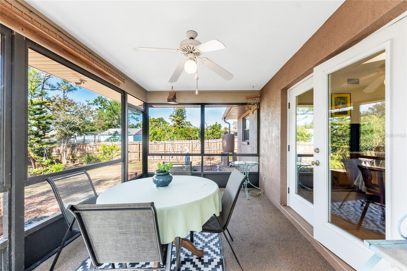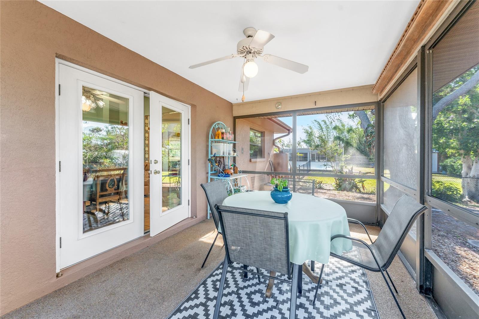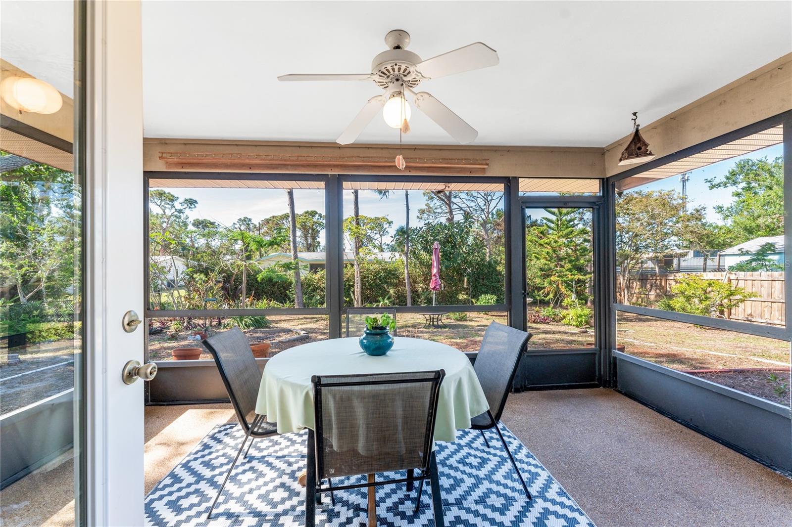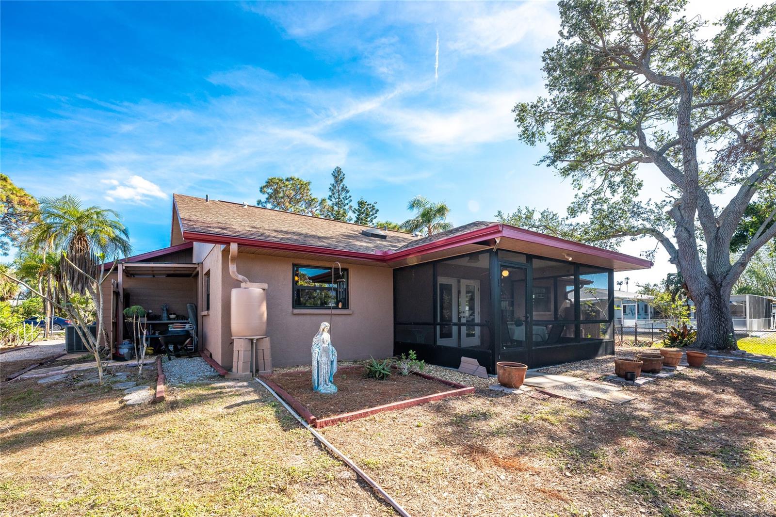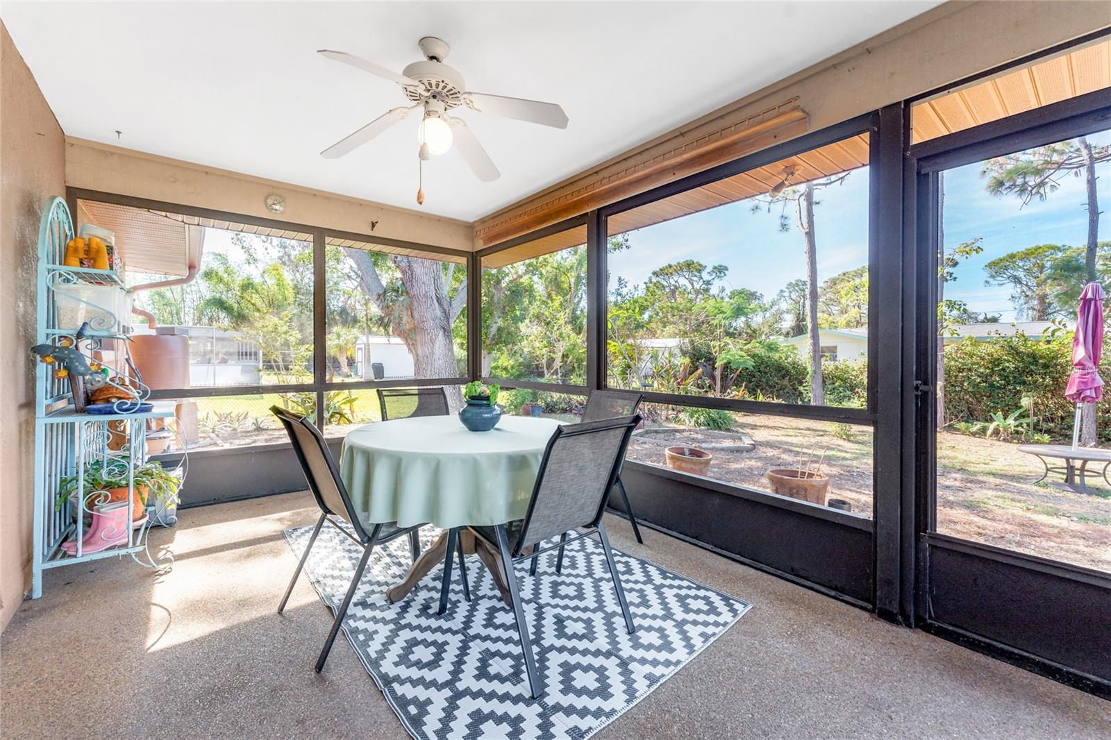 Less than 3 miles to Englewood Beach – what a fantastic location! This charming 2-bedroom + den, 2-bathroom home is situated in the desirable X flood zone and features impact-rated windows, doors, and a garage door for added peace of mind. Set on a spacious lot with mature landscaping, this home offers both privacy and curb appeal with its inviting front porch and brick accents. Inside, tile flooring throughout makes maintenance a breeze. The great room has a vaulted ceiling and a large bay window, creating a bright and airy feel. The kitchen and dining areas are enhanced by vaulted ceilings with skylights, flooding the space with natural light. Stainless steel appliances, granite countertops, a pantry with built-in storage, and double French doors complete the kitchen and dining area. The adjacent den, currently used as a craft and hobby room, offers endless possibilities to suit your needs. The primary suite features a walk-in closet and an ensuite bathroom with a fully tiled step-in shower and a stylish barn-door-style vanity with a quartz countertop. A comfortable guest bedroom and bathroom provide a welcoming space for visitors. The screened-in lanai with a ceiling fan is the perfect spot to relax, enjoy outdoor dining, or unwind with a good book. Located in the heart of Englewood, this home is close to local restaurants, shopping, golf courses, walking and biking trails, and the weekly farmers market on historic Dearborn Street. Don’t miss this opportunity, schedule your showing today!