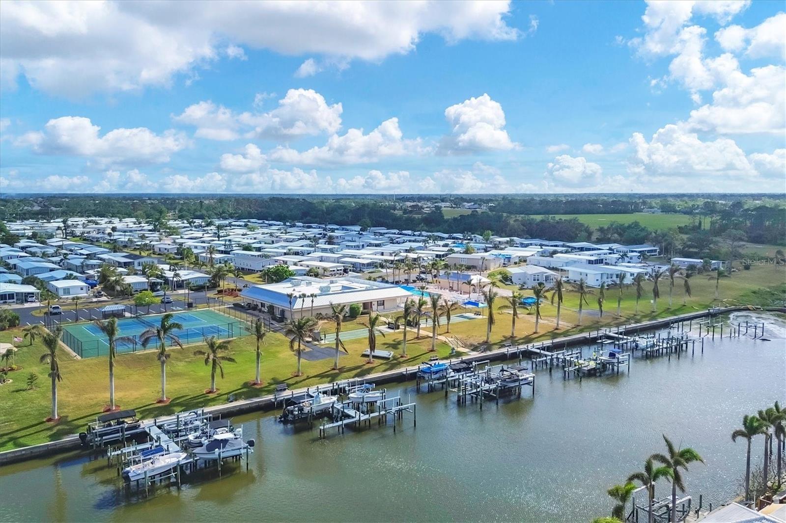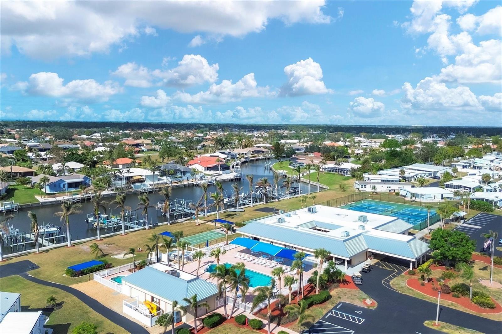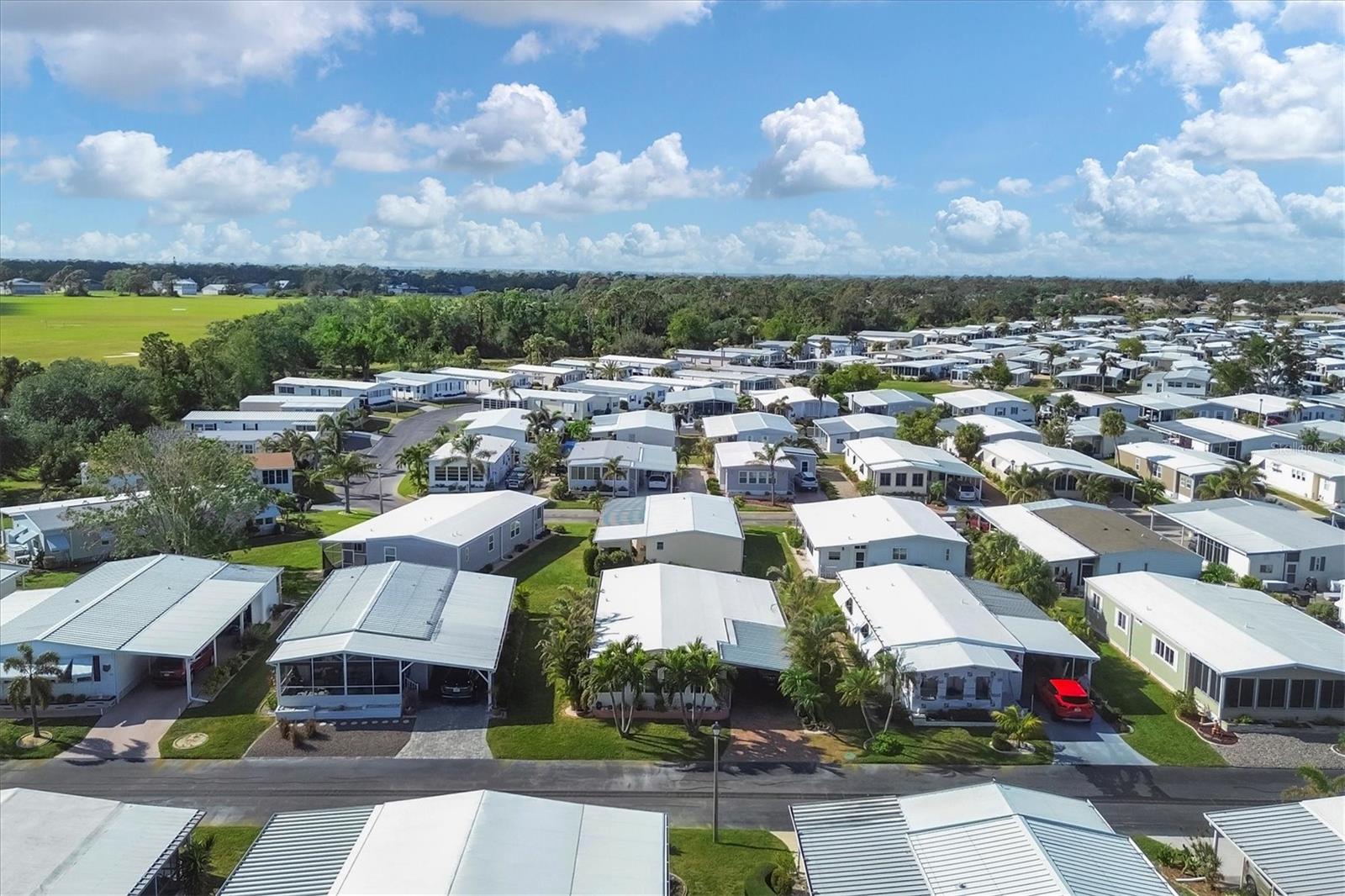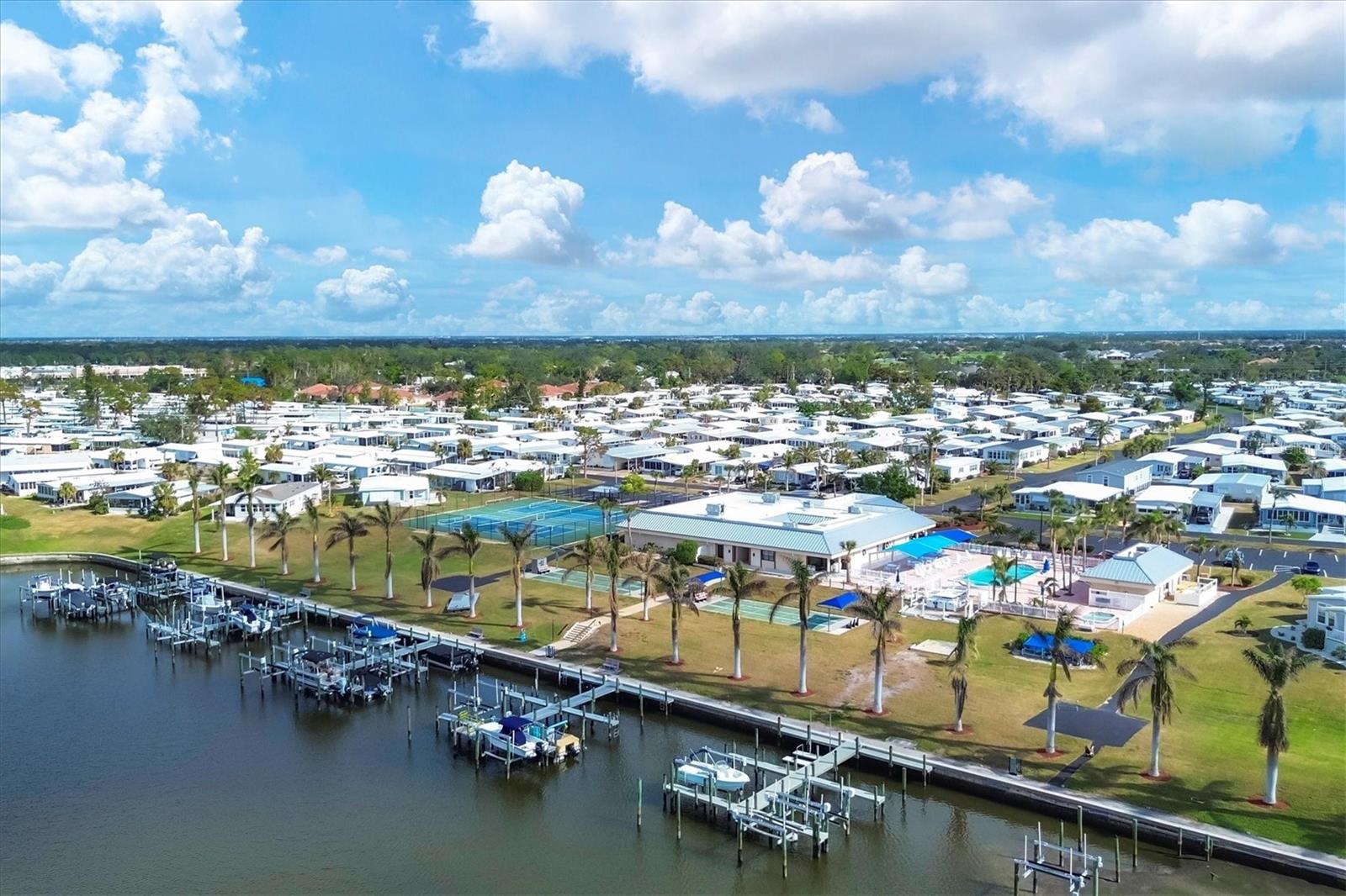 Lovely, Updated, 2/2 DW Mobile Home in Alameda Isles. A Home Warranty and Club Car Golf Cart are included! Alameda Isles is a resident owned, 56 Acre, Waterfront - Gated - 55 or Older- Mobile Home Community with Private Park and 59 Slip Marina with access to the Inter- Coastal, Lemon Bay and Gulf of Mexico. Enjoy daily Sunsets and Mantatee watching, right from your own community Marina, just a short golf cart ride away. No flooding from Hurricanes Helene or Milton! This home has all new vinyl siding and new vinyl windows, new kitchen with all wood cabinets and granite counter tops. Appliances approx. 6 yrs old -, smooth top slide in electric range, microwave, washer and dryer. Dishwasher 4 yrs. Enclosed lanai with air conditioning and heat, 210 sq ft, making a total of 1266sq ft of living space, under air. One year old membrane roof with 15 yr warranty, transferrable to new owner. Updated tile bathrooms, both with Walk In Showers. Outdoor, cedar shower with stone. All new, double paned windows and interior doors. Pavers on driveway and lanai. Large Shed with oak cabinets and countertops. Plantation shutters in primary bedroom and living room. Plumbing and electrical were all updated. Independant well for irrigation system. All solid vinyl flooring throughout, except tiled bathrooms. Park Amenities include Year-round heated Swimming Pool & Sunshade, Therapeutic Spa, Exercise Facility, Tennis, Pickleball & Shuffleboard Courts, Picnic Facilities, Kayaks/Kayak Launch, Bocce Courts, Golf Putting Green and Practice Area, Woodworking Shop, RV/Boat Storage area and Marina Boat Slips (Required Separate Lease). Clubhouse Complex houses a large hall with kitchen and stage, Craft room with kiln, Billiards room, Lounge/card room and Library. There is Free Wi-Fi throughout clubhouse. Come check out this lovely Home and Community. You won't be disappointed!