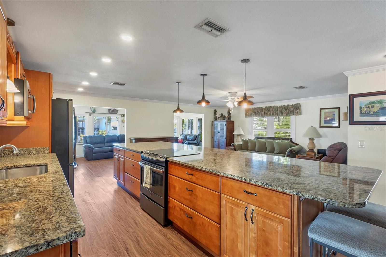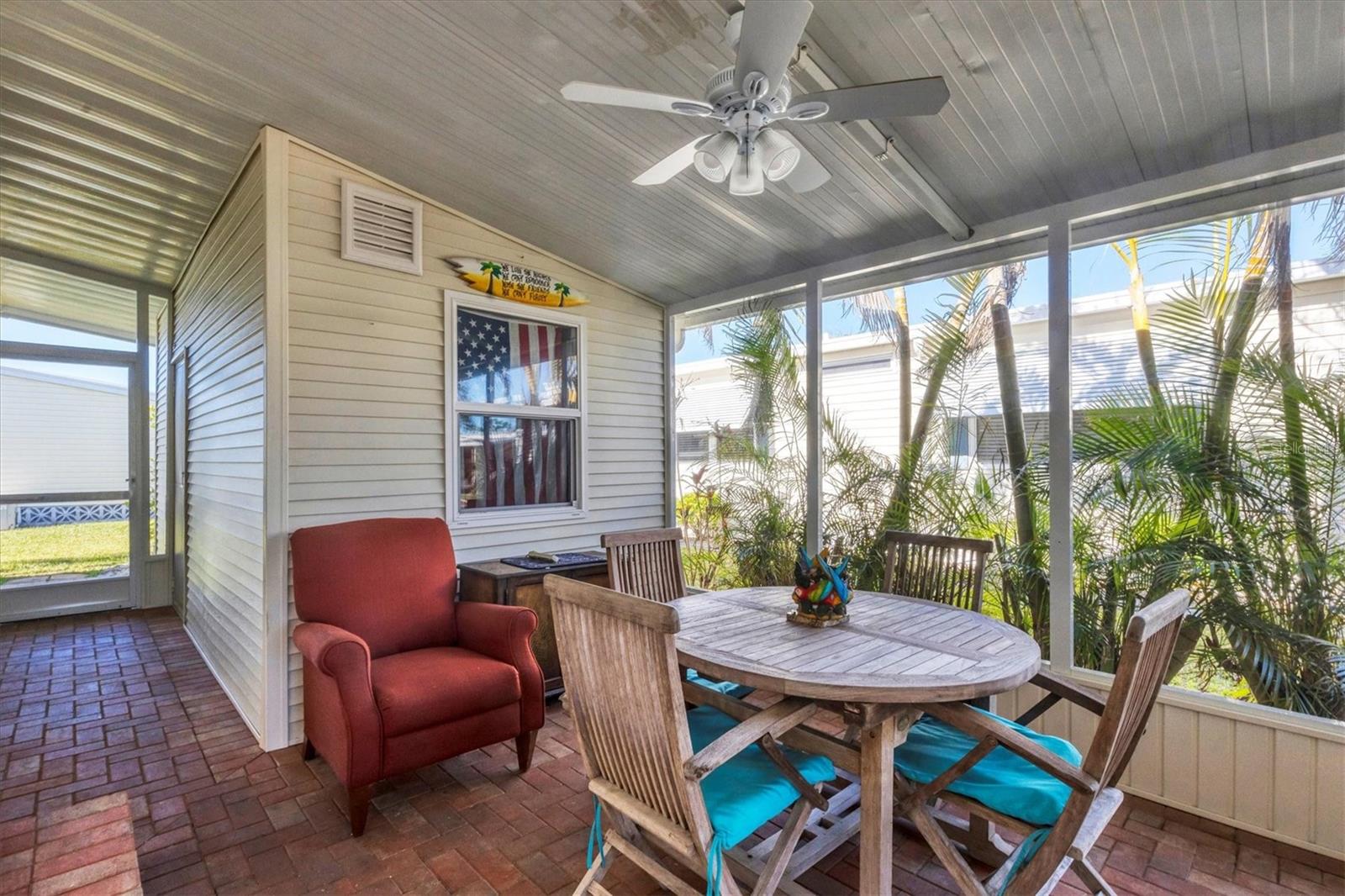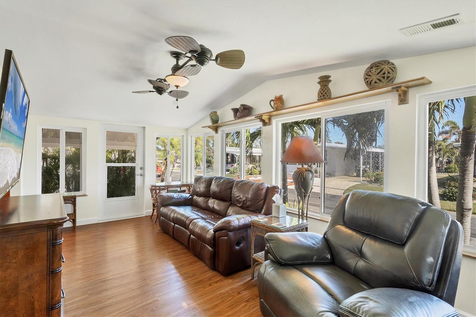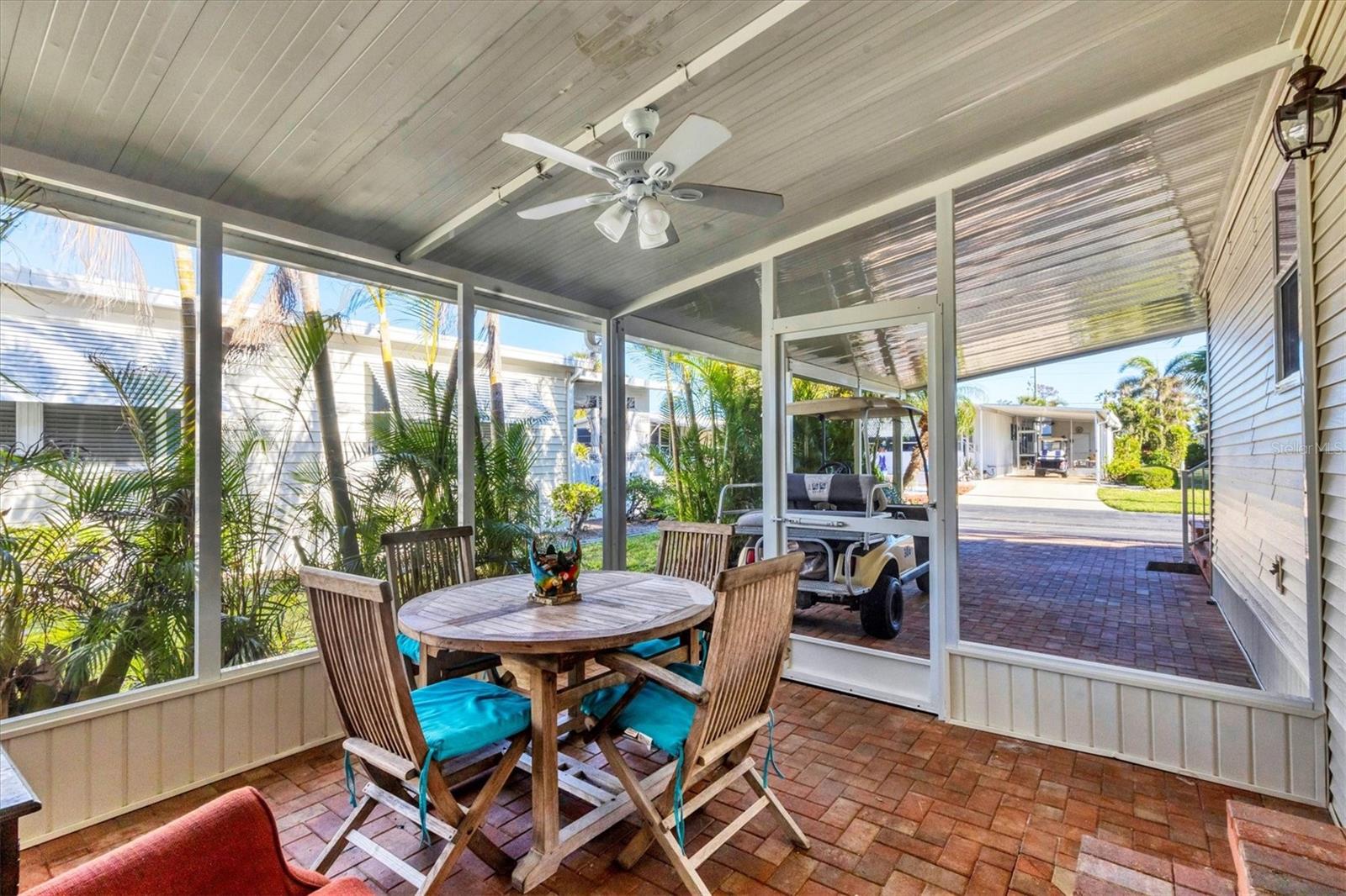 Lovely, Updated, 2/2 DW Mobile Home in Alameda Isles. A Home Warranty and Club Car Golf Cart are included! Alameda Isles is a resident owned, 56 Acre, Waterfront - Gated - 55 or Older- Mobile Home Community with Private Park and 59 Slip Marina with access to the Inter- Coastal, Lemon Bay and Gulf of Mexico. Enjoy daily Sunsets and Mantatee watching, right from your own community Marina, just a short golf cart ride away. No flooding from Hurricanes Helene or Milton! This home has all new vinyl siding and new vinyl windows, new kitchen with all wood cabinets and granite counter tops. Appliances approx. 6 yrs old -, smooth top slide in electric range, microwave, washer and dryer. Dishwasher 4 yrs. Enclosed lanai with air conditioning and heat, 210 sq ft, making a total of 1266sq ft of living space, under air. One year old membrane roof with 15 yr warranty, transferrable to new owner. Updated tile bathrooms, both with Walk In Showers. Outdoor, cedar shower with stone. All new, double paned windows and interior doors. Pavers on driveway and lanai. Large Shed with oak cabinets and countertops. Plantation shutters in primary bedroom and living room. Plumbing and electrical were all updated. Independant well for irrigation system. All solid vinyl flooring throughout, except tiled bathrooms. Park Amenities include Year-round heated Swimming Pool & Sunshade, Therapeutic Spa, Exercise Facility, Tennis, Pickleball & Shuffleboard Courts, Picnic Facilities, Kayaks/Kayak Launch, Bocce Courts, Golf Putting Green and Practice Area, Woodworking Shop, RV/Boat Storage area and Marina Boat Slips (Required Separate Lease). Clubhouse Complex houses a large hall with kitchen and stage, Craft room with kiln, Billiards room, Lounge/card room and Library. There is Free Wi-Fi throughout clubhouse. Come check out this lovely Home and Community. You won't be disappointed!