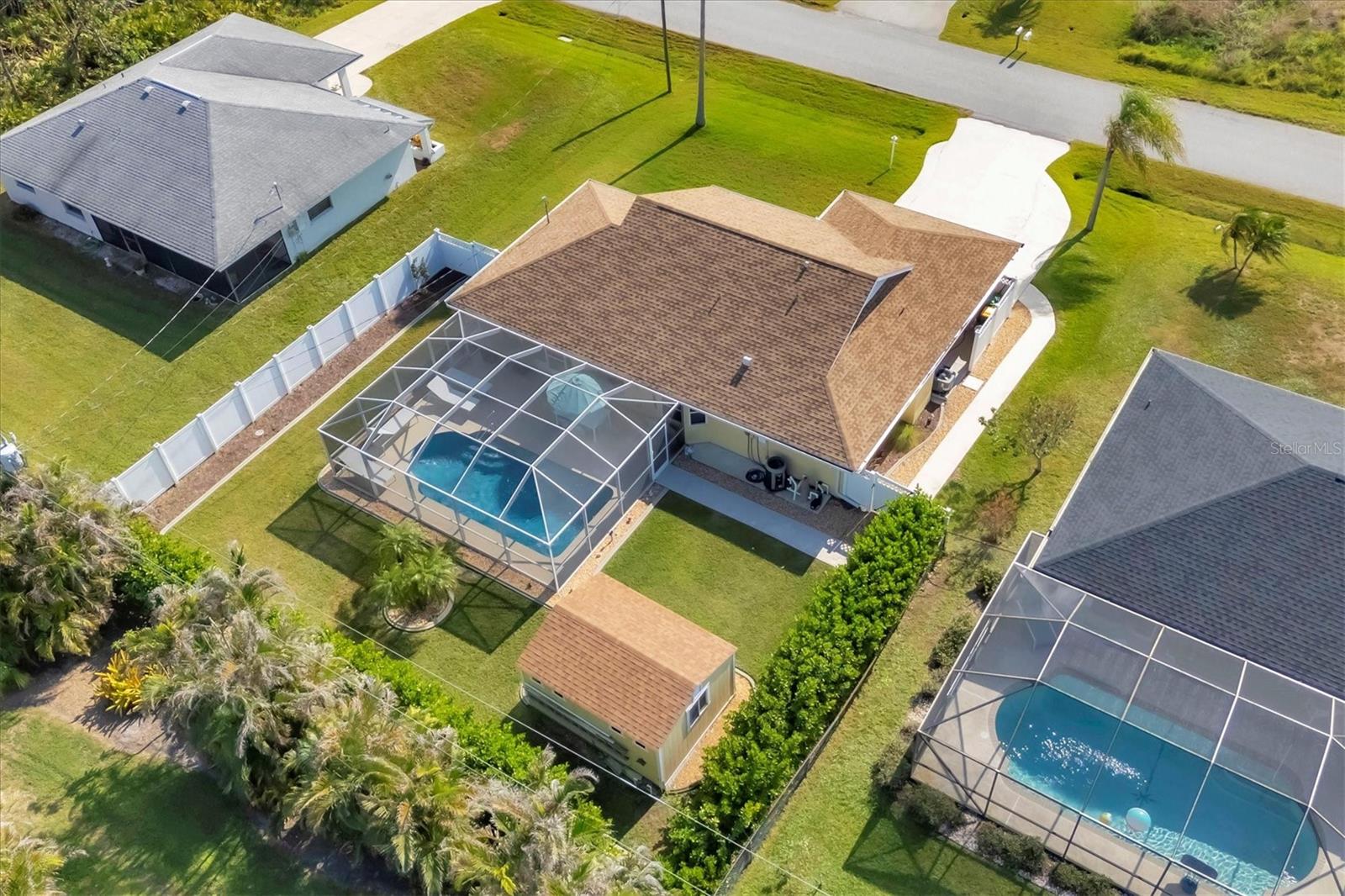 Welcome to your Florida paradise! This beautifully maintained 2-bedroom, 2-bath home with an enclosed Florida room offers the perfect blend of comfort and style. Step inside to find recent upgrades, including a 2022 roof, remodeled bathrooms, an upgraded kitchen with stainless steel appliances, new microwave (2025), granite countertops, and new cabinets. The split-bedroom floor plan provides privacy, while the enclosed Florida room offers additional living space with serene poolside views. Additional updates include a new hot water heater and a new light fixture in the hall bathroom, adding both comfort and convenience. The backyard is your private oasis, featuring a heated, in-ground saltwater pool (added in 2019) with a screened enclosure for year-round enjoyment. The two-car garage comes equipped with an electric screen, hurricane-rated doors, and extra hurricane shutter hardware for added peace of mind. The guest bedroom includes a built-in Murphy bed, making it a versatile space for visitors or a home office. Outside, the fenced yard boasts mature landscaping, a timed irrigation system, and a garden/workshop shed for storage or DIY projects. As a bonus, this home is offered TURNKEY FURNISHED, making your move seamless and stress-free. Located in East Englewood, this home is close to Wellen Park, Boca Grande, and some of the Gulf Coast’s most stunning beaches, including Englewood, Stump Pass, Manasota Key, and Venice. Enjoy easy access to world-class fishing, boating, golf courses, boutique shopping, local restaurants, and sports venues. Schedule your private showing today and experience Florida living at its finest!