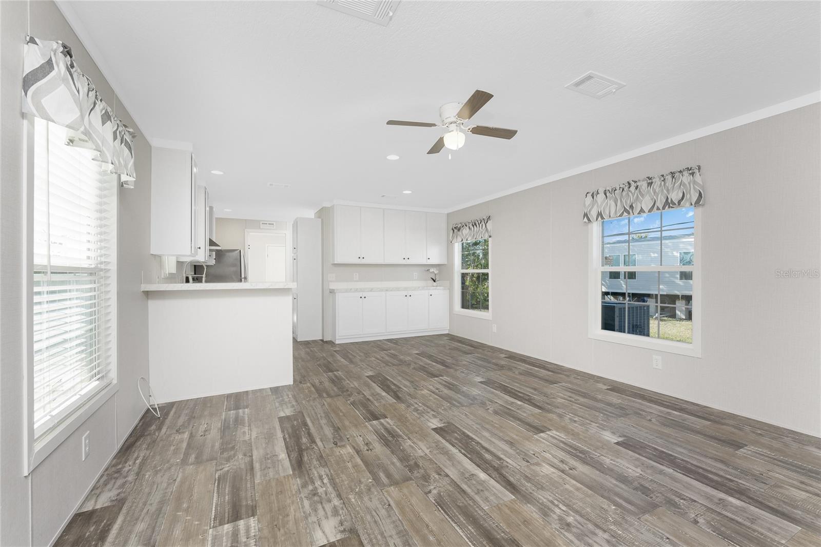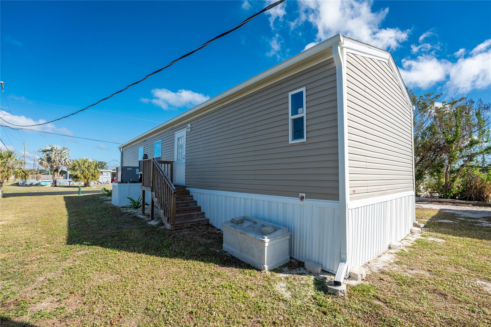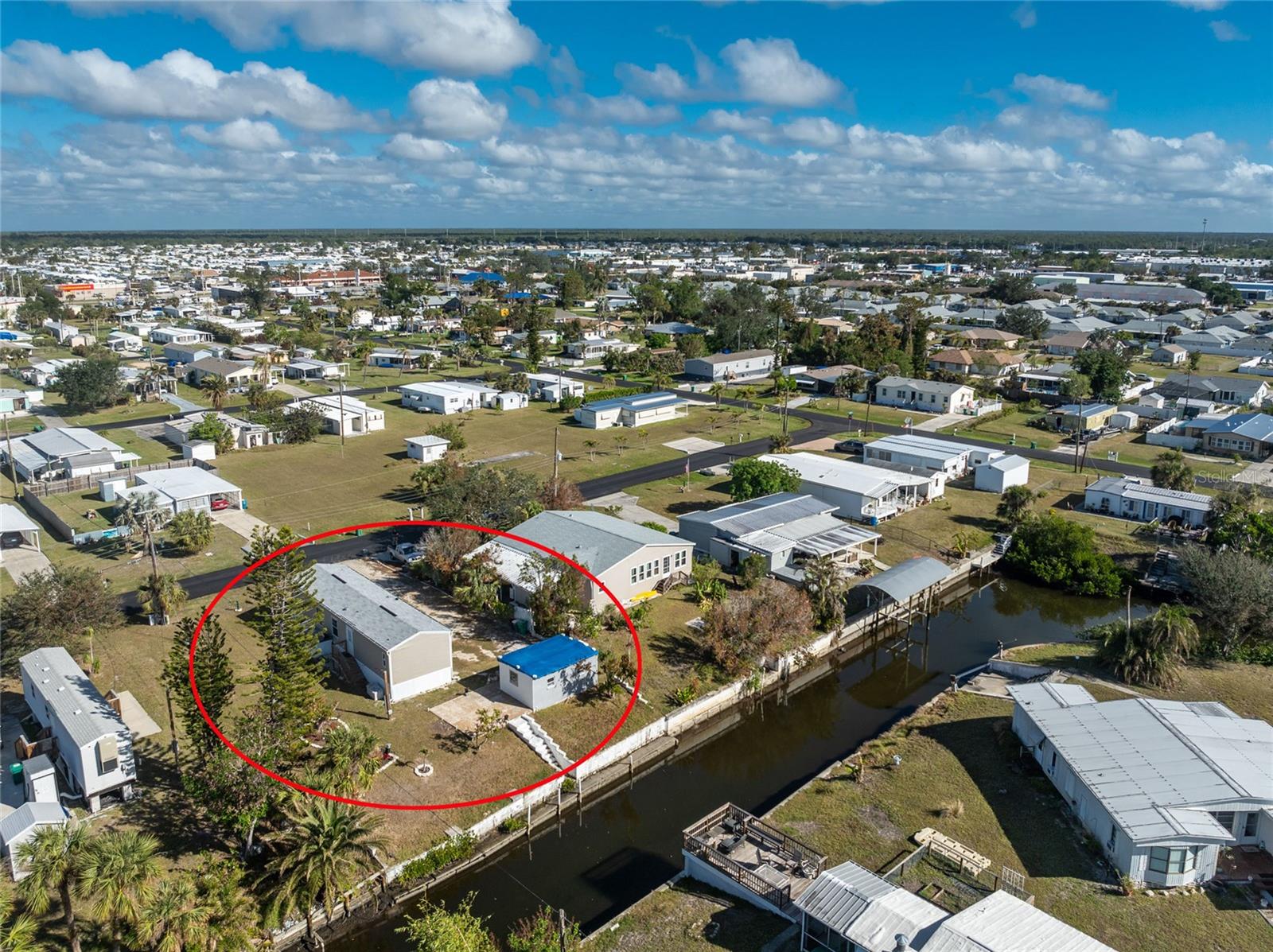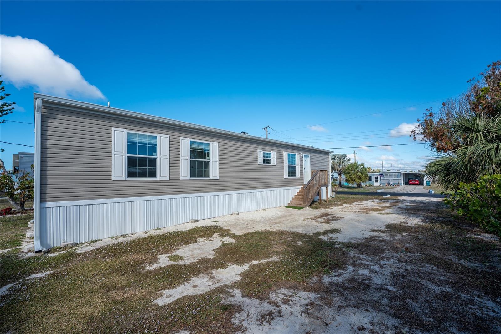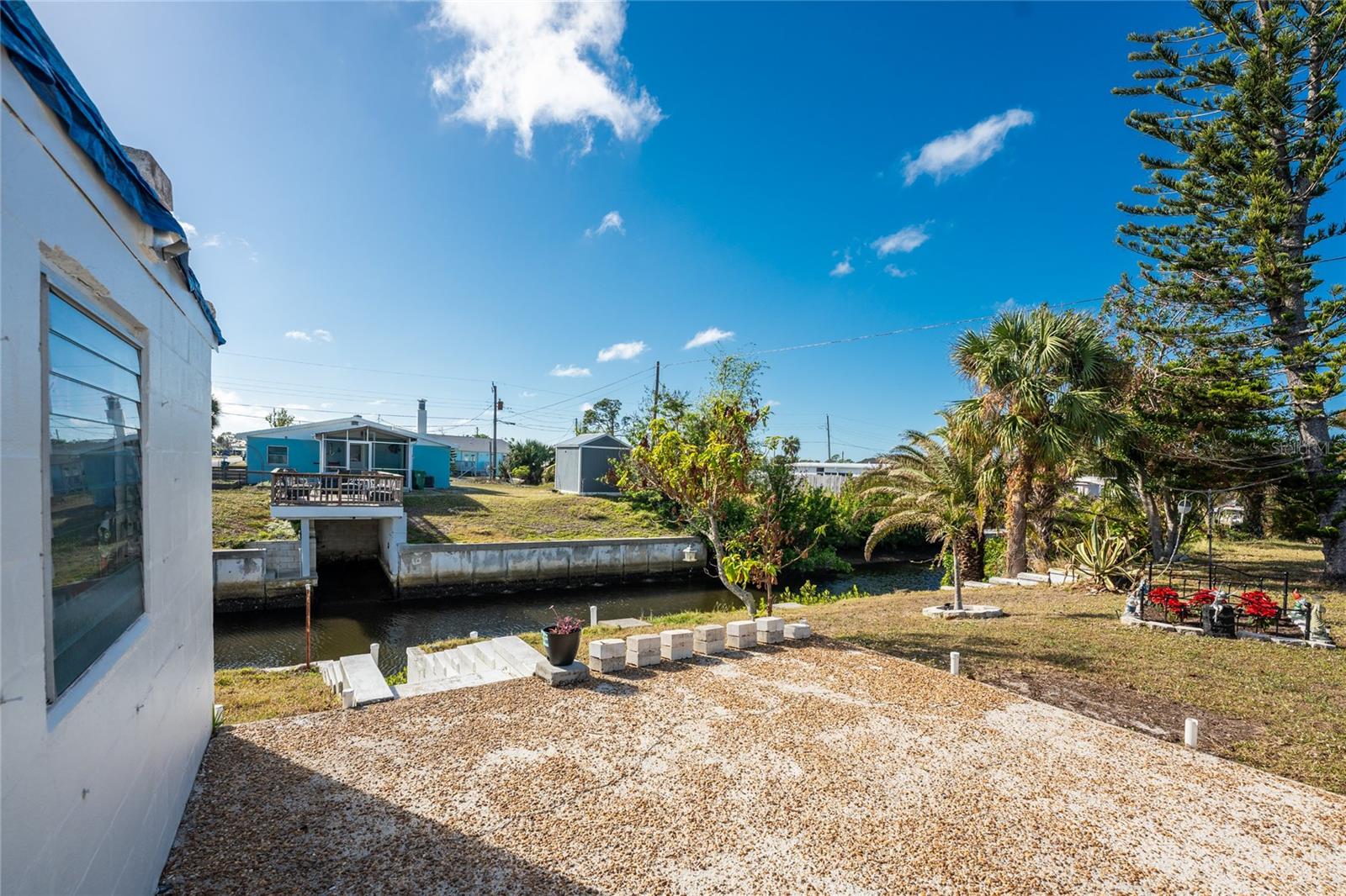 Direct Water Access to Lemon Bay and the Gulf of Mexico – A Boater’s Paradise! This 2023, 2-bedroom, 2-bathroom manufactured home offers saltwater canal frontage and is ideally situated close to the community center, where you can easily walk, bike, or use a golf cart to participate in the many social activities or games with friends and neighbors. Located in the desirable Mobile Gardens community, you’ll own your land, adding value to this waterfront retreat. Boating enthusiasts will love the quick Gulf access, making this property perfect for those seeking the ultimate Florida lifestyle. Inside, the home features wood laminate flooring in the main living areas and bathrooms, an open great room that connects to the kitchen and dining area, and large windows that allow for an abundance of natural light. The kitchen has white shaker-style cabinets, a breakfast bar, ample countertop space, and a stainless steel farmhouse sink, ideal for meal preparation and entertaining. An interior laundry room with shelving adds extra storage.The primary suite includes dual closets and a private bathroom with a step-in shower. Guests will enjoy a welcoming second bedroom with easy access to a full bathroom, featuring a shower/tub combination. Outside, you’ll find a detached storage shed, a patio overlooking the canal, and concrete steps leading to the dock area, the perfect spot to relax or enjoy evening cocktails by the water. Mobile Gardens offers an optional low-fee HOA membership providing access to amenities such as a recreation center, shuffleboard, social events, and two community boat ramps. Boat slips are available separately on a first-come, first-served basis for an additional fee. Located near beautiful Gulf beaches, shopping, dining, and live entertainment, this home is ideal as a seasonal retreat or investment opportunity. Don’t miss your chance to live the Florida boating lifestyle!