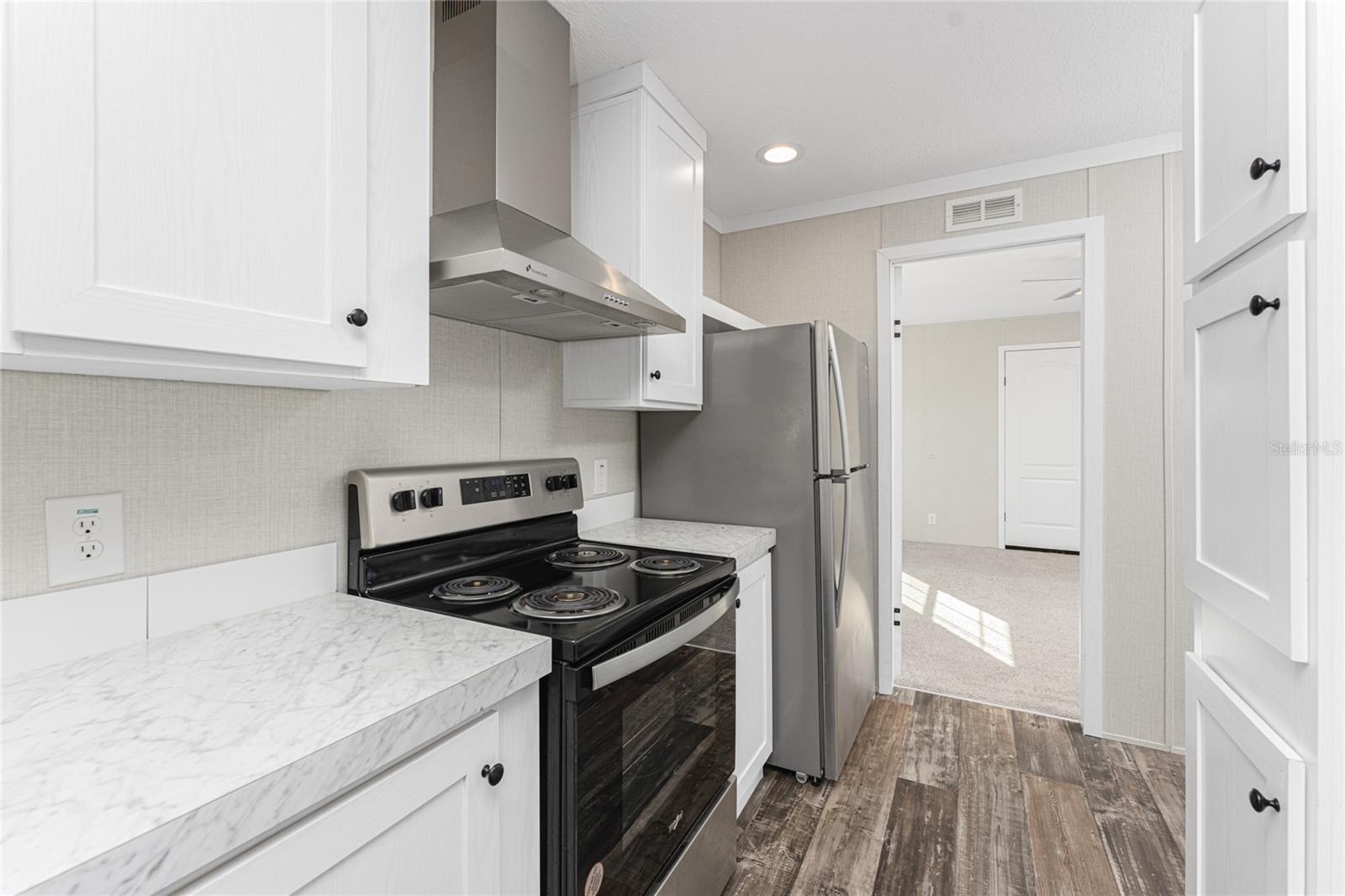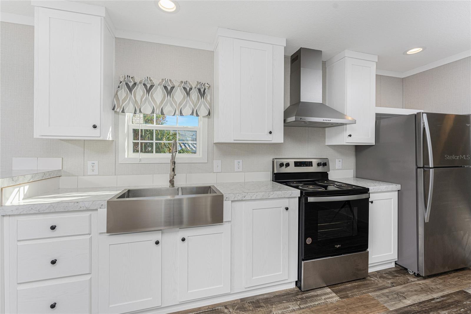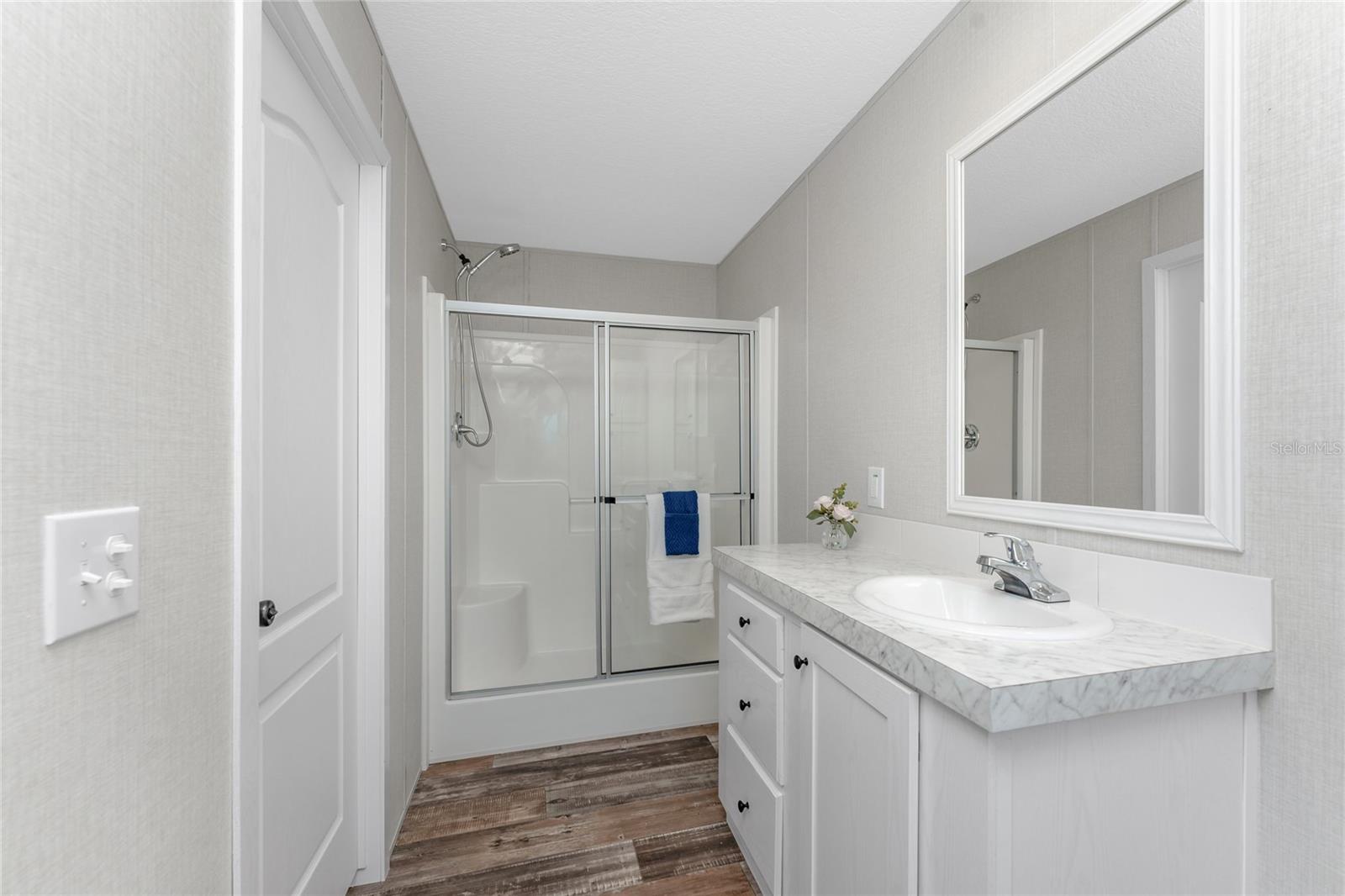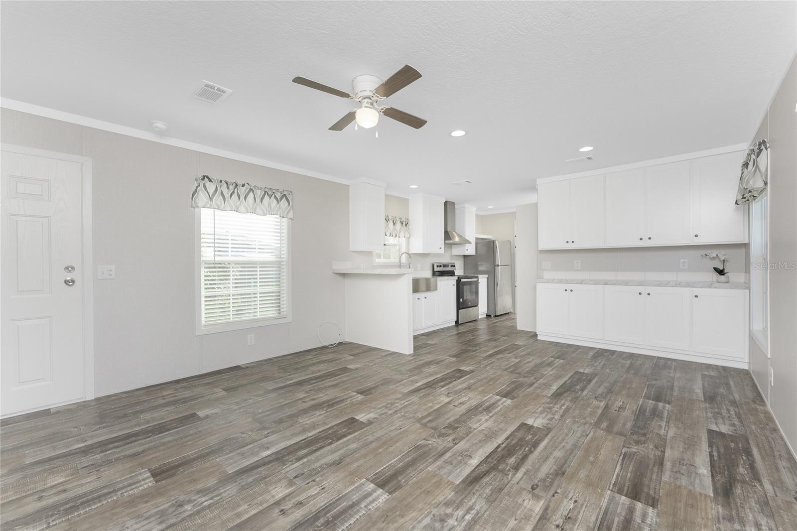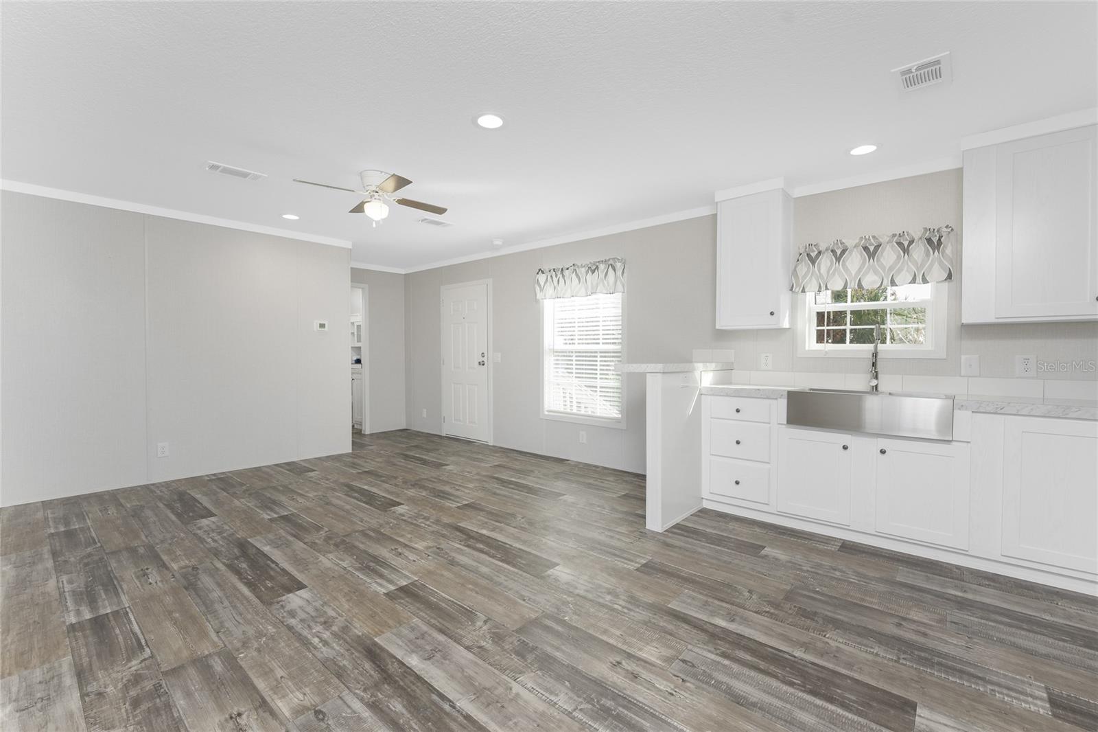 Direct Water Access to Lemon Bay and the Gulf of Mexico – A Boater’s Paradise! This 2023, 2-bedroom, 2-bathroom manufactured home offers saltwater canal frontage and is ideally situated close to the community center, where you can easily walk, bike, or use a golf cart to participate in the many social activities or games with friends and neighbors. Located in the desirable Mobile Gardens community, you’ll own your land, adding value to this waterfront retreat. Boating enthusiasts will love the quick Gulf access, making this property perfect for those seeking the ultimate Florida lifestyle. Inside, the home features wood laminate flooring in the main living areas and bathrooms, an open great room that connects to the kitchen and dining area, and large windows that allow for an abundance of natural light. The kitchen has white shaker-style cabinets, a breakfast bar, ample countertop space, and a stainless steel farmhouse sink, ideal for meal preparation and entertaining. An interior laundry room with shelving adds extra storage.The primary suite includes dual closets and a private bathroom with a step-in shower. Guests will enjoy a welcoming second bedroom with easy access to a full bathroom, featuring a shower/tub combination. Outside, you’ll find a detached storage shed, a patio overlooking the canal, and concrete steps leading to the dock area, the perfect spot to relax or enjoy evening cocktails by the water. Mobile Gardens offers an optional low-fee HOA membership providing access to amenities such as a recreation center, shuffleboard, social events, and two community boat ramps. Boat slips are available separately on a first-come, first-served basis for an additional fee. Located near beautiful Gulf beaches, shopping, dining, and live entertainment, this home is ideal as a seasonal retreat or investment opportunity. Don’t miss your chance to live the Florida boating lifestyle!