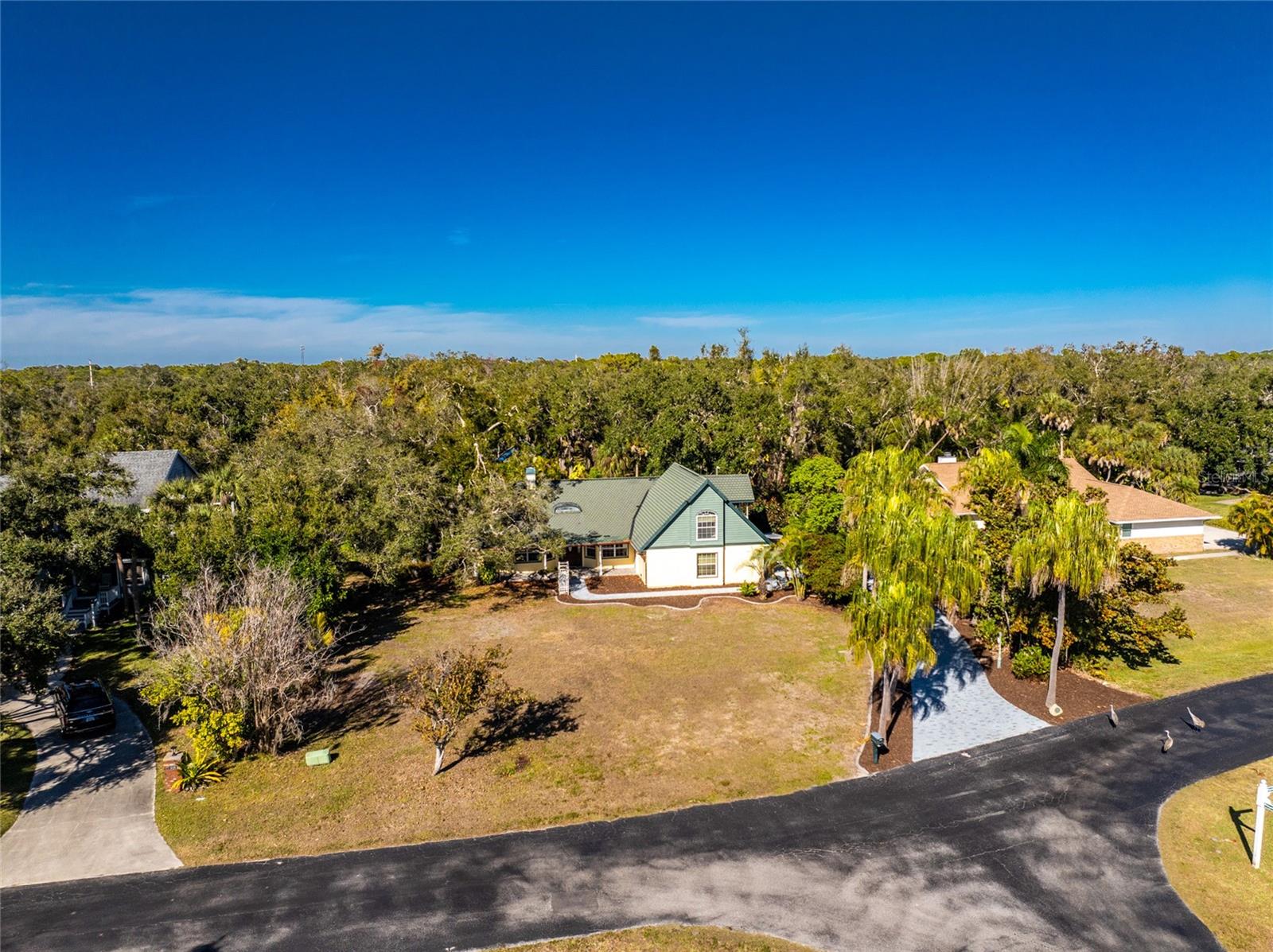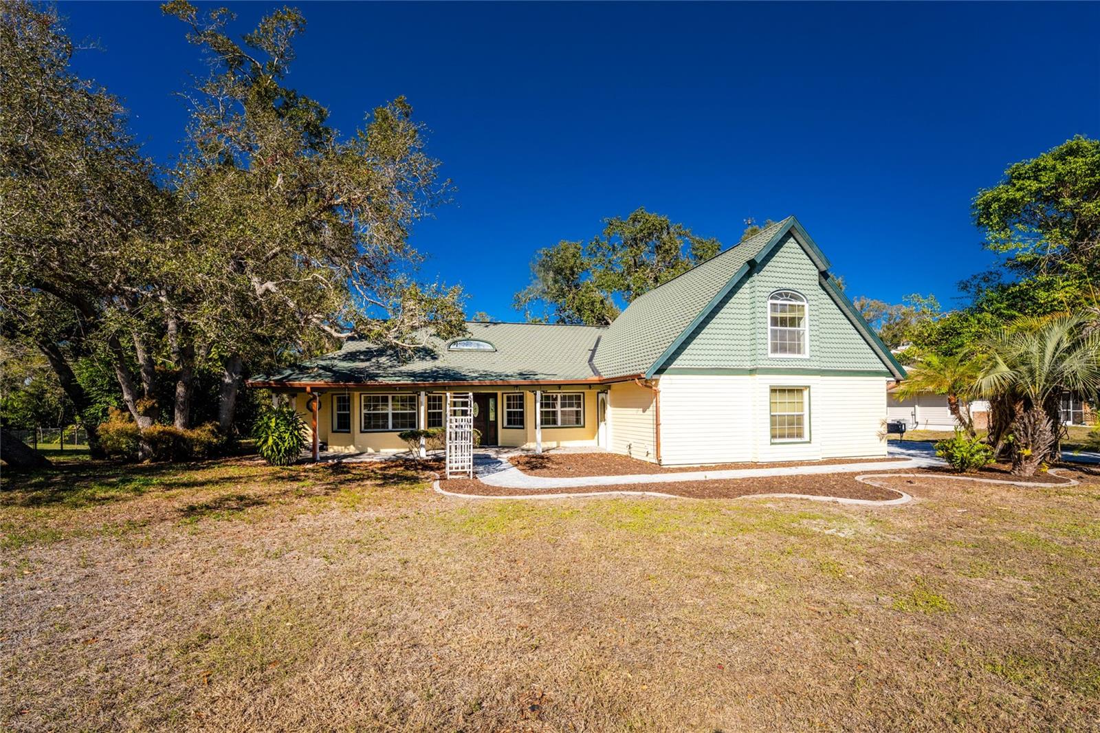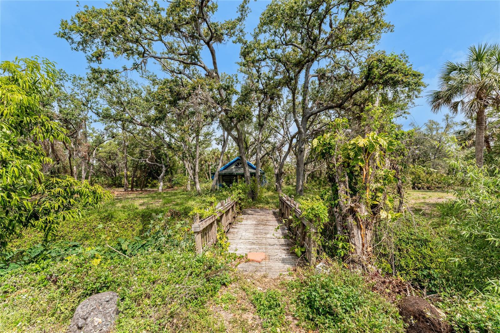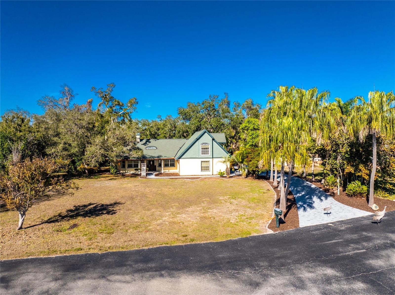TIRED OF THE SAME 'FLORIDA' LOOK? Want a home with character? Take a look at this CUSTOM BUILT ONE OWNER HOME in prestigious Whispering Pines subdivision, conveniently located in North Englewood, with easy access to Manasota Beach, Venice or Englewood! From the front porch (picture having your morning coffee out here, sitting in your rocking chair) you'll enter into the Great room featuring both a wood and gas fireplace, Brazilian Rosewood hardwood flooring, vaulted ceiling with tubular skylight and pocket sliding glass doors on to the lanai. The separate dining room also has hardwood flooring and a genuine TIN CEILING. An office/den/library is just off the main entry and has bamboo flooring, ceiling fan, and walk in closet - THIS COULD BE A 4TH BEDROOM! The kitchen has oak cabinetry and solid surface countertops, closet pantry and breakfast bar. Appliances include: Whirlpool dishwasher, Maytag cooktop plus built in oven, and GE French door refrigerator. The adjoining dinette area has tiled flooring and French doors opening onto the lanai. The primary bedroom has a 2' bumpout for extra floor space, tray ceilling and ceiling fan, hardwood flooring, two walk in closets and another set of French doors. The primary bathroom has a Roman walk in shower, linen closet and vanity w/cultured marble top. The other two guest bedrooms are on the opposite side of the house - the rear guest bedroom has wood laminate flooring, ceiling fan and wall closet. The Front guest bedroom also has wood laminate flooring, wall closet, ceiling fan and a your very own SAUNA! Guest bath features a combo jetted tub/shower, linen closet and tiled flooring. Nicely sized inside laundry has lots of extra cabinetry for storage and a built in utility tub. Take the circular stairs up to the 2nd floor to find all kinds of extra space - picture a media room, playroom, mancave, or whatever! Half bath is handily located here also, as is a wet bar! There's a "sweetheart" balcony off this area, for a great view! Two car garage w/divided stalls has automatic garage door openers, and built in shelving and workbench. Tankless water heater provides hot water instantly! In the rear, you'll find the lanai and caged atrium... this would be a wonderful place for a hot tub, or maybe an outside kitchen? There's a bridge over the meandering creek. offering plenty of natural foliage for all of the wildlife. Home is in an "X" flood zone, so your lender will not require you to have flood insurance. Access to the rear of the property is through a deeded easement off of Keyway Road. Roof is original and is a 50 year shingle. Dual AC systems. (compressors have been updated) If you are seeking a large unique home with some land and privacy, take a look at this one!