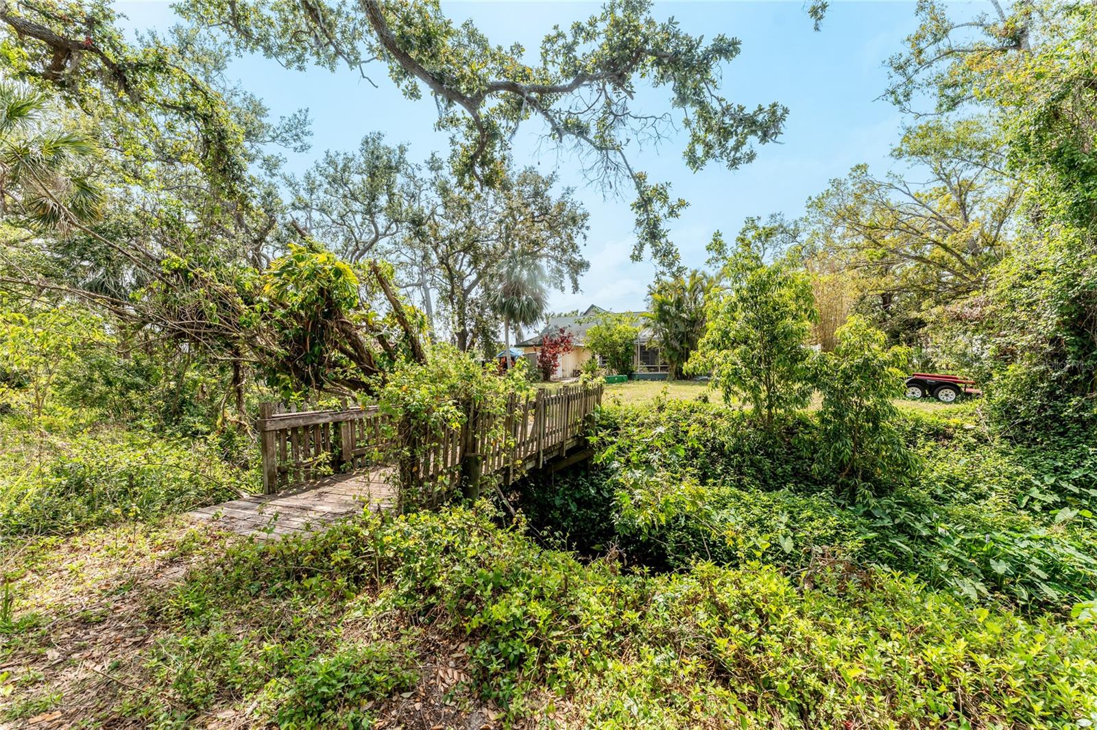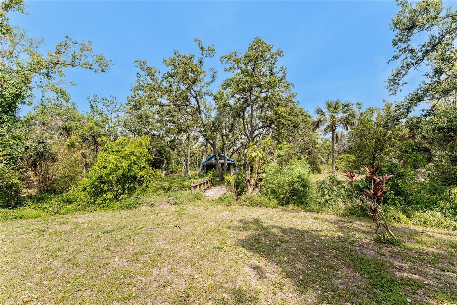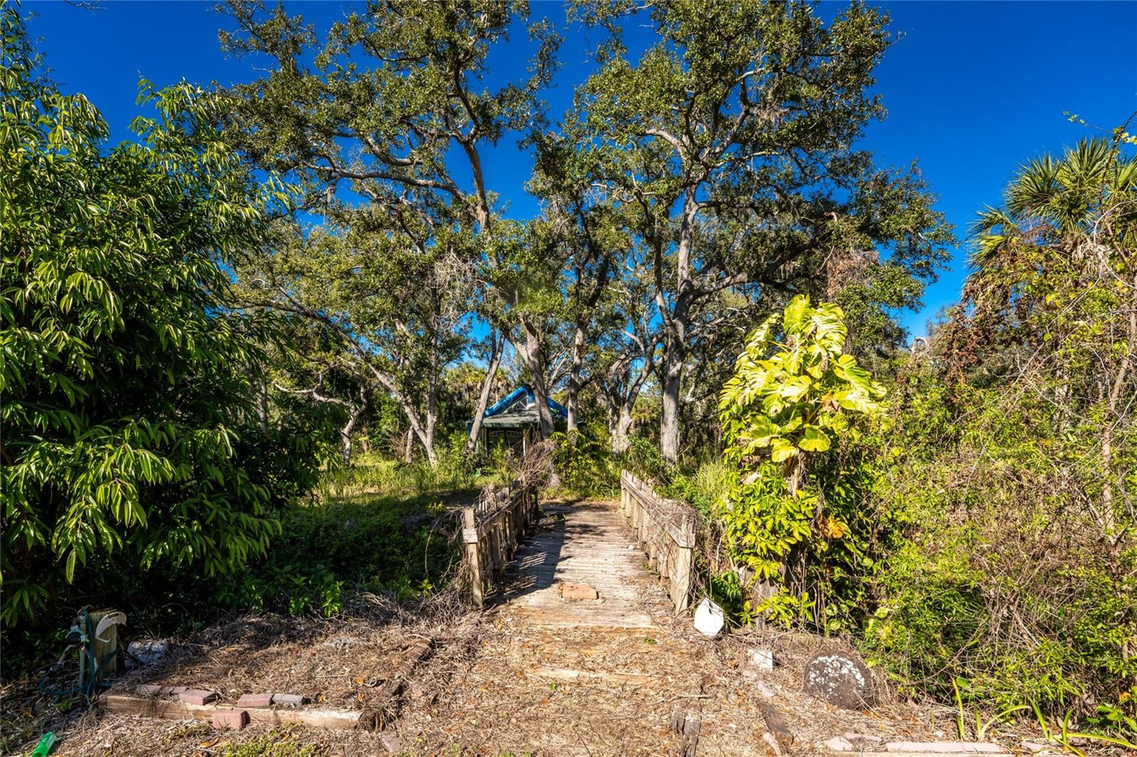 TIRED OF THE SAME 'FLORIDA' LOOK? Want a home with character? Take a look at this CUSTOM BUILT ONE OWNER HOME in prestigious Whispering Pines subdivision, conveniently located in North Englewood, with easy access to Manasota Beach, Venice or Englewood! From the front porch (picture having your morning coffee out here, sitting in your rocking chair) you'll enter into the Great room featuring both a wood and gas fireplace, Brazilian Rosewood hardwood flooring, vaulted ceiling with tubular skylight and pocket sliding glass doors on to the lanai. The separate dining room also has hardwood flooring and a genuine TIN CEILING. An office/den/library is just off the main entry and has bamboo flooring, ceiling fan, and walk in closet - THIS COULD BE A 4TH BEDROOM! The kitchen has oak cabinetry and solid surface countertops, closet pantry and breakfast bar. Appliances include: Whirlpool dishwasher, Maytag cooktop plus built in oven, and GE French door refrigerator. The adjoining dinette area has tiled flooring and French doors opening onto the lanai. The primary bedroom has a 2' bumpout for extra floor space, tray ceilling and ceiling fan, hardwood flooring, two walk in closets and another set of French doors. The primary bathroom has a Roman walk in shower, linen closet and vanity w/cultured marble top. The other two guest bedrooms are on the opposite side of the house - the rear guest bedroom has wood laminate flooring, ceiling fan and wall closet. The Front guest bedroom also has wood laminate flooring, wall closet, ceiling fan and a your very own SAUNA! Guest bath features a combo jetted tub/shower, linen closet and tiled flooring. Nicely sized inside laundry has lots of extra cabinetry for storage and a built in utility tub. Take the circular stairs up to the 2nd floor to find all kinds of extra space - picture a media room, playroom, mancave, or whatever! Half bath is handily located here also, as is a wet bar! There's a "sweetheart" balcony off this area, for a great view! Two car garage w/divided stalls has automatic garage door openers, and built in shelving and workbench. Tankless water heater provides hot water instantly! In the rear, you'll find the lanai and caged atrium... this would be a wonderful place for a hot tub, or maybe an outside kitchen? There's a bridge over the meandering creek. offering plenty of natural foliage for all of the wildlife. Home is in an "X" flood zone, so your lender will not require you to have flood insurance. Access to the rear of the property is through a deeded easement off of Keyway Road. Roof is original and is a 50 year shingle. Dual AC systems. (compressors have been updated) If you are seeking a large unique home with some land and privacy, take a look at this one!