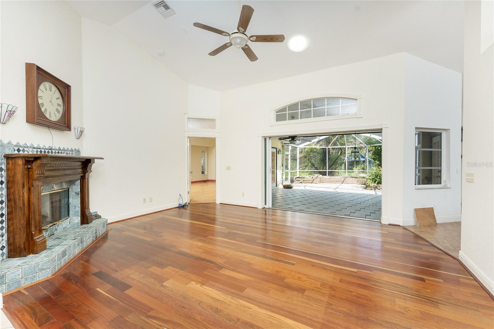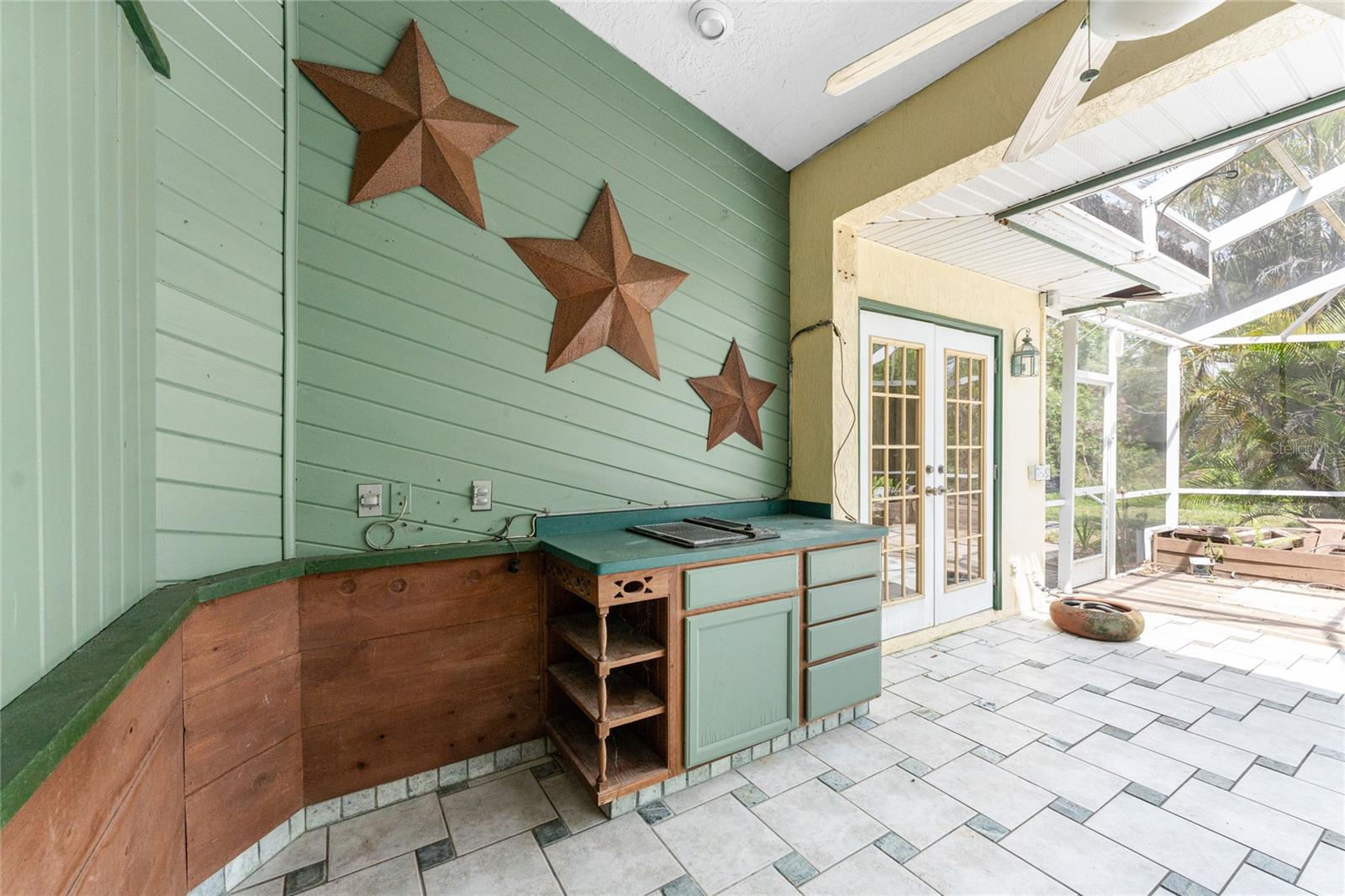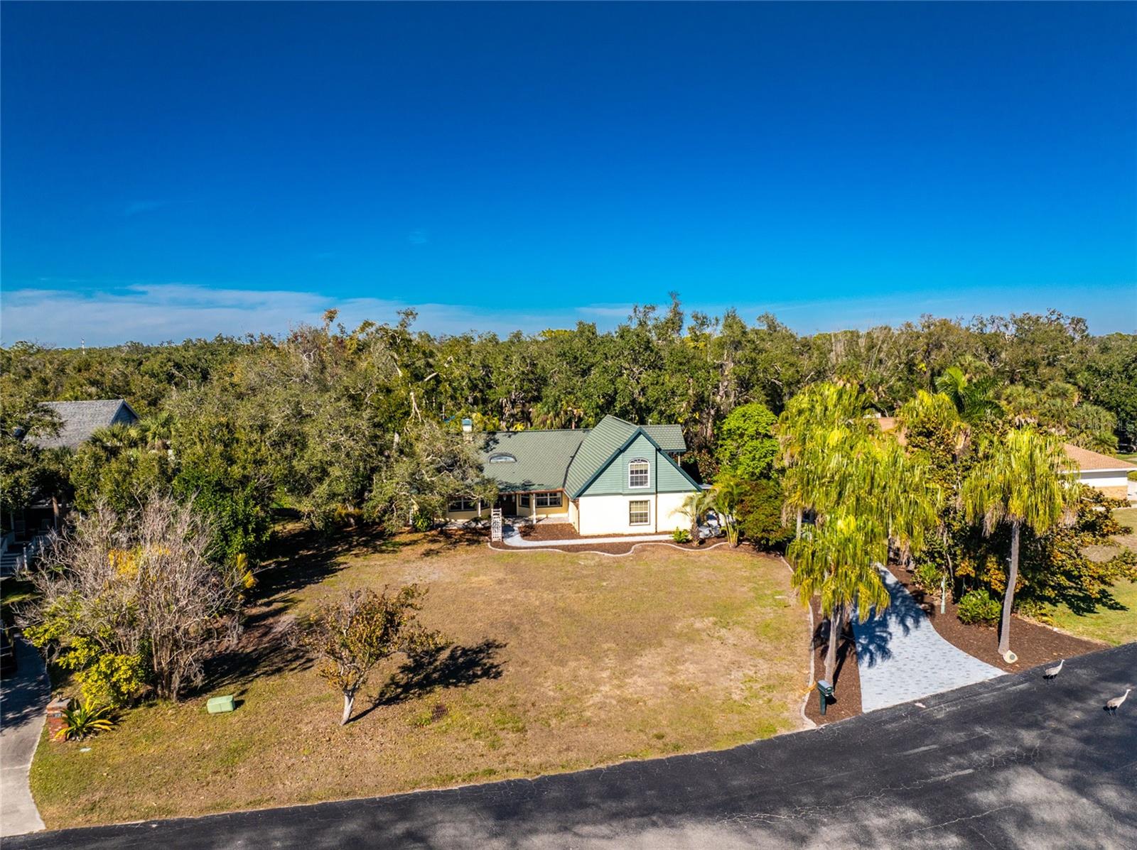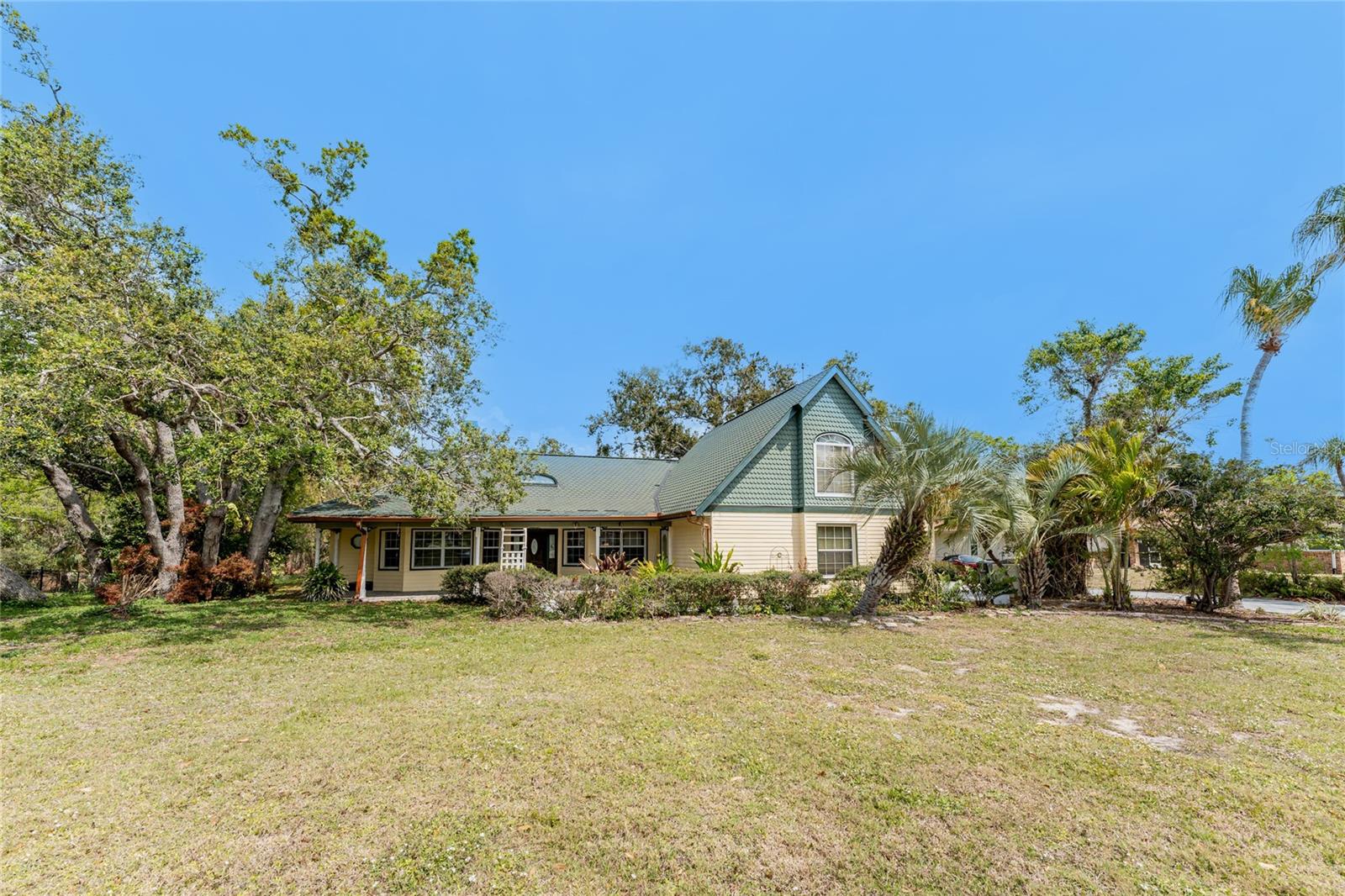 TIRED OF THE SAME 'FLORIDA' LOOK? Want a home with character? Take a look at this CUSTOM BUILT ONE OWNER HOME in prestigious Whispering Pines subdivision, conveniently located in North Englewood, with easy access to Manasota Beach, Venice or Englewood! From the front porch (picture having your morning coffee out here, sitting in your rocking chair) you'll enter into the Great room featuring both a wood and gas fireplace, Brazilian Rosewood hardwood flooring, vaulted ceiling with tubular skylight and pocket sliding glass doors on to the lanai. The separate dining room also has hardwood flooring and a genuine TIN CEILING. An office/den/library is just off the main entry and has bamboo flooring, ceiling fan, and walk in closet - THIS COULD BE A 4TH BEDROOM! The kitchen has oak cabinetry and solid surface countertops, closet pantry and breakfast bar. Appliances include: Whirlpool dishwasher, Maytag cooktop plus built in oven, and GE French door refrigerator. The adjoining dinette area has tiled flooring and French doors opening onto the lanai. The primary bedroom has a 2' bumpout for extra floor space, tray ceilling and ceiling fan, hardwood flooring, two walk in closets and another set of French doors. The primary bathroom has a Roman walk in shower, linen closet and vanity w/cultured marble top. The other two guest bedrooms are on the opposite side of the house - the rear guest bedroom has wood laminate flooring, ceiling fan and wall closet. The Front guest bedroom also has wood laminate flooring, wall closet, ceiling fan and a your very own SAUNA! Guest bath features a combo jetted tub/shower, linen closet and tiled flooring. Nicely sized inside laundry has lots of extra cabinetry for storage and a built in utility tub. Take the circular stairs up to the 2nd floor to find all kinds of extra space - picture a media room, playroom, mancave, or whatever! Half bath is handily located here also, as is a wet bar! There's a "sweetheart" balcony off this area, for a great view! Two car garage w/divided stalls has automatic garage door openers, and built in shelving and workbench. Tankless water heater provides hot water instantly! In the rear, you'll find the lanai and caged atrium... this would be a wonderful place for a hot tub, or maybe an outside kitchen? There's a bridge over the meandering creek. offering plenty of natural foliage for all of the wildlife. Home is in an "X" flood zone, so your lender will not require you to have flood insurance. Access to the rear of the property is through a deeded easement off of Keyway Road. Roof is original and is a 50 year shingle. Dual AC systems. (compressors have been updated) If you are seeking a large unique home with some land and privacy, take a look at this one!