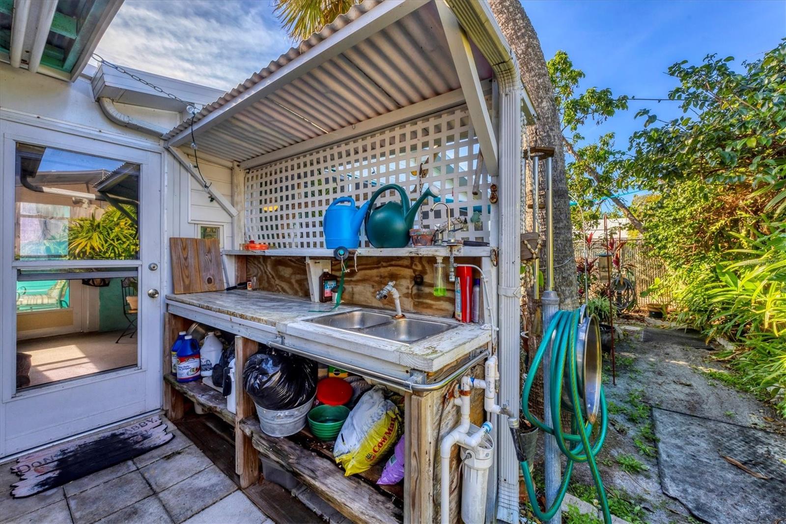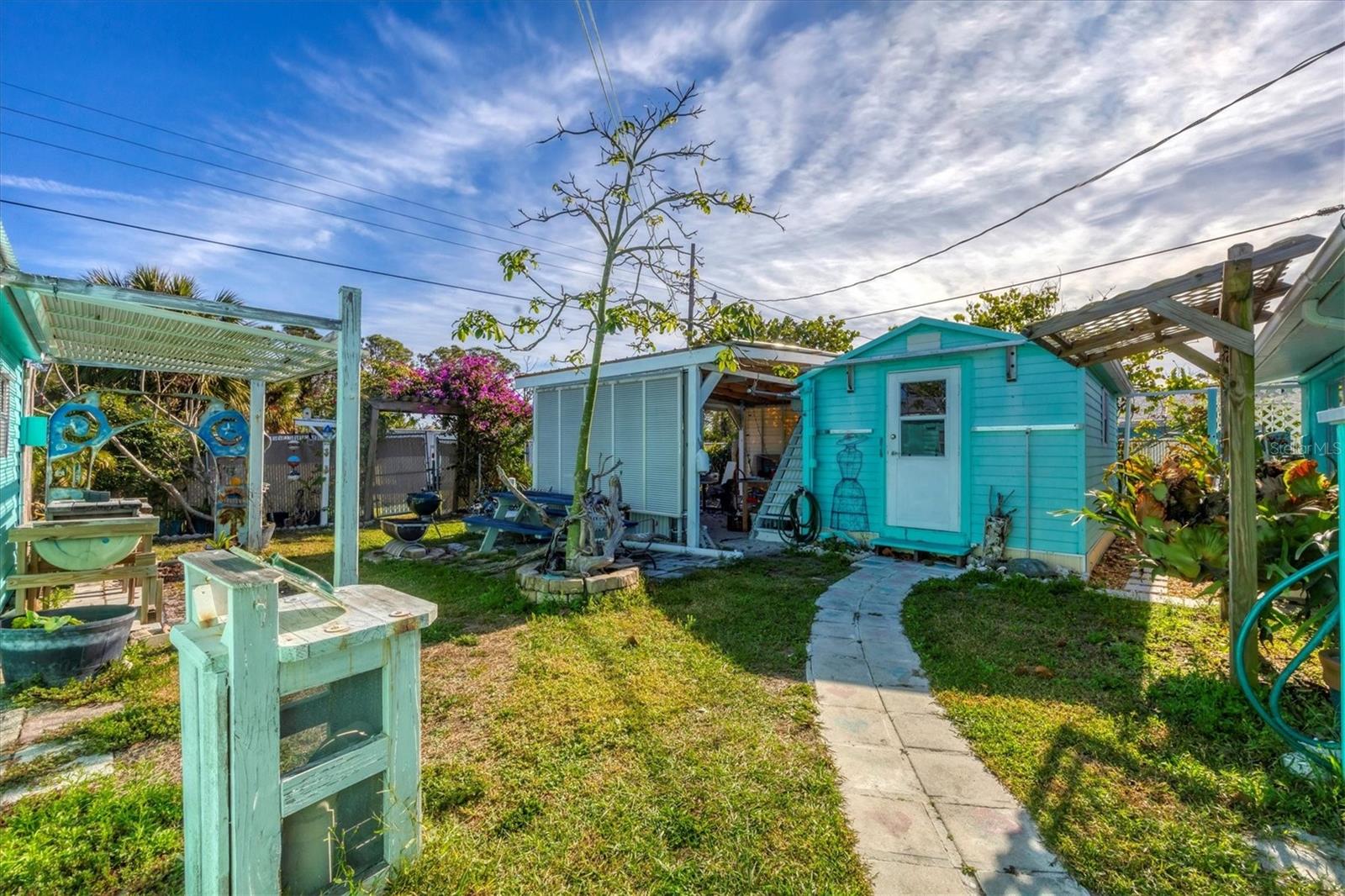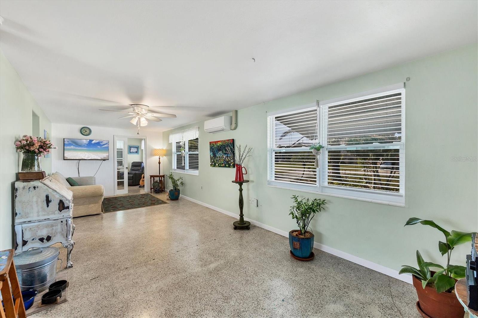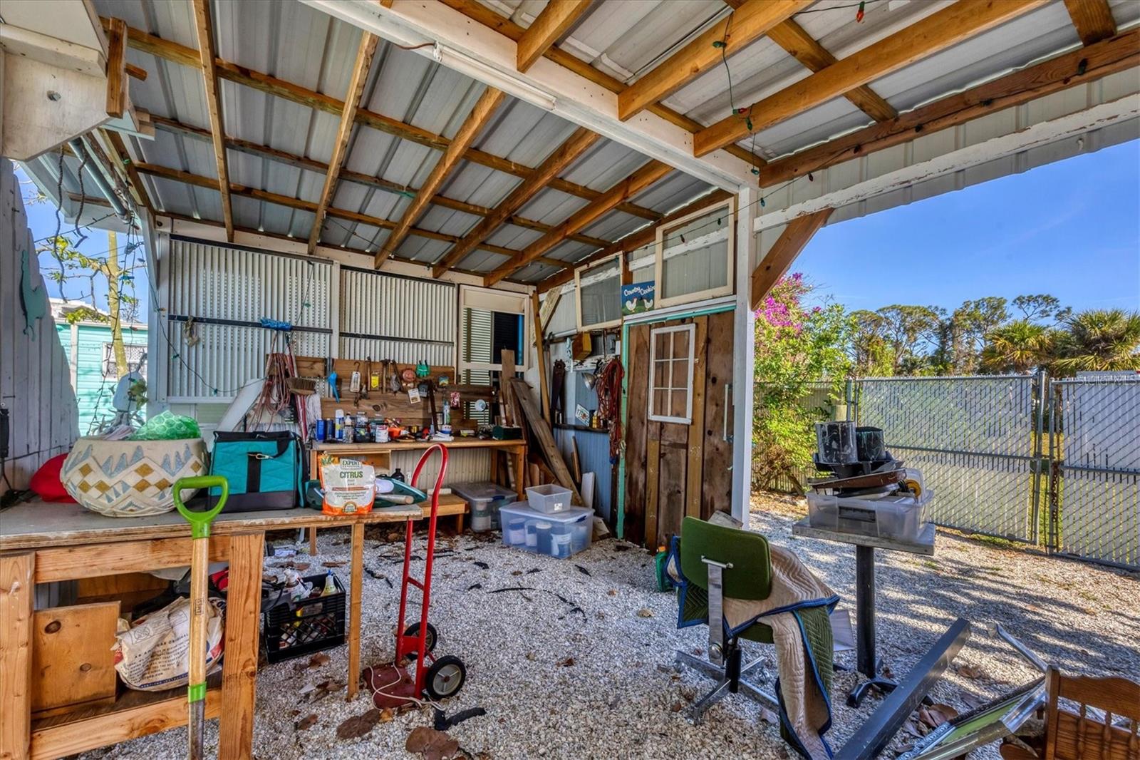 This charming 2-bedroom, 1-bath home with a mother-in-law suite is packed with unique features and modern updates. Inside, you’ll find terrazzo flooring throughout, an inside laundry room, and impact windows in the living room, dining room, and kitchen. The kitchen is a chef’s delight, boasting self-closing drawers and doors. The main bedroom features a stunning glass pocket door for added elegance. The property offers a 25x11 screened porch overlooking beautifully landscaped grounds, perfect for relaxing or entertaining. The entire property is fenced for privacy and includes a circular driveway for convenient access. The mother-in-law suite, with its private bath and shower, also has an exterior entrance, making it ideal for guests or as a rental opportunity. Additional highlights include two sheds—one of which could serve as a studio or office—two chicken coops, a garden sink, and a charming courtyard behind the home. Conveniently located near shopping, restaurants, and beaches, this one-of-a-kind property is a must-see! Don’t miss out on this incredible opportunity!