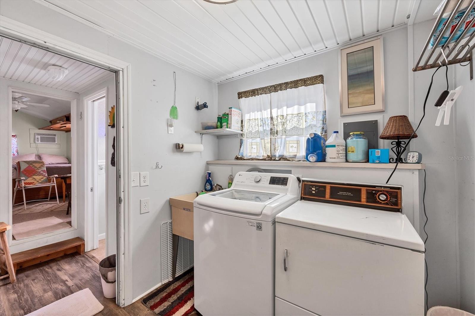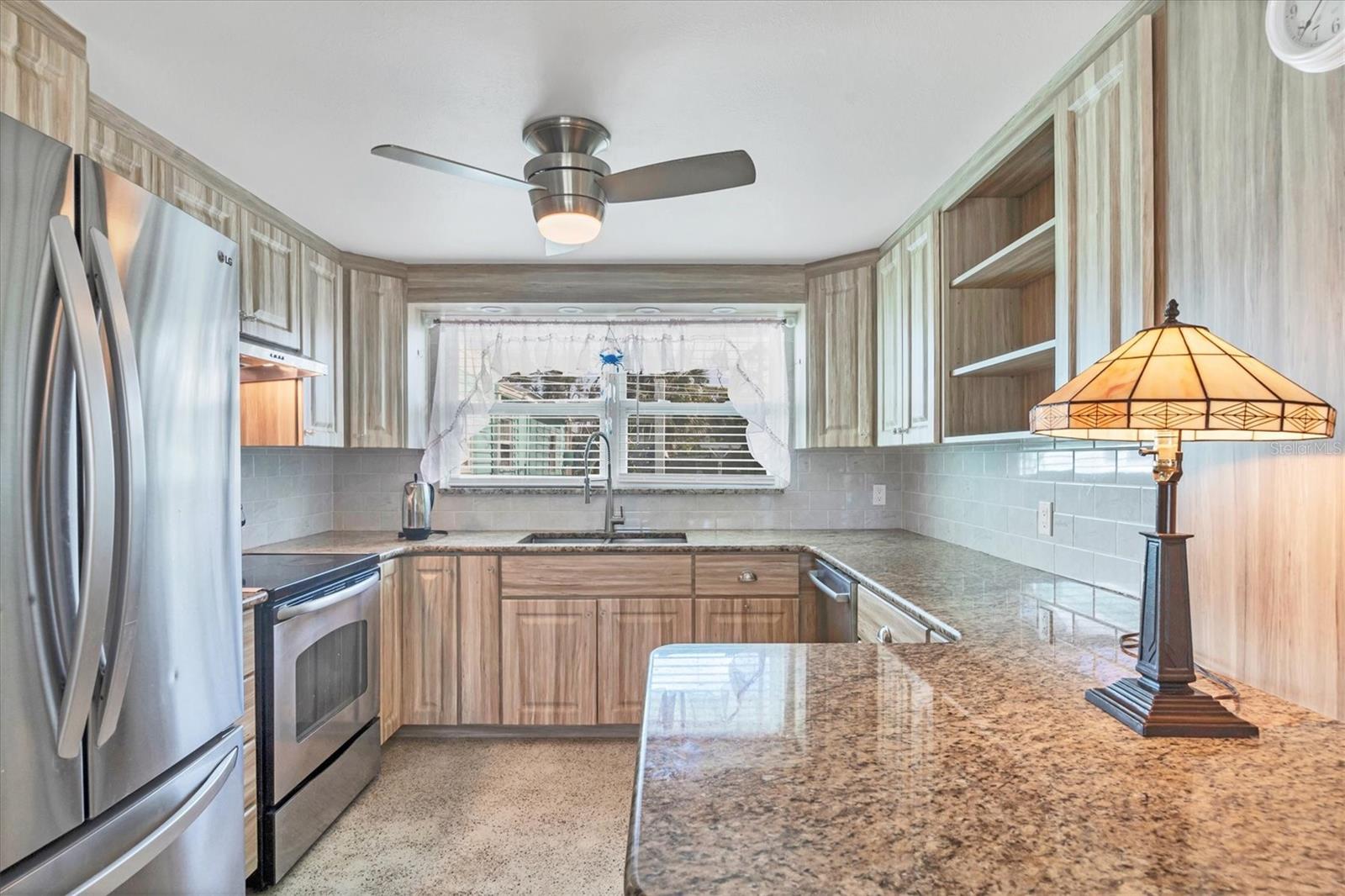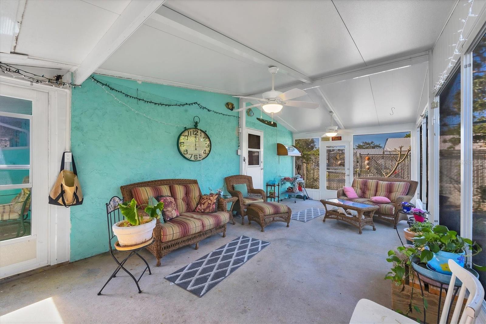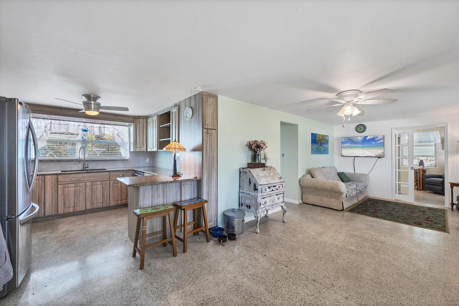 This charming 2-bedroom, 1-bath home with a mother-in-law suite is packed with unique features and modern updates. Inside, you’ll find terrazzo flooring throughout, an inside laundry room, and impact windows in the living room, dining room, and kitchen. The kitchen is a chef’s delight, boasting self-closing drawers and doors. The main bedroom features a stunning glass pocket door for added elegance. The property offers a 25x11 screened porch overlooking beautifully landscaped grounds, perfect for relaxing or entertaining. The entire property is fenced for privacy and includes a circular driveway for convenient access. The mother-in-law suite, with its private bath and shower, also has an exterior entrance, making it ideal for guests or as a rental opportunity. Additional highlights include two sheds—one of which could serve as a studio or office—two chicken coops, a garden sink, and a charming courtyard behind the home. Conveniently located near shopping, restaurants, and beaches, this one-of-a-kind property is a must-see! Don’t miss out on this incredible opportunity!