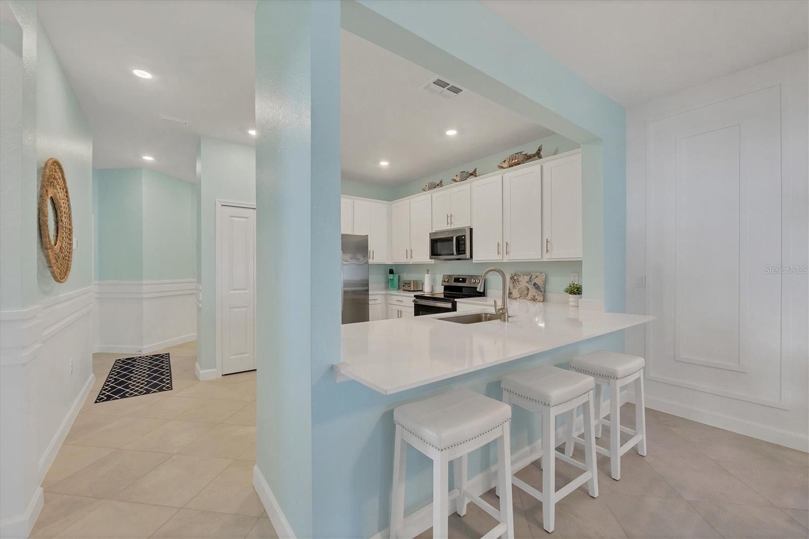 This is a tremendous opportunity to own a brand-new property that has been heavily upgraded and impeccably decorated, now being sold turnkey furnished for immediate enjoyment. There's another unique opportunity with this property; the ability to buy an entire building. The adjacent property 8752 Saint Kitts is also for sale and it's owned by the same Seller. A package price is available. Unlike developer properties, this home you can literally just bring your cloths and put your feet up day one! Turnkey means all the furniture, lamps, decor, plus window treatments, kitchenware, coffee maker, and linens. Located in the exciting new gated coastal community of Coco Bay, this home is just 5 miles from Englewood Beach and approximately 6 miles to the bridge leading to Boca Grande. The property is warm, bright, and inviting, with a single-story layout that includes 3 bedrooms, 2 bathrooms, and its own 2-car garage. The home also features a paver patio, providing the privacy and feel of a house. Peace of mind comes with the excellent elevation in an X flood zone, impact-resistant windows and sliders, and all the structural features required for coastal Florida living. Every detail has been meticulously considered in the home's decoration and furnishings, ensuring it is ready to be enjoyed immediately. The custom wall trim carpentry work, along with soft but vibrant new wall colors, enhances the overall style and ambiance of the home. The large chef's kitchen is a standout, offering Quartz countertops, shaker-style cabinets, and stainless-steel appliances, perfect for preparing meals and entertaining. The spacious master suite is a serene retreat with a walk-in closet, dual sinks, a generous tiled shower, and an abundance of natural light. The open floor plan, combined with tile flooring throughout, creates a seamless flow from room to room. With landscape maintenance included and community amenities on the way, ownership here is easy and stress-free. Estimated to be completed in early spring 2025, these amenities will include an impressive Amenity Center, swimming pool, fitness center, pickleball courts, bocce ball courts, and a playground area, perfect for all ages to enjoy.