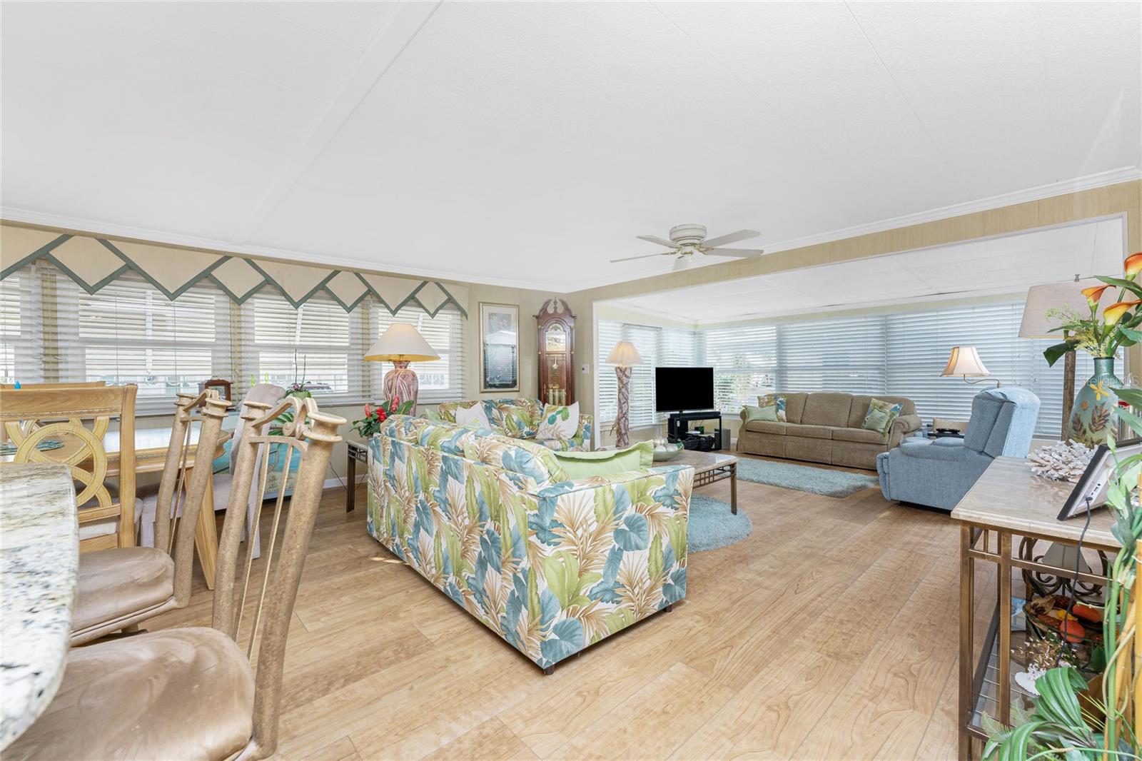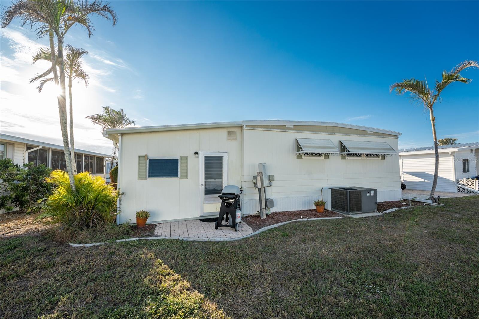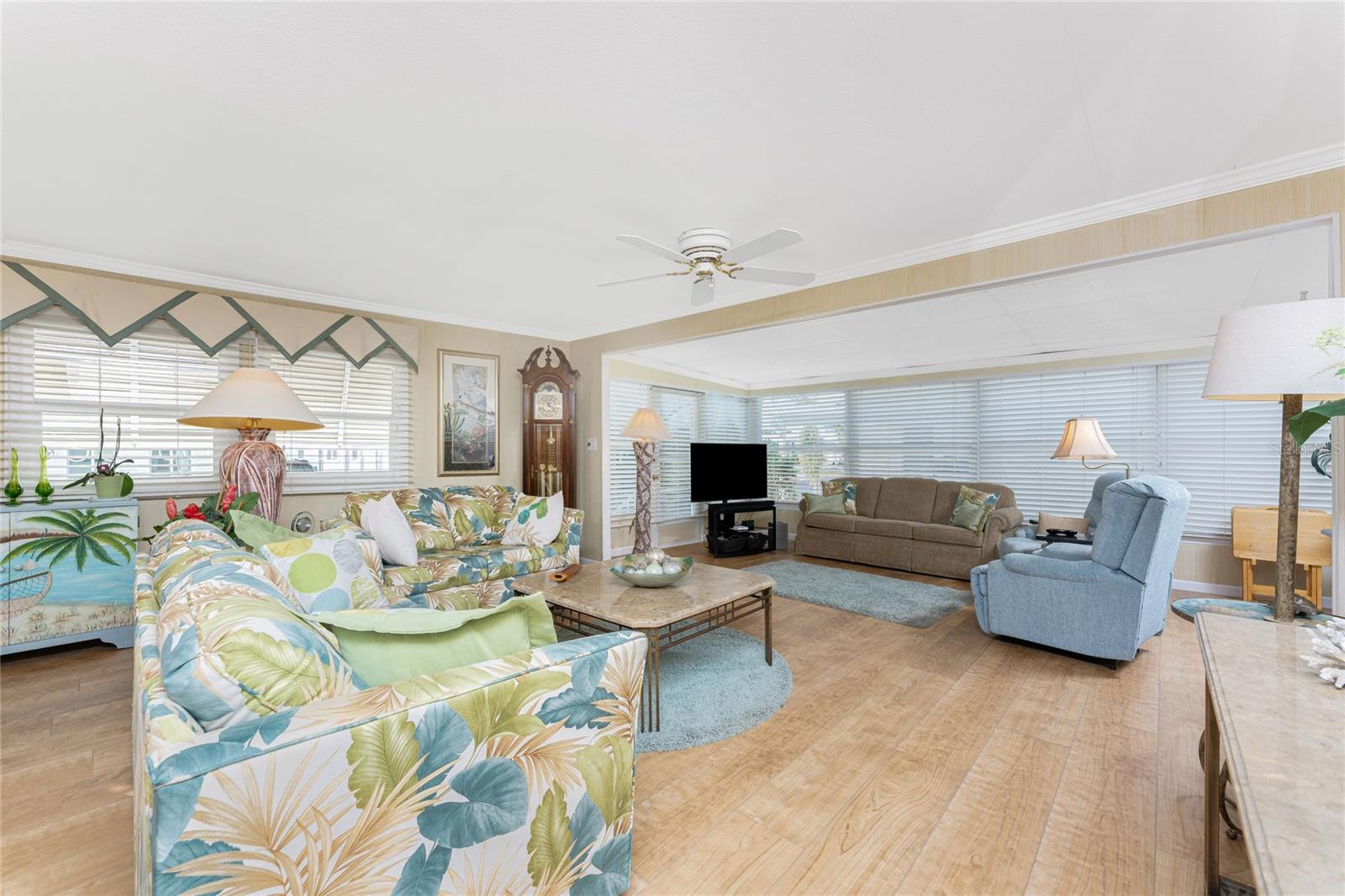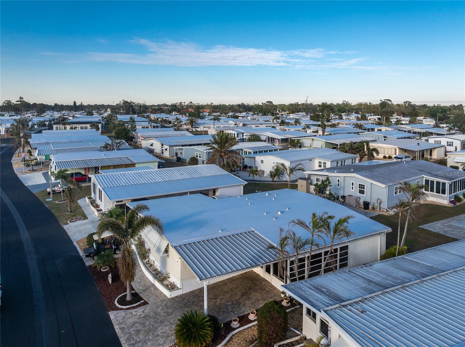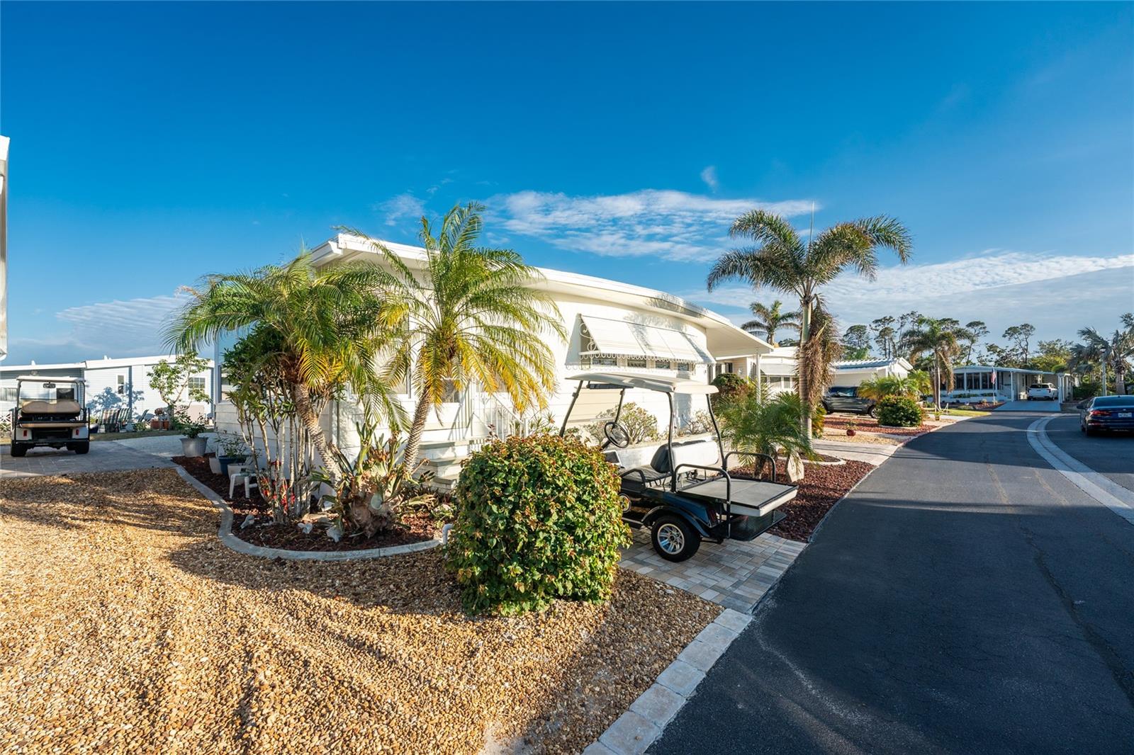 FULLY UPDATED, furnished STUNNING home located in the desirable gated community of Alameda Isles, a 55+ community of manufactured homes offering boating access, clubhouse, pool, spa, fitness center, pickleball & tennis courts, library, card room and more! This beautiful home was TOTALLY RENOVATED featuring fresh landscaping rock and curbing, a new roof (2022), newer windows, hot water heater (2024), concrete brick paver driveway, exterior and interior paint, laminate plank flooring, new stainless steel kitchen appliances (2024) & granite countertops, both bathrooms have newer raised toilets, vanities with wood cabinets, and SO much MORE! This SPACIOUS home offers a rare open concept floor plan with a large living area, roomy kitchen with top of the line new appliances, wood cabinets, a double pantry, glass tile backsplash and custom crown molding that continues throughout majority of the home, and a dining area that will easily accommodate all your family and friends. The living room features update laminate plank tile flooring that flows throughout most of the home and into the sitting area/Florida room that has 8 windows and a door that leads outside allowing the natural lighting to accent the main living areas. The primary suite offers dual closets with an updated ensuite bath with dual sinks, a tasteful granite countertop vanity with wood cabinets, linen closet and tiled shower. Your guests will enjoy the second bedroom that has a sizeable closet and is conveniently located directly across the hall from the second bathroom where you'll find tasteful finishes and accented walls with beadboard and crown molding. The covered lanai area off the carport offers the perfect space to entertain friends or relax with your favorite book and cup of coffee. You will not find another home that has ALL of these updates (AND MORE) and features. Don't miss this opportunity to call this amazing home yours.