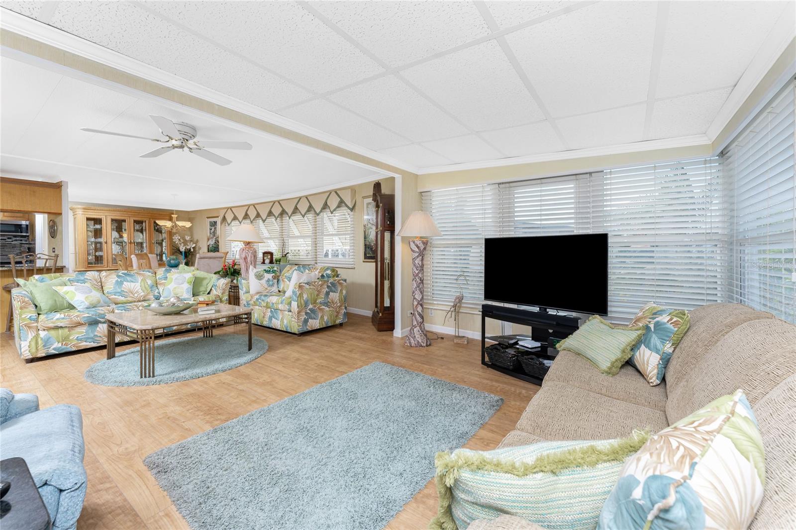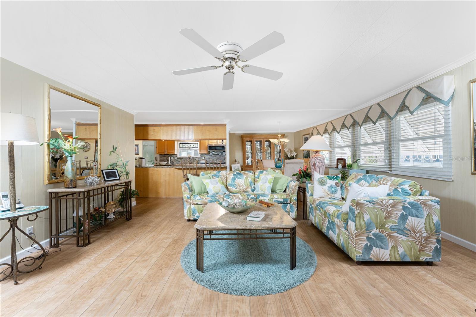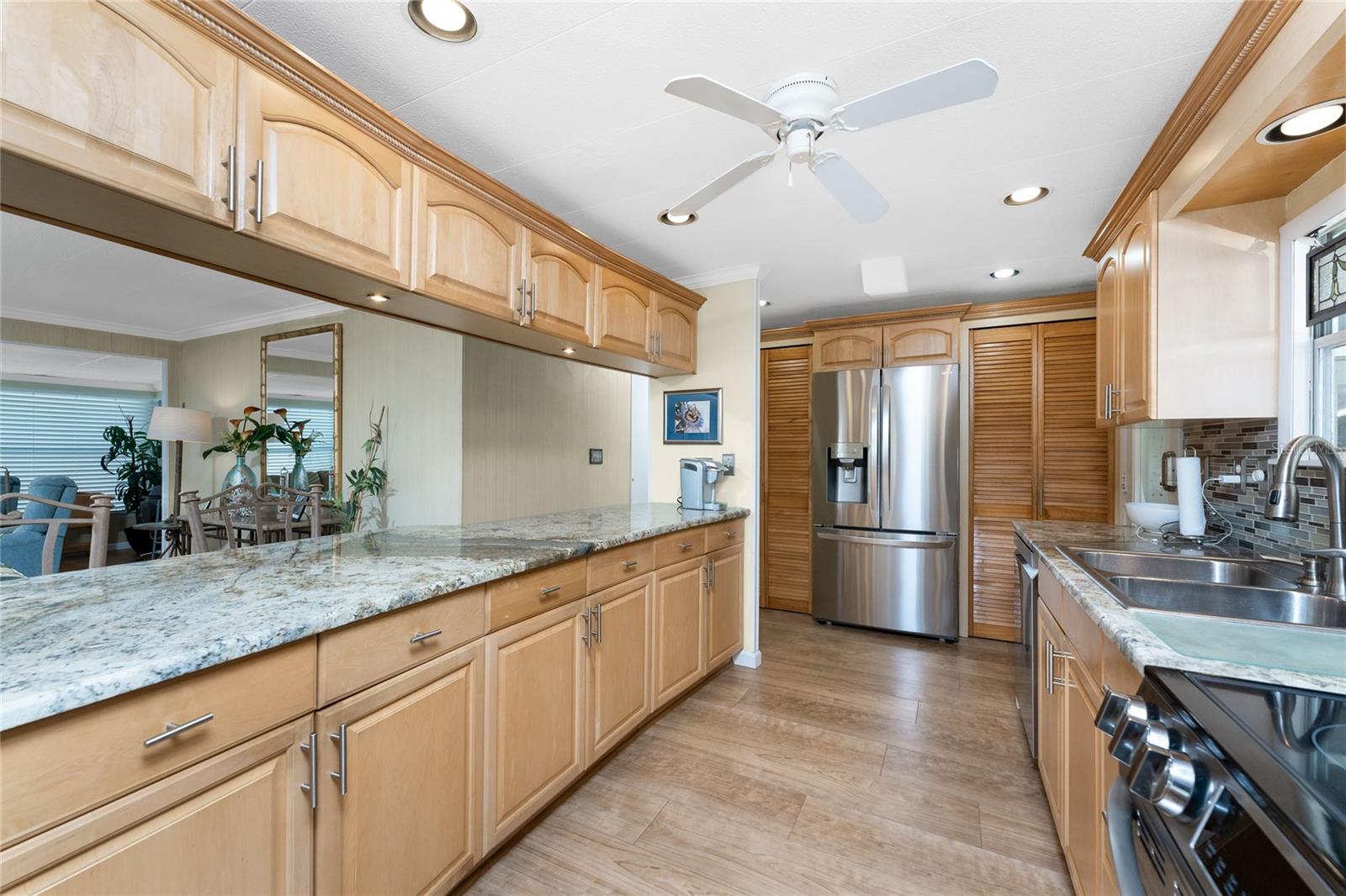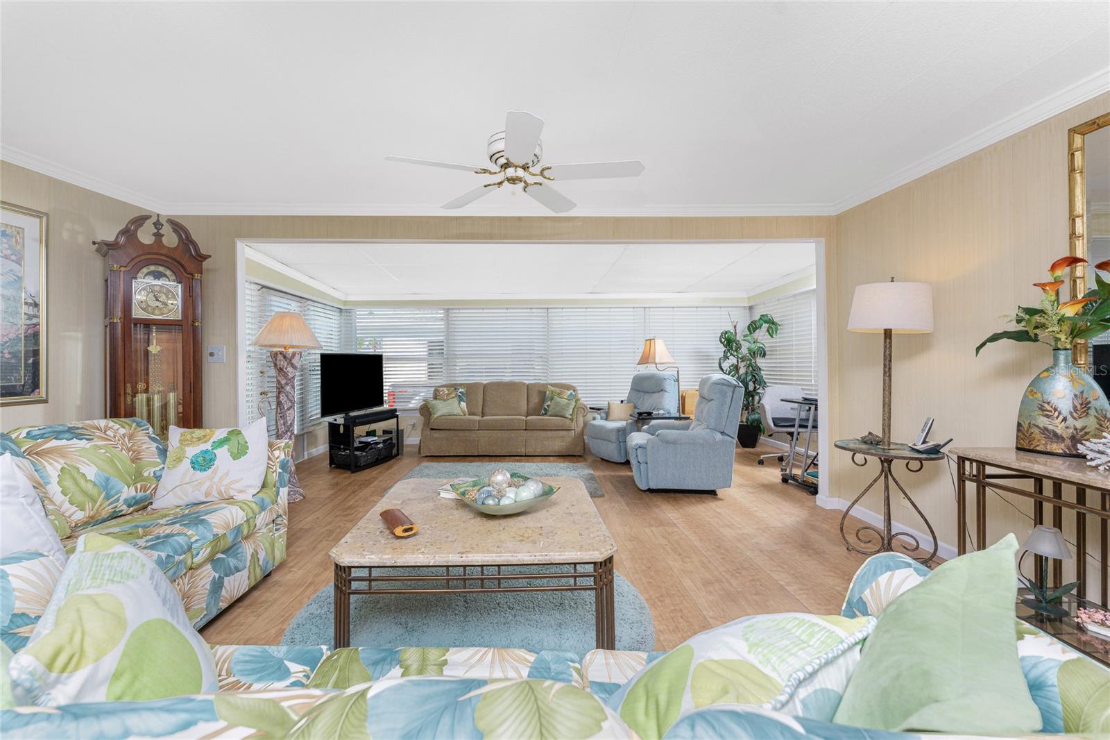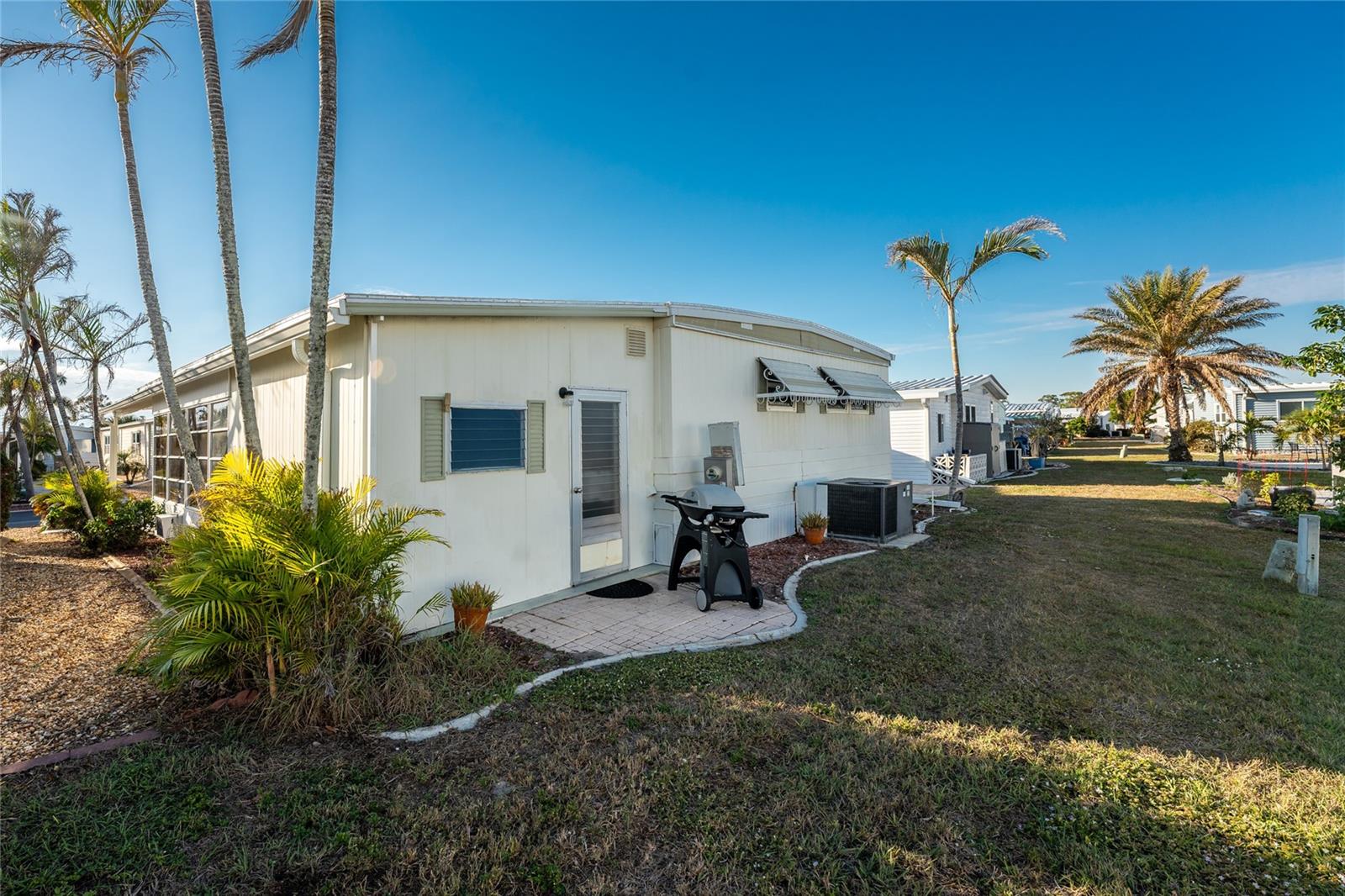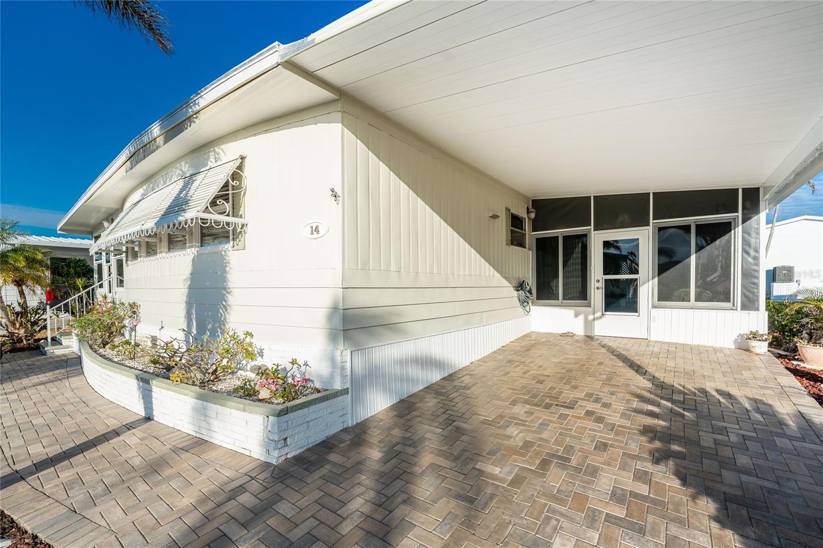 FULLY UPDATED, furnished STUNNING home located in the desirable gated community of Alameda Isles, a 55+ community of manufactured homes offering boating access, clubhouse, pool, spa, fitness center, pickleball & tennis courts, library, card room and more! This beautiful home was TOTALLY RENOVATED featuring fresh landscaping rock and curbing, a new roof (2022), newer windows, hot water heater (2024), concrete brick paver driveway, exterior and interior paint, laminate plank flooring, new stainless steel kitchen appliances (2024) & granite countertops, both bathrooms have newer raised toilets, vanities with wood cabinets, and SO much MORE! This SPACIOUS home offers a rare open concept floor plan with a large living area, roomy kitchen with top of the line new appliances, wood cabinets, a double pantry, glass tile backsplash and custom crown molding that continues throughout majority of the home, and a dining area that will easily accommodate all your family and friends. The living room features update laminate plank tile flooring that flows throughout most of the home and into the sitting area/Florida room that has 8 windows and a door that leads outside allowing the natural lighting to accent the main living areas. The primary suite offers dual closets with an updated ensuite bath with dual sinks, a tasteful granite countertop vanity with wood cabinets, linen closet and tiled shower. Your guests will enjoy the second bedroom that has a sizeable closet and is conveniently located directly across the hall from the second bathroom where you'll find tasteful finishes and accented walls with beadboard and crown molding. The covered lanai area off the carport offers the perfect space to entertain friends or relax with your favorite book and cup of coffee. You will not find another home that has ALL of these updates (AND MORE) and features. Don't miss this opportunity to call this amazing home yours.