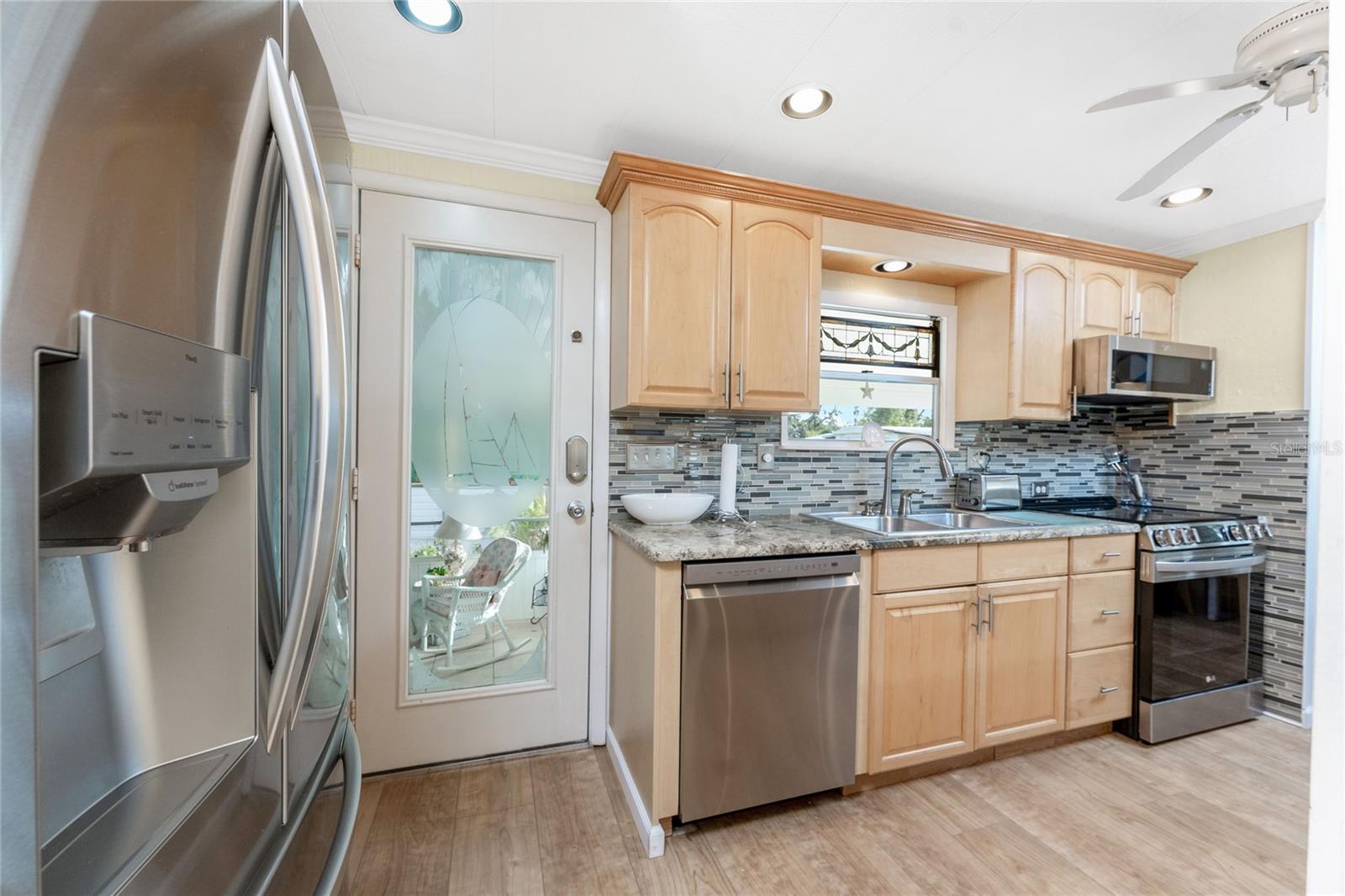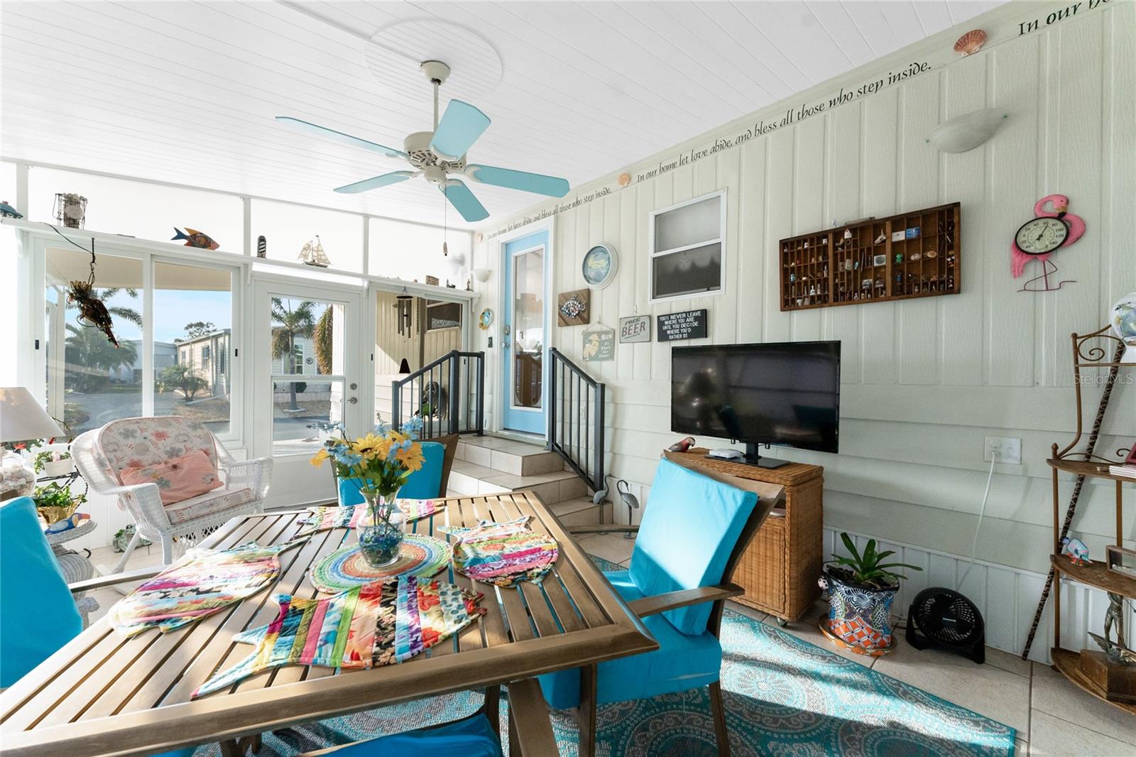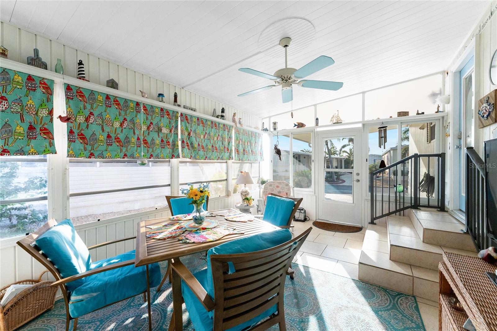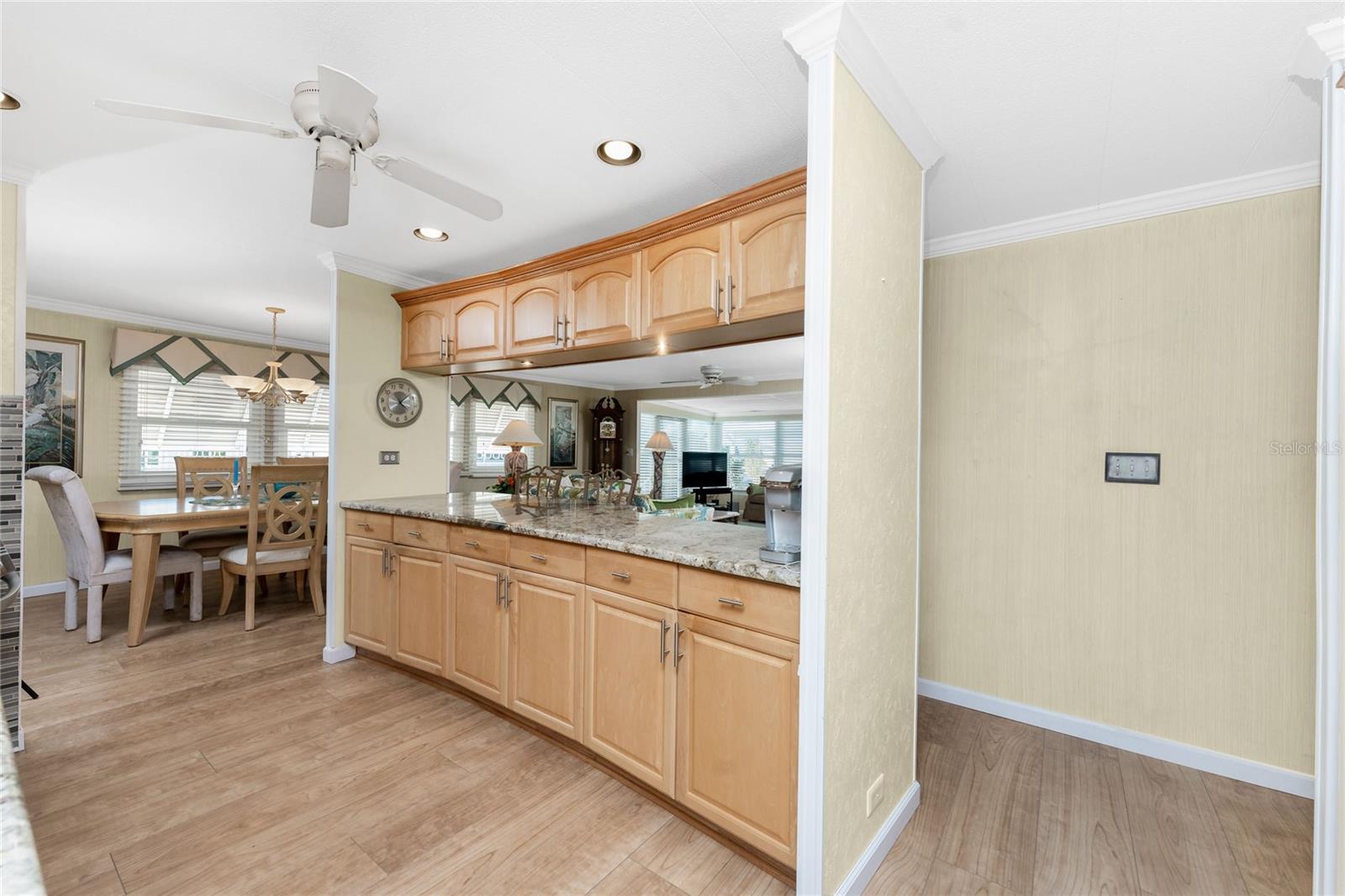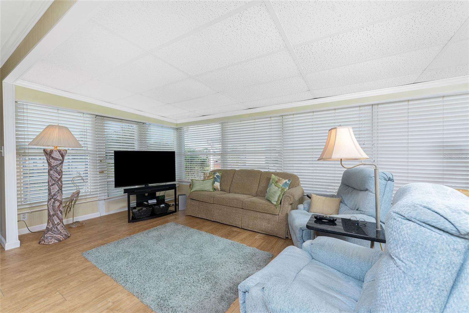 FULLY UPDATED, furnished STUNNING home located in the desirable gated community of Alameda Isles, a 55+ community of manufactured homes offering boating access, clubhouse, pool, spa, fitness center, pickleball & tennis courts, library, card room and more! This beautiful home was TOTALLY RENOVATED featuring fresh landscaping rock and curbing, a new roof (2022), newer windows, hot water heater (2024), concrete brick paver driveway, exterior and interior paint, laminate plank flooring, new stainless steel kitchen appliances (2024) & granite countertops, both bathrooms have newer raised toilets, vanities with wood cabinets, and SO much MORE! This SPACIOUS home offers a rare open concept floor plan with a large living area, roomy kitchen with top of the line new appliances, wood cabinets, a double pantry, glass tile backsplash and custom crown molding that continues throughout majority of the home, and a dining area that will easily accommodate all your family and friends. The living room features update laminate plank tile flooring that flows throughout most of the home and into the sitting area/Florida room that has 8 windows and a door that leads outside allowing the natural lighting to accent the main living areas. The primary suite offers dual closets with an updated ensuite bath with dual sinks, a tasteful granite countertop vanity with wood cabinets, linen closet and tiled shower. Your guests will enjoy the second bedroom that has a sizeable closet and is conveniently located directly across the hall from the second bathroom where you'll find tasteful finishes and accented walls with beadboard and crown molding. The covered lanai area off the carport offers the perfect space to entertain friends or relax with your favorite book and cup of coffee. You will not find another home that has ALL of these updates (AND MORE) and features. Don't miss this opportunity to call this amazing home yours.