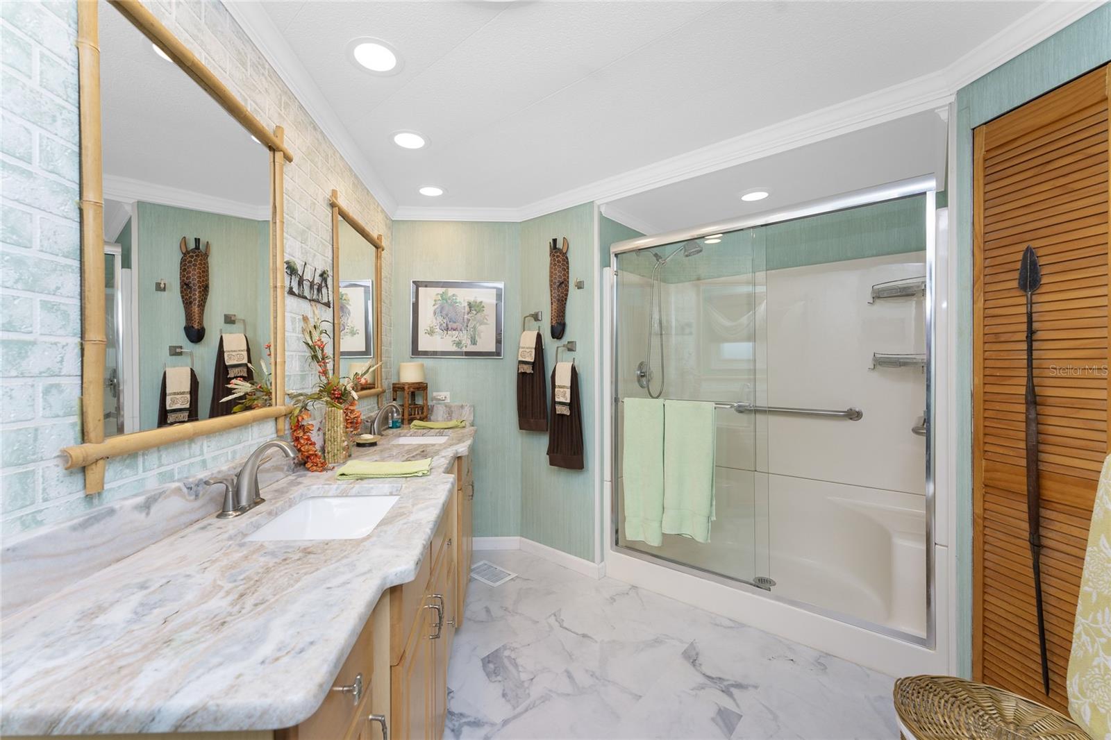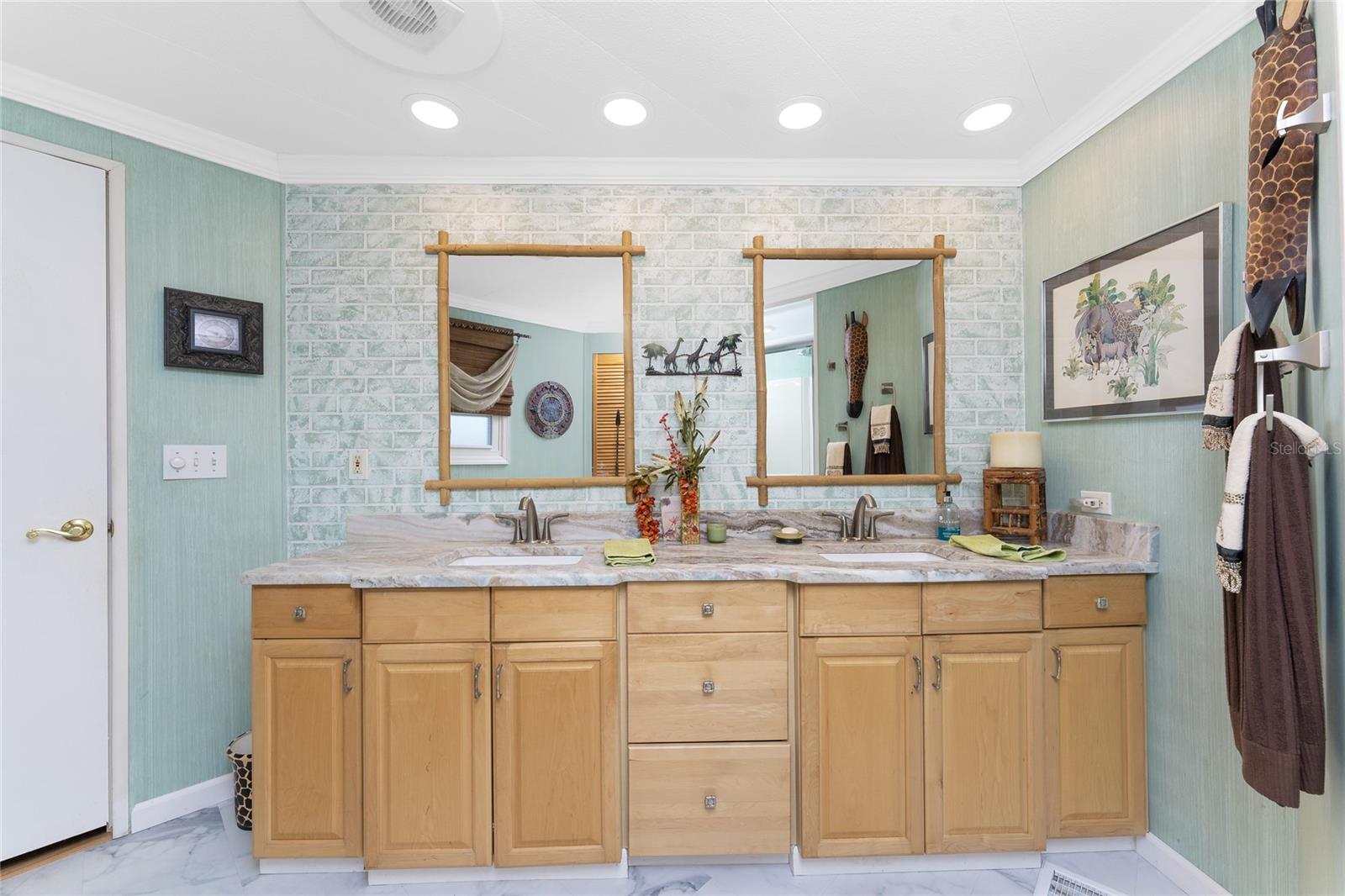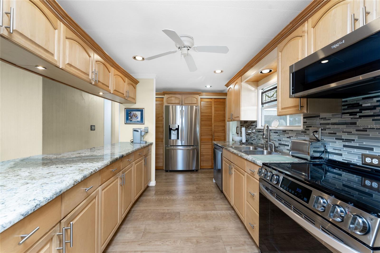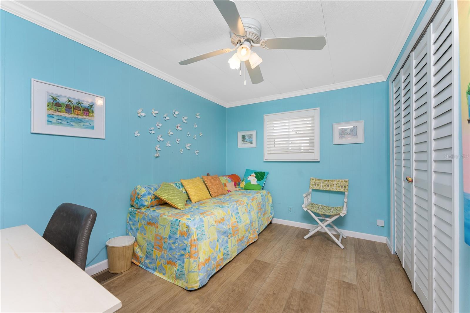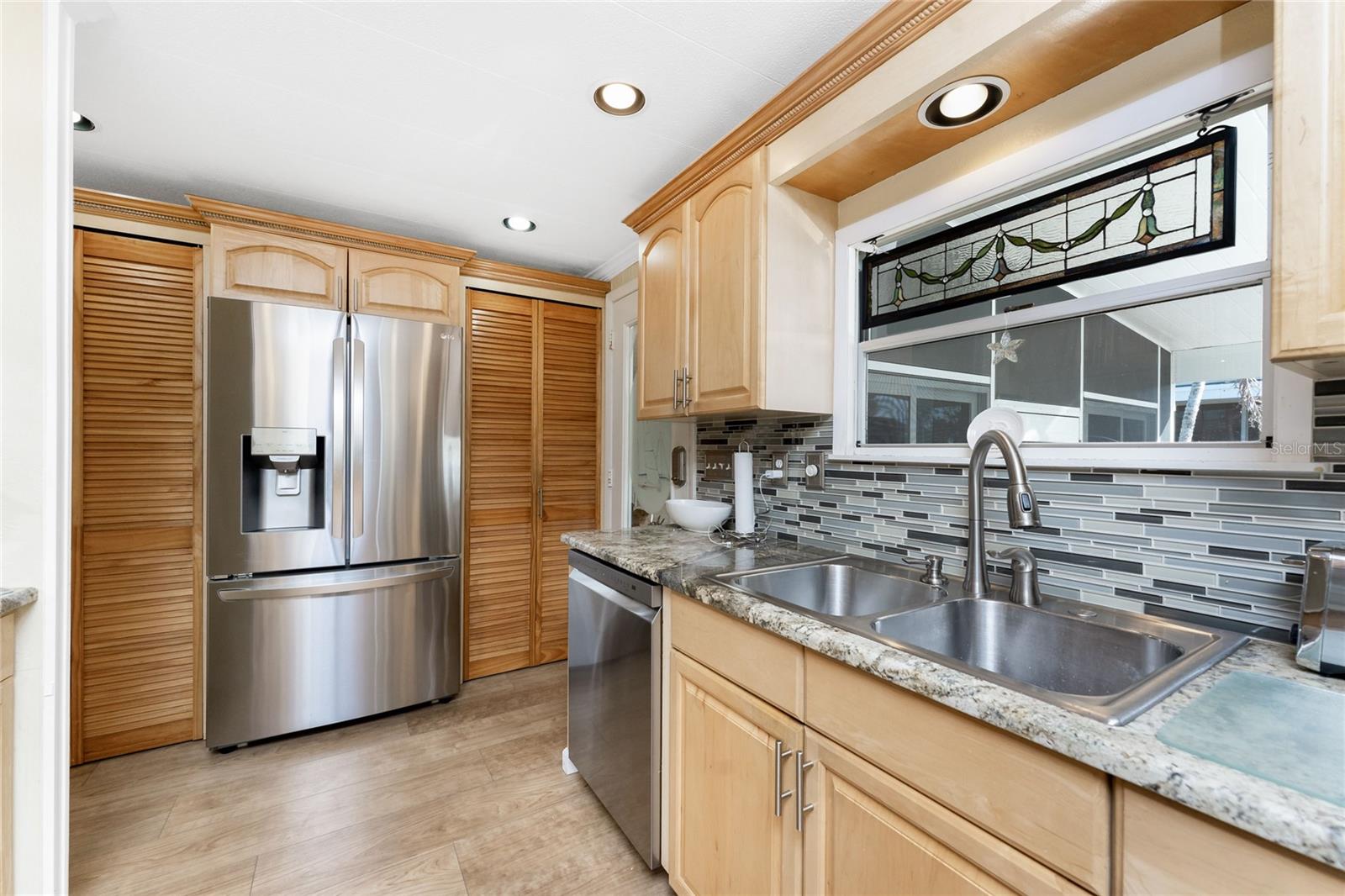 FULLY UPDATED, furnished STUNNING home located in the desirable gated community of Alameda Isles, a 55+ community of manufactured homes offering boating access, clubhouse, pool, spa, fitness center, pickleball & tennis courts, library, card room and more! This beautiful home was TOTALLY RENOVATED featuring fresh landscaping rock and curbing, a new roof (2022), newer windows, hot water heater (2024), concrete brick paver driveway, exterior and interior paint, laminate plank flooring, new stainless steel kitchen appliances (2024) & granite countertops, both bathrooms have newer raised toilets, vanities with wood cabinets, and SO much MORE! This SPACIOUS home offers a rare open concept floor plan with a large living area, roomy kitchen with top of the line new appliances, wood cabinets, a double pantry, glass tile backsplash and custom crown molding that continues throughout majority of the home, and a dining area that will easily accommodate all your family and friends. The living room features update laminate plank tile flooring that flows throughout most of the home and into the sitting area/Florida room that has 8 windows and a door that leads outside allowing the natural lighting to accent the main living areas. The primary suite offers dual closets with an updated ensuite bath with dual sinks, a tasteful granite countertop vanity with wood cabinets, linen closet and tiled shower. Your guests will enjoy the second bedroom that has a sizeable closet and is conveniently located directly across the hall from the second bathroom where you'll find tasteful finishes and accented walls with beadboard and crown molding. The covered lanai area off the carport offers the perfect space to entertain friends or relax with your favorite book and cup of coffee. You will not find another home that has ALL of these updates (AND MORE) and features. Don't miss this opportunity to call this amazing home yours.