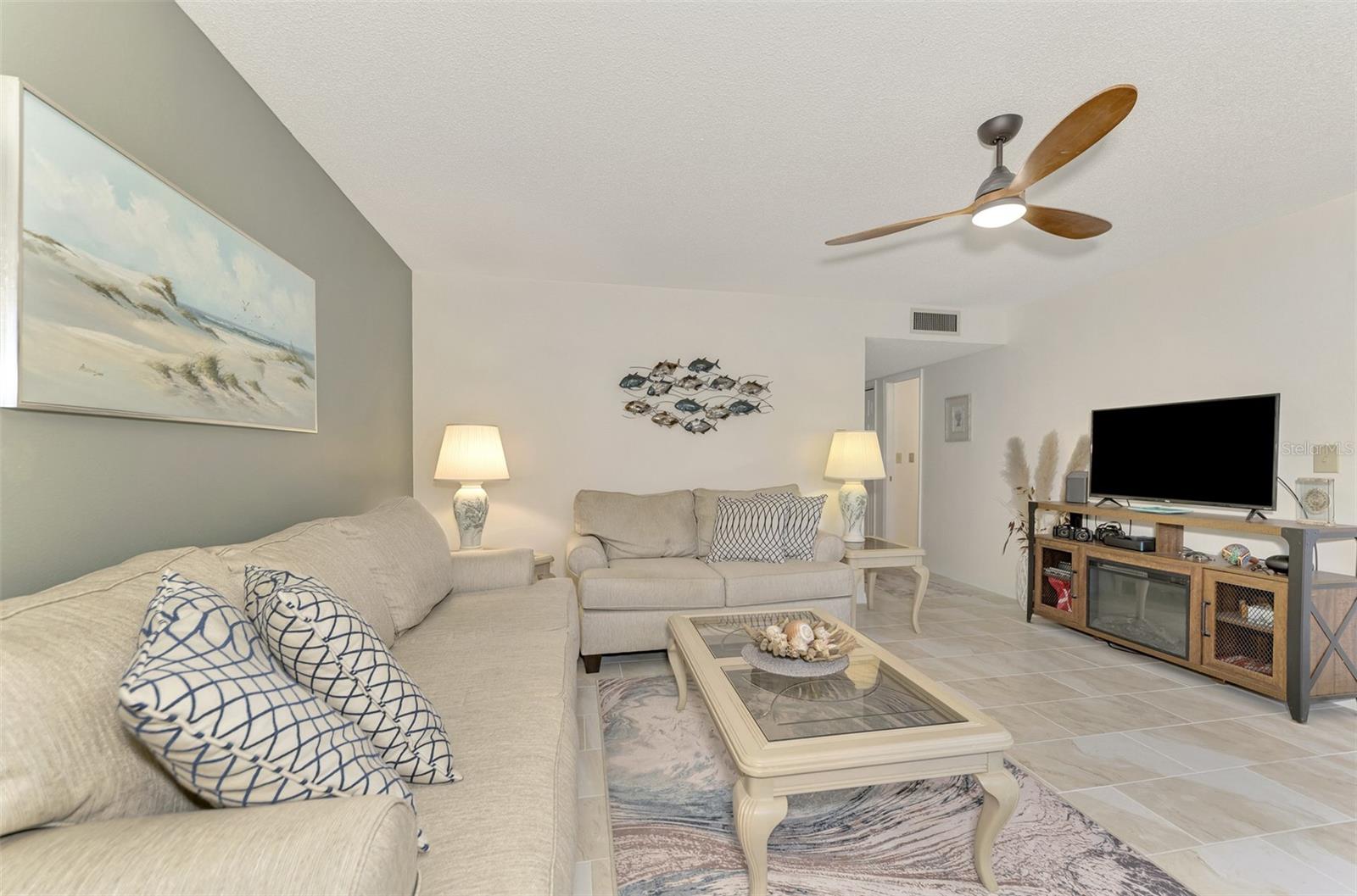 You have found your Winter Getaway! Forget about shoveling snow, scraping ice and bundling up. Escape to sunny southwest Florida! Quails Run is an over 55 condo community located in Englewood, Florida. This first floor, natural light filled end unit condo features two bedrooms, ensuite primary bath, full second bath and screened in Florida Room overlooking a pond and fountain. NEW tile floors flow throughout, with an open concept living and dining room, new water heater, new kitchen appliances, new vanities in the bathrooms, new interior doors and freshly painted throughout. Each unit has designated parking spots steps away from the front door. LOW HOA fees include water/sewer, trash pickup, exterior building maintenance, exterior pest control, basic cable, WiFi in the Clubhouse and Heated Community Pool. Average monthly Electric bill of $63. Walking or biking distance to historic Downtown Englewood where you can shop at the local farmers market, enjoy outdoor concerts and live music or tempt your taste buds with an array of exquisite cuisines . Enjoy days soaking up the sun at one of four Englewood Gulf Beaches or venture out to Boca Grande and Siesta Key. Play a round of golf at one of many local courses or spend the day boating on the aqua blue gulf waters. Make Englewood your home today!