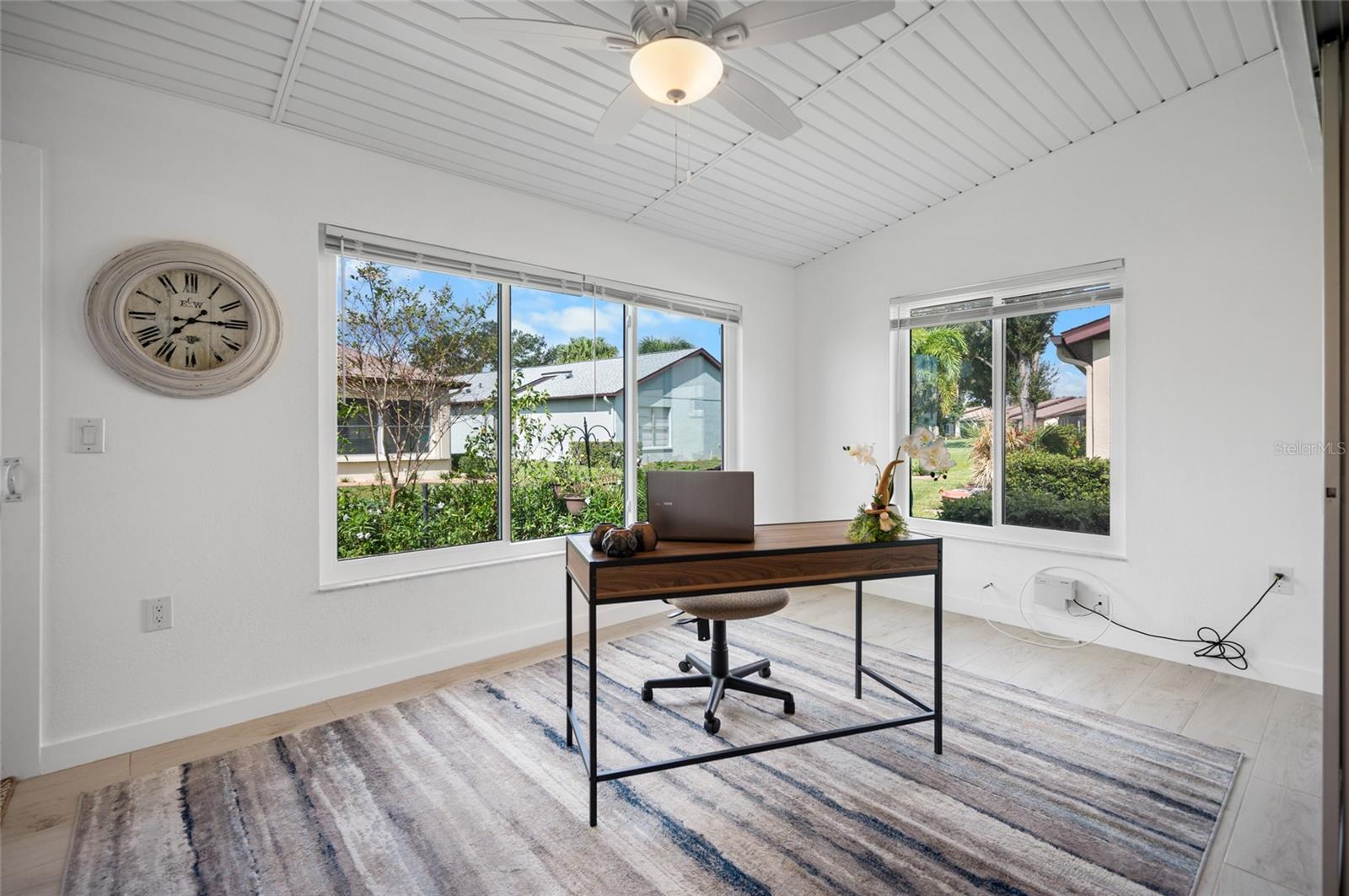 Welcome to your sun-soaked sanctuary in Foxwood, one of Englewood’s most welcoming 55+ communities, where relaxation and convenience go hand in hand. This UPDATED, income-producing villa offers the ideal blend of comfort, style, and smart investment. The seller is offering a $1,000 CREDIT towards new appliances! Plus, it’s already generating rental income through October—a turnkey opportunity whether you’re ready to move in or collect cash flow until then. (Ask for rental details!) ~~~Enjoy instant peace of mind with a NEW ROOF, NEW IMPACT WINDOWS, NEW WATER HEATER, and 10-year warranty on the AC and handler. Inside, the smart SPLIT FLOOR PLAN offers dual primary suites, each with its own fully renovated bathroom, giving you and your guests ultimate privacy. The entire home is freshly painted, creating a bright and airy atmosphere enhanced by cathedral ceilings and abundant natural light. ***The spacious living room is perfect for hosting movie nights or card games, while the formal dining area sets the stage for memorable meals. Cooking is a breeze in the kitchen, complete with a dinette nook, pass-through window, and pocket door for added privacy. ~~~Need flex space? The Florida room is a bright and versatile bonus area—ideal for lounging, hobbies, or a home office. Pocketing doors allow you to close it off for quiet time or keep it open for flow. Step outside to your private back patio—perfect for BBQs, morning coffee, or catching the afternoon sun. ***Your primary suite is a true retreat, offering TWO walk-in closets, a large sunny window, and a stunning new en suite bathroom featuring QUARTZ COUNTERTOPS and modern tile accents. Guests will enjoy their own full suite with a beautifully upgraded bath boasting granite counters and a pocket door for privacy. Storage and function are a breeze with a laundry room featuring extra cabinetry and a garage workspace ideal for tools, hobbies, or crafts. ~~~All this, plus an active lifestyle in the Foxwood community, where friendly neighbors and a full calendar of amenities await. Take advantage of the clubhouse, heated pool, tennis and shuffleboard courts, and fun group activities like water aerobics. Located just minutes from FL-776, historic Dearborn Street, shopping, dining, and Manasota Beach. Your new life is never far from fun! This beautifully maintained home won’t last—schedule your private tour today and discover the lifestyle you’ve been waiting for!