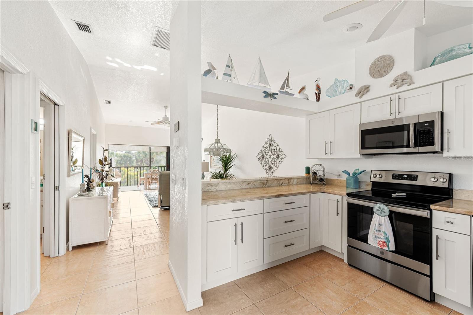 IMMACULATE and Move-In Ready Condo in Englewood! This stunning property is truly TURNKEY, featuring new QUARTZITE countertops in the kitchen and bathrooms, new wood cabinets with soft-close drawers and high-end stainless steel appliances. An all white kitchen adds a modern touch, while the interior has been freshly painted for a clean, welcoming feel. Enjoy the convenience of a stackable washer and dryer, a 2020 AC unit, and a 2019 hot water heater. With two large storage rooms totaling 237 sq. ft. and a spacious 29 x 13 sq. ft. two-car garage, there’s plenty of room for all your belongings. Relax and savor BREATHTAKING SUNSETS from your own screened and covered balcony. This community offers an array of amenities, including a heated swimming pool, clubhouse, tennis court, shuffleboard, pickleball courts, and expansive acreage for walking or cycling. Located close to marinas, golf courses, the pristine beaches of Manasota Key and Boca Grande, shopping, and all the best of Englewood. Don’t miss this exceptional unit, located in Building 12. Schedule your preview today!
