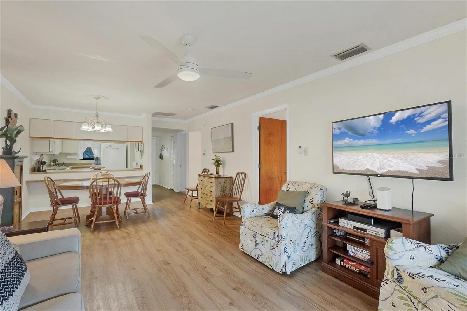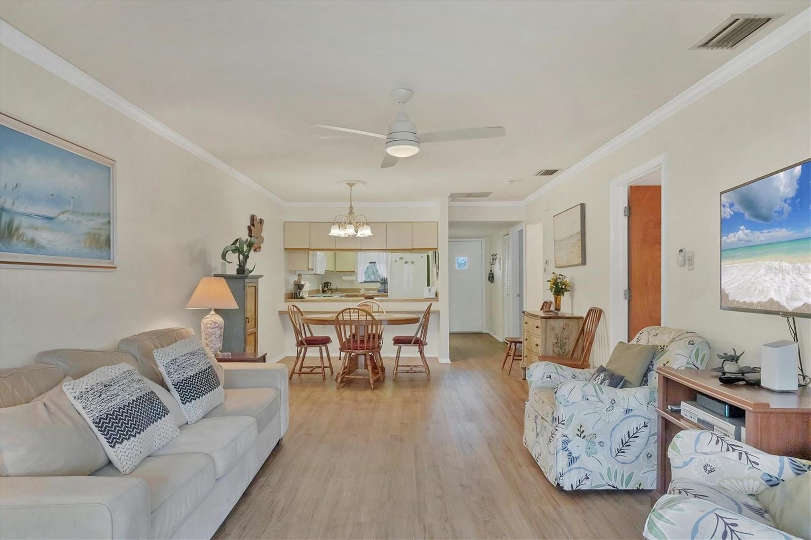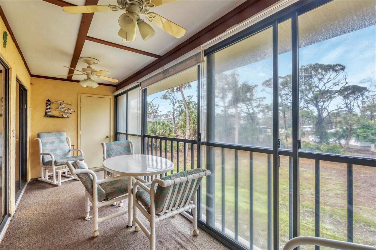 This beautifully maintained 2-bedroom, 2-bath condo is turnkey furnished and perfect for those seeking a maintenance-free lifestyle. As you enter, the spacious open-concept living and dining room combo invites you to relax or entertain with ease, offering a seamless flow throughout the space. The kitchen is thoughtfully designed with modern appliances, ample cabinetry, and a convenient breakfast bar, perfect for casual meals or socializing. The master suite is a peaceful retreat, featuring an en suite bathroom and a generous closet for added convenience. The guestroom is spacious and ideal for visitors or as a flexible space to suit your needs. Step onto the screened-in balcony, which includes an additional storage room for all your beach gear and essentials. The property also features a two-car carport with a convenient laundry and storage room underneath. With a new roof and A/C (2024), this condo is ready for you to move in and start enjoying everything this wonderful community provides. Forest Park offers a host of amenities, including a heated community pool, tennis courts, fitness center, clubhouse, shuffleboard, and a pickleball court—everything you need to stay active and entertained year-round. Located in close proximity to Boca Grande, you'll have access to world-class tarpon fishing and the pristine beaches of Palm Island, Manasota Key, Casey Key, and Siesta Key, all just a short drive away. The nearby Wellen Park offers a vibrant lifestyle with shopping, dining, live entertainment, recreational trails, and the exciting CoolToday Park, home to the Atlanta Braves spring training facility. The community of Englewood provides a warm, welcoming atmosphere with farmers markets, car shows, and community events, plus the charm of historic Downtown Dearborn Street. Explore its unique shops, local restaurants, and live entertainment while soaking up the coastal vibe of this quaint town. Whether you're looking for a full-time residence, seasonal retreat, or rental income, this condo in Forest Park has endless possibilities. With its desirable location and turnkey furnishings, it’s an excellent option for an income-generating investment. Schedule your private showing today and start living the Florida lifestyle you've always dreamed of!