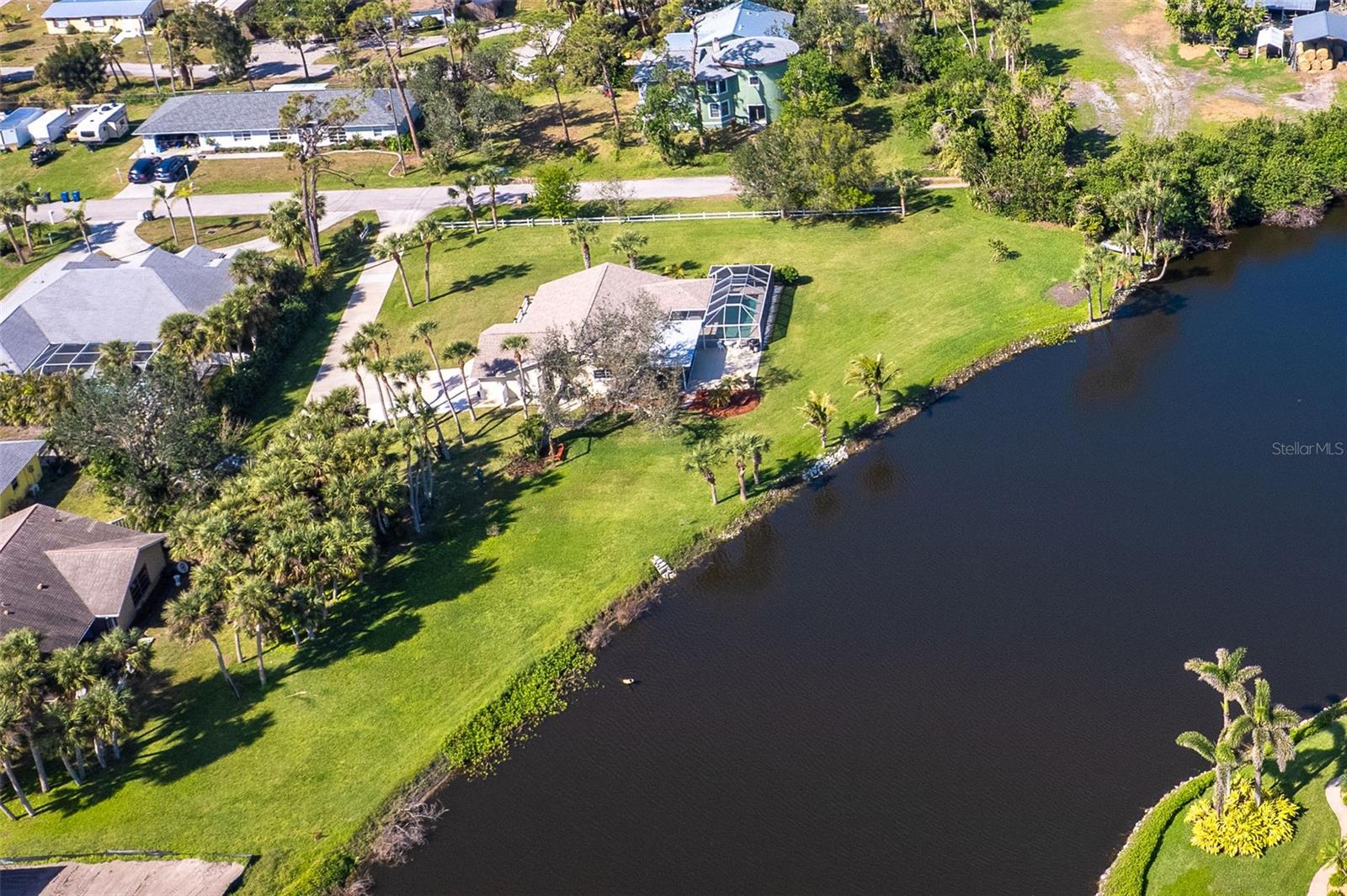 LAKEFRONT PARADISE IN ENGLEWOOD – No HOA, Stunning Views & Peaceful Living! Discover the perfect blend of privacy, nature, and convenience in this beautiful 3-bedroom, 2-bathroom lakefront home set on an expansive 0.845-acre lot with 190 FEET OF WATERFRONT. Nestled at the end of a quiet dead-end street, this home offers breathtaking panoramic lake views, a peaceful environment, and abundant wildlife and birds, making it a true Florida retreat. KEY FEATURES: Expansive Outdoor Living: Enjoy the serene lake views from your large-screened lanai with a swimming pool, perfect for relaxation and entertaining. OPEN FLOOR PLAN: Gives you amazing views of the water from the kitchen, dining and great room. The kitchen has been updated with white cabinetry and Wilsonart High Definition countertops. The great room gas fireplace gives you options when the evenings are cool. NEW ROOF (2022): Move in with peace of mind knowing the home has a newer roof. MATURE LANDSCAPING AND FRUIT TREES: Lychee, Mango, Avocado, and Coconut trees add to the lush surroundings. You can even enjoy the setting from the porch swing hung in the large oak tree. PRIVATE LAUNCH PAD: Fish for bass in the stocked lake or simply enjoy the tranquil setting. This is not tidal water. WORKSHOP AND SHED: Additional storage and space for hobbies or projects. GOLF CART, WALK OR BIKE TO TOWN: Englewood’s historic Olde Village, where you’ll find shopping, dining, live music, and entertainment. Plus, you're just minutes to Lemon Bay Park and a short drive to the beaches and the City of Venice. With no HOA restrictions, your vision could be reality. FURNITURE IS INCLUDED, making it an easy transition to lakefront living. Don’t miss out on this rare opportunity to own a slice of paradise! Call today to schedule your private tour.