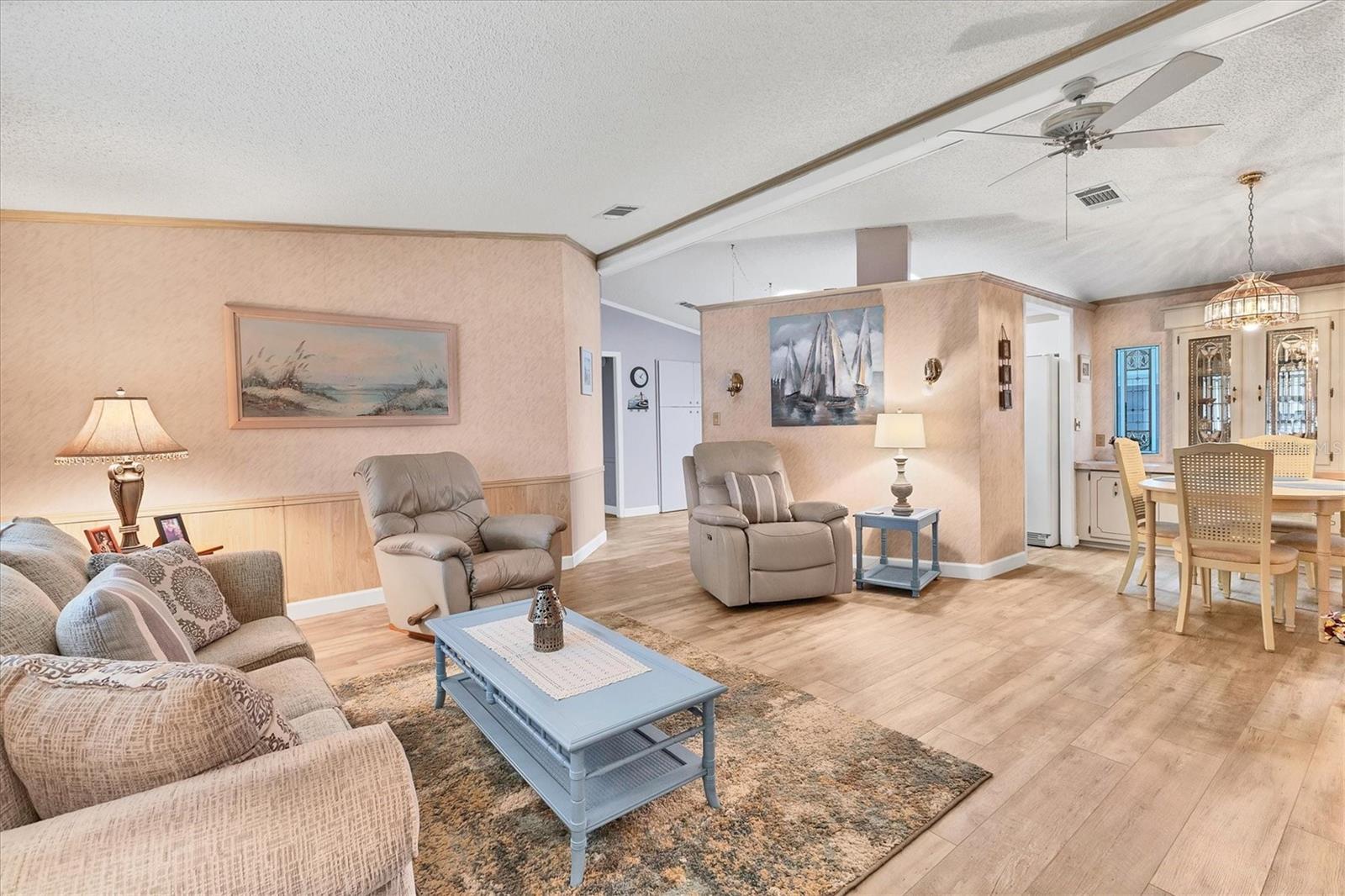 Paradise found!! Furnished, Tangerine Woods 55 and over community. This property has been beautifully maintained. Location is everything, quiet corner lot on cul-de-sac your Florida hideaway. Step inside to the large Porch/lanai where wall to wall windows will allow for Sunshine and Gulf Breezes. French doors lead you through to the great room where vaulted ceilings & neutral colors create that Florida feel. Laminate floors In the great room, dining room, kitchen and both bathrooms. Carpet in the bedrooms. Kitchen has white appliances, large pantry and breakfast bar area. Master bedroom has two walk in closets and ensuite bath. Your roof and A/C are only 4 years old, washer & hot water heater are only 2-years old. The sprinkler & Pump are one year old. The expanded 15X12 utility room/work shop area will give you plenty of space for storage or wood working. Tangerine Woods is a very active community with large club house where there are all kinds of activities from card playing, to ceramics, library to read or play pool. There's an Olympic sized heated pool and spa, fitness center, walking trails, shuffleboard, tennis, pickleball, horse shoes, etc. You are close to Olde Englewood Village with shopping, cafes, fishing and golf courses. And the Farmer's market on Thursdays.