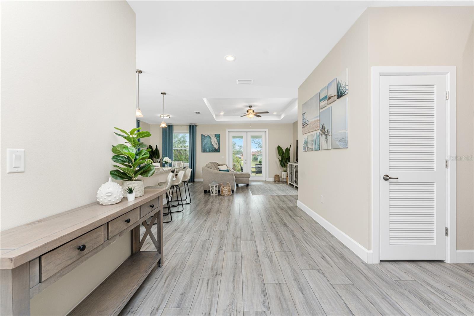 Welcome to Rosemont Relaxation, a stunning 3-bedroom, 2-bathroom coastal retreat, built in 2021 and the perfect turnkey furnished property—beautifully furnished with coastal-inspired finishes and décor. Ready for you to move in or use as a vacation rental investment, this home offers a spacious and inviting design with soaring ceilings and ceiling fans throughout, enhancing the open feel. The split-bedroom layout provides added privacy, and the sparkling white, spacious kitchen features brand new stainless steel appliances, perfect for preparing meals. The open-concept living area flows seamlessly to a rear covered porch with outdoor dining space, ideal for enjoying Florida’s sunny weather. The primary bedroom features a walk-in closet and an ensuite bath, complete with dual sinks, a large vanity, and a walk-in tiled shower. Window coverings are included, and there’s plenty of room for a pool. The home backs onto a canal, offering peaceful views and opportunities to spot Florida wildlife right in your own backyard. Additional features include a concrete driveway, an attached 2-car garage, and an indoor laundry room (with washer and dryer included). Situated in the quiet East Englewood neighborhood, this home is a perfect fit for snowbirds looking for a seasonal retreat or a vacation rental investment. You’ll be close to everything this charming area has to offer, including pristine beaches, shopping, dining, and endless outdoor activities. Englewood is also just a short drive to the exclusive Boca Grande, known for its upscale shops, restaurants, and world-renowned beaches. This home can be your next dream home or a great investment property. Don’t miss out on this slice of paradise!