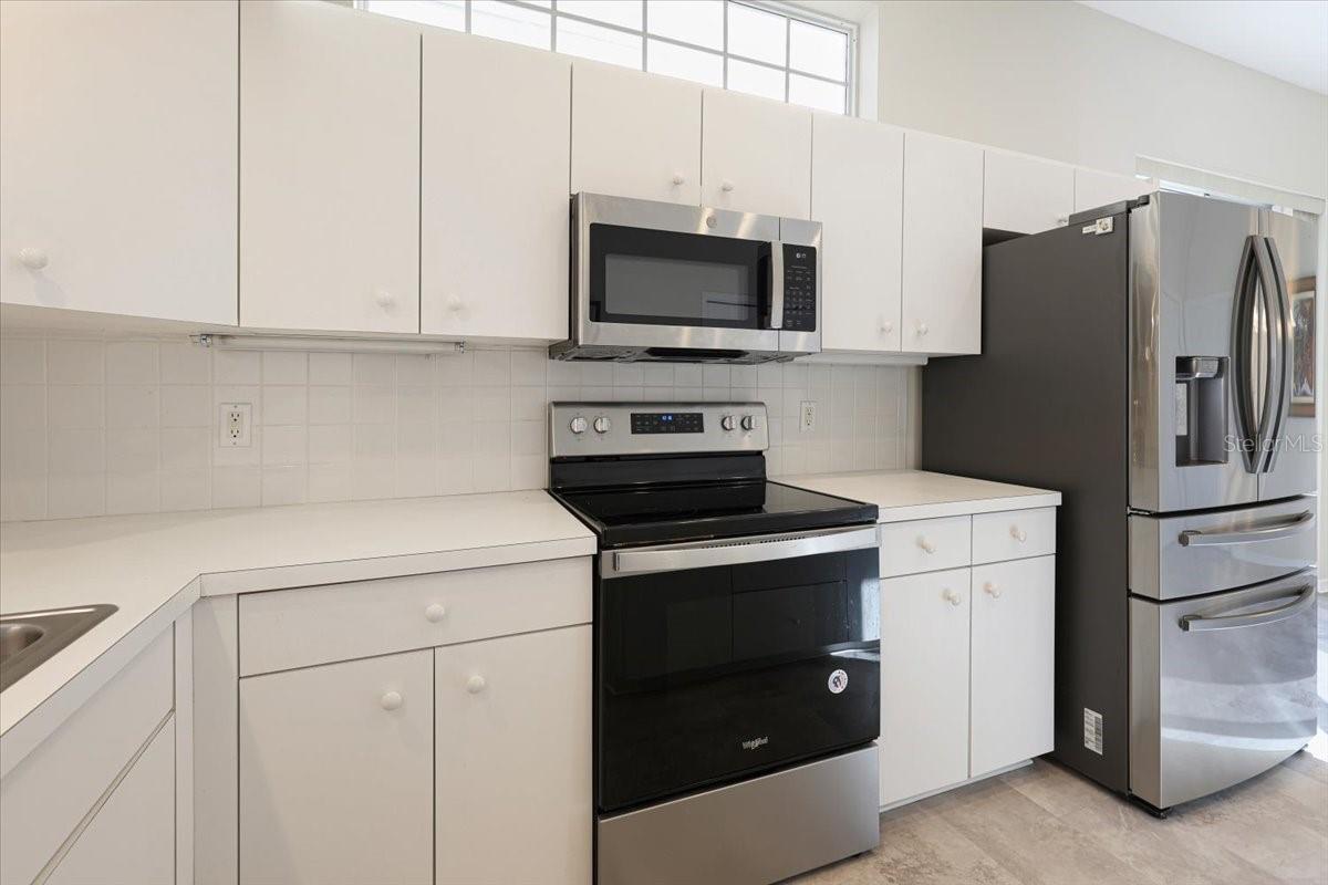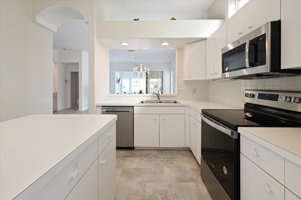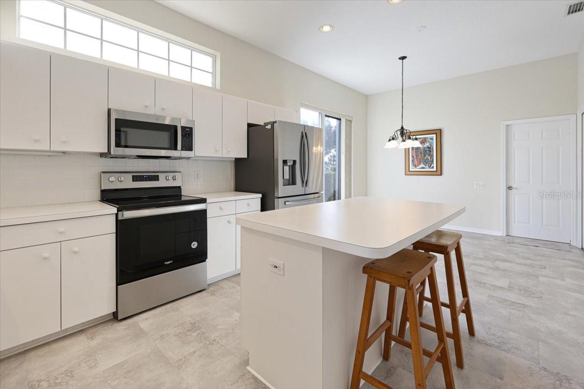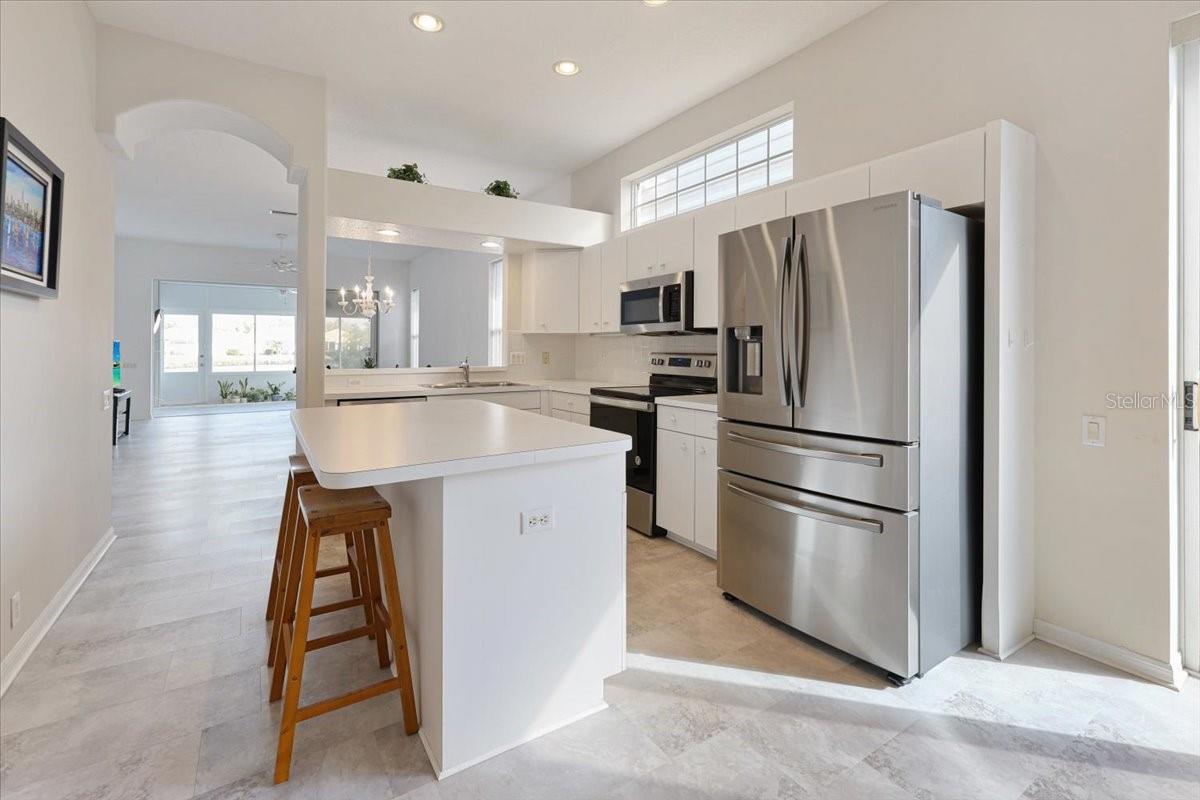 A Rare Gem in Oyster Creek – Your Perfect Lakefront Retreat! Seize the opportunity to own a beautiful home in Oyster Creek, a gated, golf community nestled just five miles from Florida's stunning beaches. As you approach this stunning property, manicured lawns and mature trees greet you at the guard gate, leading you down a picturesque, tree-lined drive into this exceptional neighborhood. This spacious 3-bedroom, 2-bath home boasts sweeping lake views and is filled with natural light, thanks to soaring ceilings and strategically placed sliding glass doors and windows throughout. The open-concept layout includes a spacious living area, a stylish dining area, and a mirrored, lighted dry bar perfect for entertaining. A large island kitchen is the heart of the home, with white cabinetry, all new appliances including washer and dryer, a cozy breakfast nook, and additional sliding glass doors leading to a side terrace ideal for outdoor grilling. The expansive master suite features serene lake views, a generous walk-in closet, and an en-suite bathroom complete with a garden tub and walk-in shower. The new Coretec flooring which was installed in 2022 provides a sense of elegance throughout all of the living areas. Step outside to the enclosed lanai, where the tranquil lake provides a perfect backdrop for relaxation. The lush grounds are beautifully maintained, with a deep well for irrigation (pump replaced in 2023), and the HOA handles the grass cutting, giving you more time to enjoy your surroundings. Other improvements to the property include a new roof (2017), new A/C system (2016), a new Water Heater (2021) as well as new garage door and opener in 2021. As a resident of Oyster Creek, you'll have access to a wealth of world-class amenities, including a challenging golf course, lighted tennis and bocce courts, pickleball courts, a library, exercise room, community pool, and a vibrant clubhouse. Lawn maintenance, fiber optic TV and internet are just a few of the amenities that make living here carefree. The community is known for its vibrant social calendar with everything from yoga and card games to book clubs and potlucks. Beautiful tropical beaches surrounding the Gulf of Mexico are a mere 5 miles away and world class fishing, kayaking and water sports are available at a multitude of locations within a 10 mile radius. Shopping is a breeze and available just outside the gates of the community and variety of restaurants are within 2 to 3 miles. Don’t miss out on this rare opportunity to live in one of the most sought-after communities in the area. Start your dream life at Oyster Creek today!