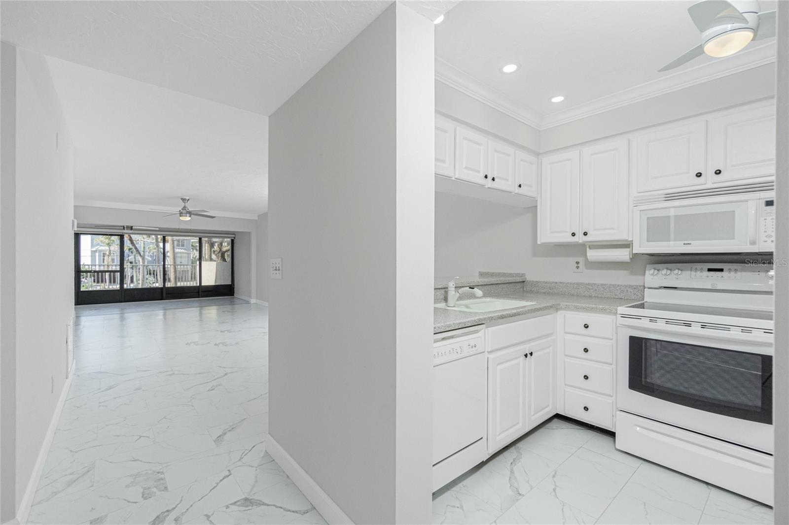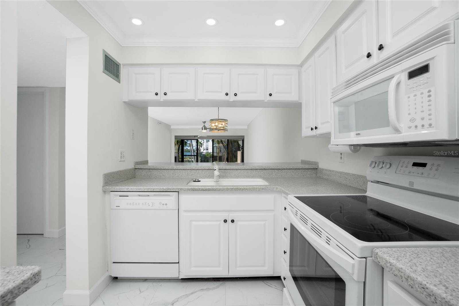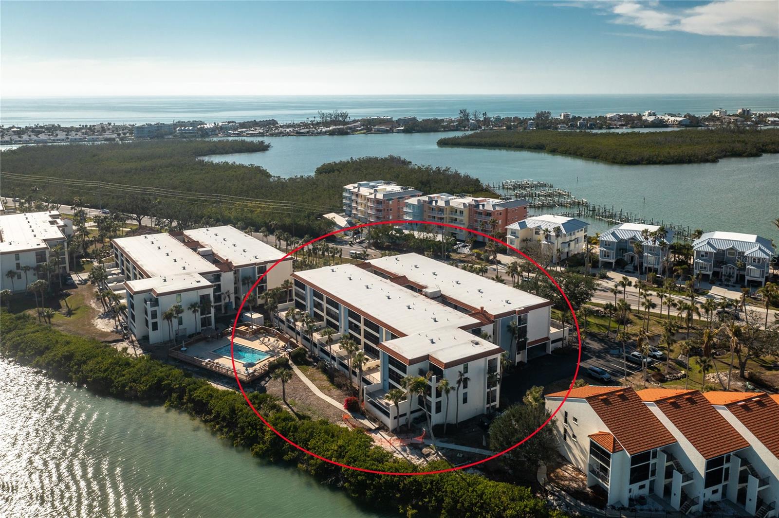 PRIME LOCATION! Beautiful 2 Bed/2 Bath Renovated Condo with oversized sundeck off 19' long Florida Room. Enjoy a walk from your condo on a well maintained sidewalk to Englewood Beach and popular Manasota Key with several beaches and restaurants. Remodel includes brand new porcelain tile throughout, both bathrooms are totally renovated including tiled showers, barn door on primary bath, recessed lighting, decorative lighting and fans, and stackable washer and dryer. Air conditioner and hot water tank 2024. Square footage according to County Records, but rooms are estimated. ASSOCIATION HAS PASSED THE STATE MANDATED MILESTONE STRUCTURAL INSPECTION WITH NO REPAIRS NEEDED AND REQUIRED RESERVES HAVE BEEN ESTABLISHED! New Roof and Sprinkler System gives good credit on homeowner insurance. Condo amenities include elevator, covered garage parking, bicycle/kayak/SUP storage, own storage unit for beach or fishing supplies, guest parking, two pools with heat/cool system, small fishing dock and gas grill/picnic areas. Relax in a pool chaise lounge at sunrise or enjoy the brilliant colors of a sunset as you watch dolphins, manatees and boaters go on Lemon Bay/Intracoastal Waterways. Clubhouse/Library with social activities and Onsite Rental Office available. For boaters, there are 60 privately owned docks across the road that provide direct access to Lemon Bay and the Intracoastal Waterway to the Gulf of Mexico. Normally there is a dock or two available to purchase or rent. Charming condo close to the beach is worth considering!