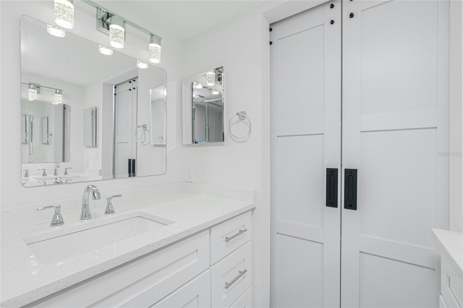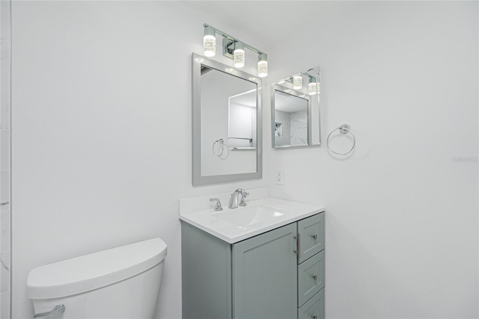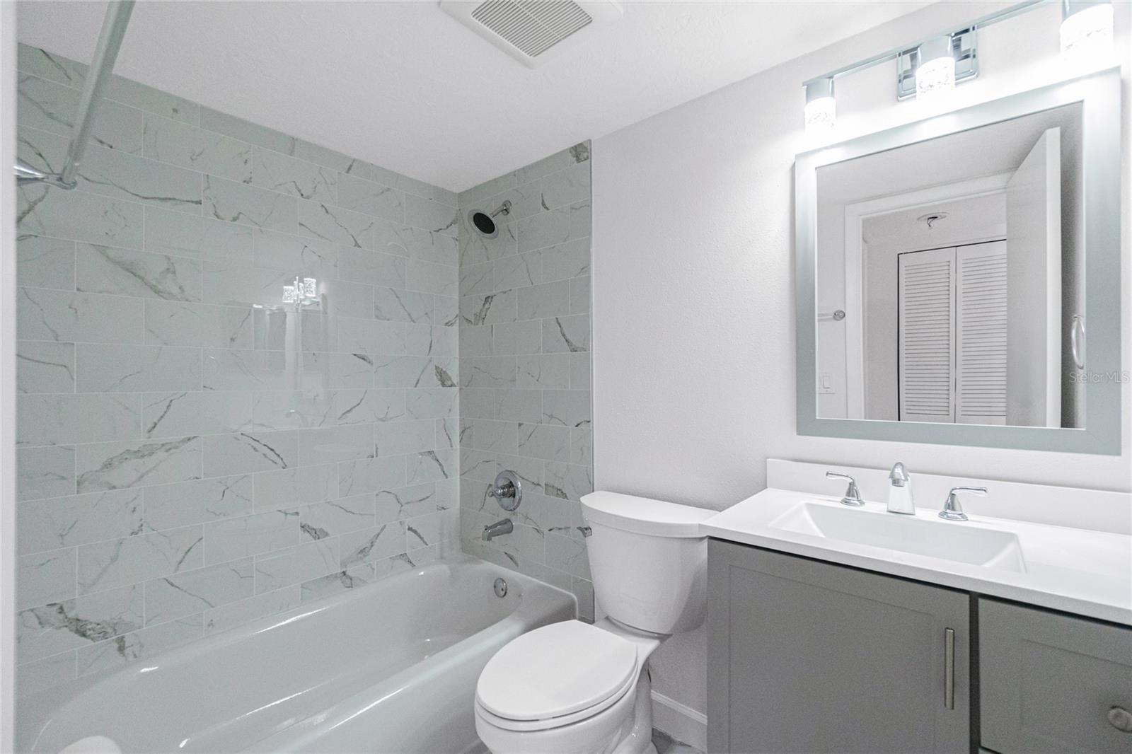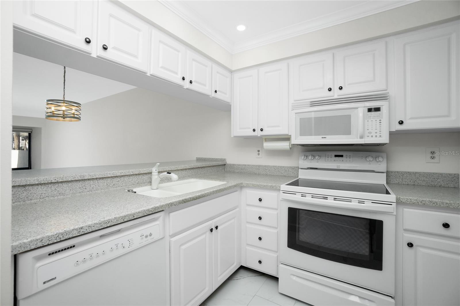 PRIME LOCATION! Beautiful 2 Bed/2 Bath Renovated Condo with oversized sundeck off 19' long Florida Room. Enjoy a walk from your condo on a well maintained sidewalk to Englewood Beach and popular Manasota Key with several beaches and restaurants. Remodel includes brand new porcelain tile throughout, both bathrooms are totally renovated including tiled showers, barn door on primary bath, recessed lighting, decorative lighting and fans, and stackable washer and dryer. Air conditioner and hot water tank 2024. Square footage according to County Records, but rooms are estimated. ASSOCIATION HAS PASSED THE STATE MANDATED MILESTONE STRUCTURAL INSPECTION WITH NO REPAIRS NEEDED AND REQUIRED RESERVES HAVE BEEN ESTABLISHED! New Roof and Sprinkler System gives good credit on homeowner insurance. Condo amenities include elevator, covered garage parking, bicycle/kayak/SUP storage, own storage unit for beach or fishing supplies, guest parking, two pools with heat/cool system, small fishing dock and gas grill/picnic areas. Relax in a pool chaise lounge at sunrise or enjoy the brilliant colors of a sunset as you watch dolphins, manatees and boaters go on Lemon Bay/Intracoastal Waterways. Clubhouse/Library with social activities and Onsite Rental Office available. For boaters, there are 60 privately owned docks across the road that provide direct access to Lemon Bay and the Intracoastal Waterway to the Gulf of Mexico. Normally there is a dock or two available to purchase or rent. Charming condo close to the beach is worth considering!