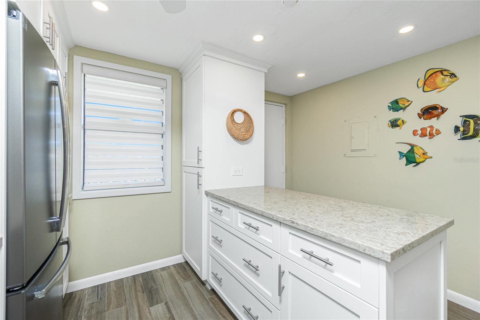 TRANQUIL WATERFRONT 2 BEDROOM 2 BATH CONDO with FLORIDA ROOM & ELEVATOR! Centrally located, yet in a very secluded area of Sandpiper Key. Awesome water view! Enjoy extraordinary views of Lemon Bay and the Intercoastal to the Gulf as you lounge in your 19' Florida Room. Perfect for capturing majestic colors over the water from a sunset and watching dolphins, manatees and boaters go by. Enjoy your morning coffee, a book or a glass of wine. This beautifully renovated CONDO BEING SOLD TURNKEY has lots of positive features: Crown moldings throughout, New Mohawk Stainmaster carpet, kitchen quartz countertops with completely open kitchen space, stainless steel appliances, recessed lighting, solid wood cabinets, storage cabinets in dining area, renovated tiled and quartz bathrooms, primary bedroom has new king sized platform storage bed and patio doors leading out to the Florida Room where a sleeper sofa is convenient for extra guests, Sunshade over the sliding glass doors, pocket door to guest bath and bedroom provides your guests with privacy, ceilings have been redone, extra freezer in primary closet, and washer and dryer. Condo has everything - except for you! Air conditioner system just replaced! Hot water tank 2 years old. Square footage according to County Records, but room sizes are estimated. Amenities include covered parking, bicycle/kayak and storage, two heat/cool pools, small fishing dock, gas grills, Clubhouse/Library/Social Activities and Rental Office available. ASSOCIATION HAS PASSED THE STATE MANDATED MILESTONE STRUCTURAL INSPECTION WITH NO REPAIRS NEEDED AND REQUIRED RESERVES HAVE BEEN ESTABLISHED! Take a walk to beautiful Englewood Beach less than a mile away on a well maintained sidewalk to nearby restaurants on Manasota Key that has four beaches! Privately owned docks across the road are available to purchase or rent. Make this condo your special place!