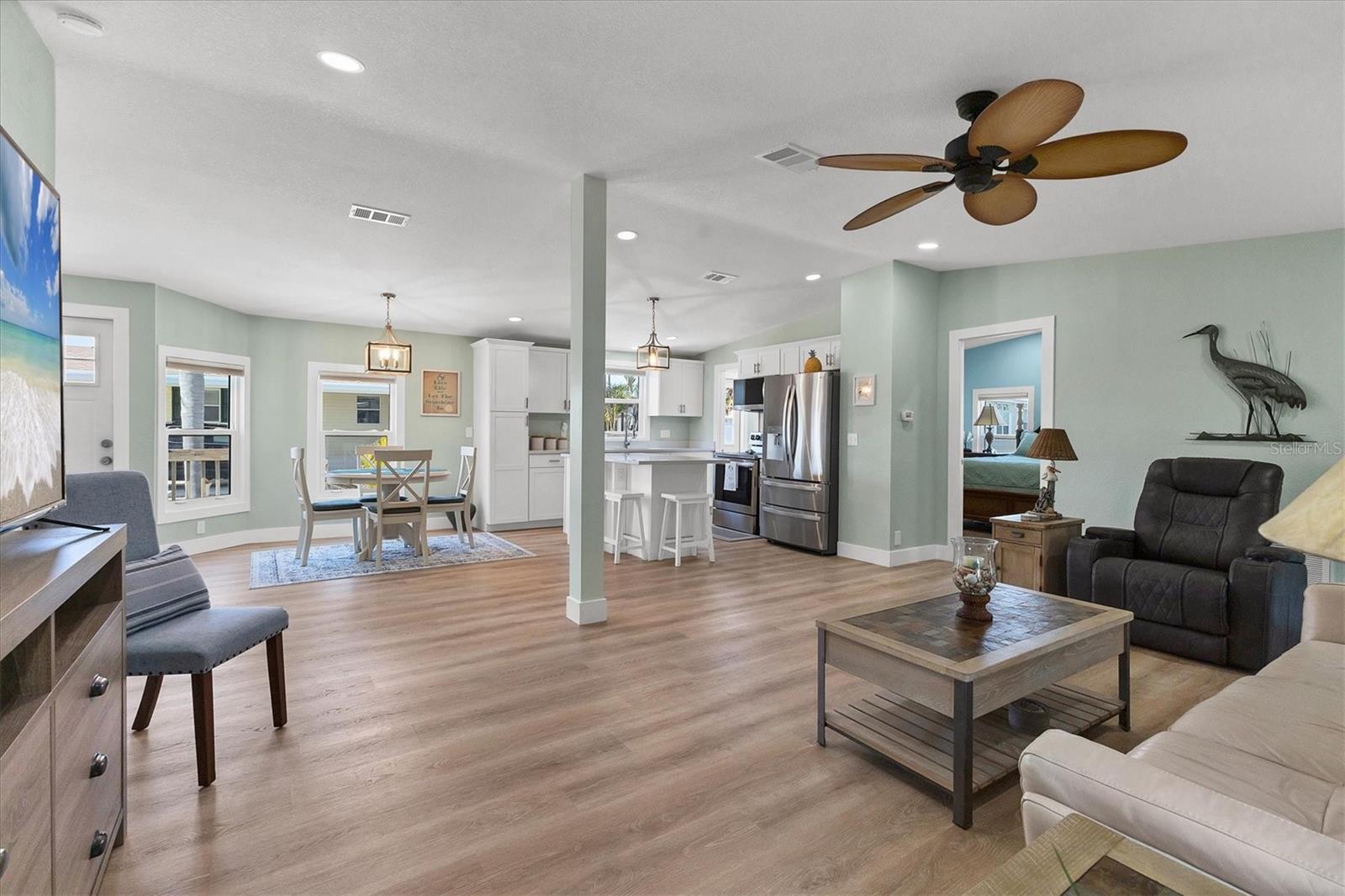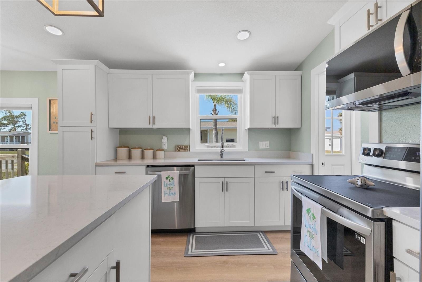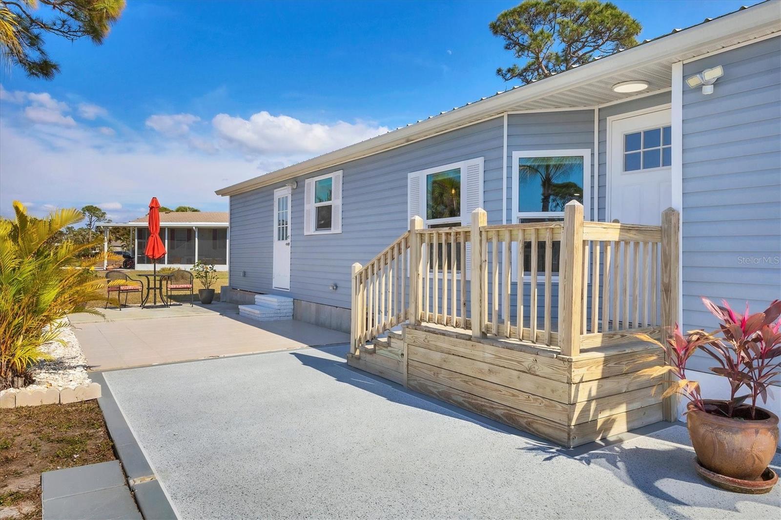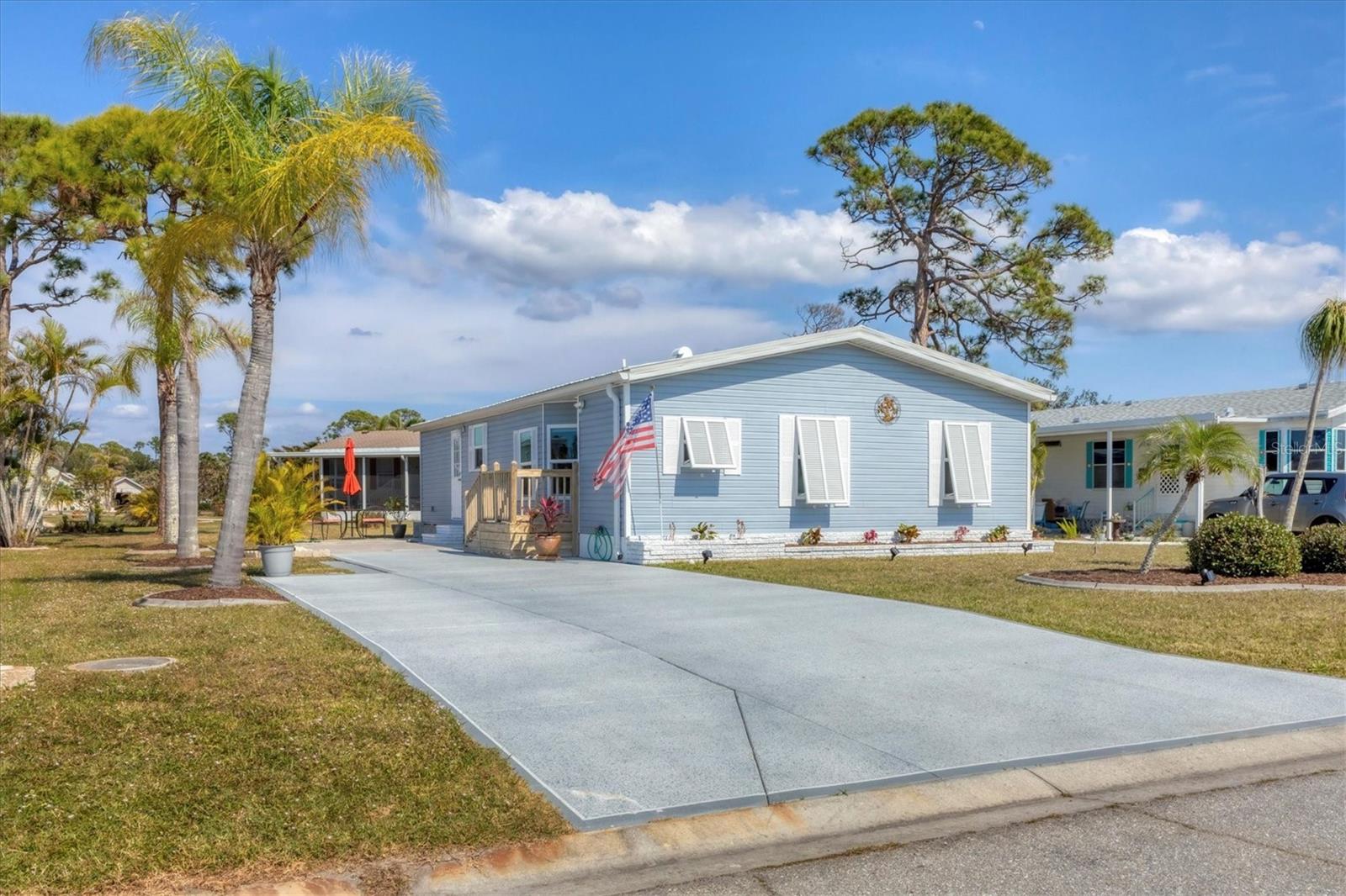 Welcome to Sandalhaven Estates II/ Kestral Circle with " NO LOT FEES. YOU OWN THE LAND! " LOW HOA FEES $100 A YEAR !! This home is in a Deed Restricted; +55 manufactured home community located a few miles away from the Emarald Coast in Beautiful Englewood Florida. The home is Fully updated from Top to Bottom, it looks like a Brand-New Home. When you step into the home you will quickly notice the Beautiful New LVP Flooring throughout and Vaulted Ceilings, Can Lights with Dimmer Switches, Decorative Ceiling Fans, Fresh Paint throughout and an Open Floorplan which is Great for Entertaining! The Kitchen and Laundry Room have New Quartz Countertops with Big Sinks. All NEW MATCHING APPLIANCES - Convection Oven with Bluetooth and Air Fryer, Built in Microwave, Refrigerator and Stackable Washer/Dryer. The Bedrooms and Bathrooms are on separate ends of the home which allows for privacy. Primary Bedroom has Walk-in closet the Primary bathroom has dual sinks, Both Bathrooms feature Blue Tooth Lights that change colors. Showers have New Tile and Pebbled Floors, Rain Shower Head with Sprayer and Glass Doors. Outdoors features Metal Roof, New Vapor Barrier under the home. Bahama Shutters in front for sun protection. The driveway has also had improvements-widened and attractive/durable coating. Enjoy What Sunny Florida, this home is close to beaches, shopping, restaurants, golfing, boating, biking, walking. Feel like you are Vacation all the time and Make this your next Home !!