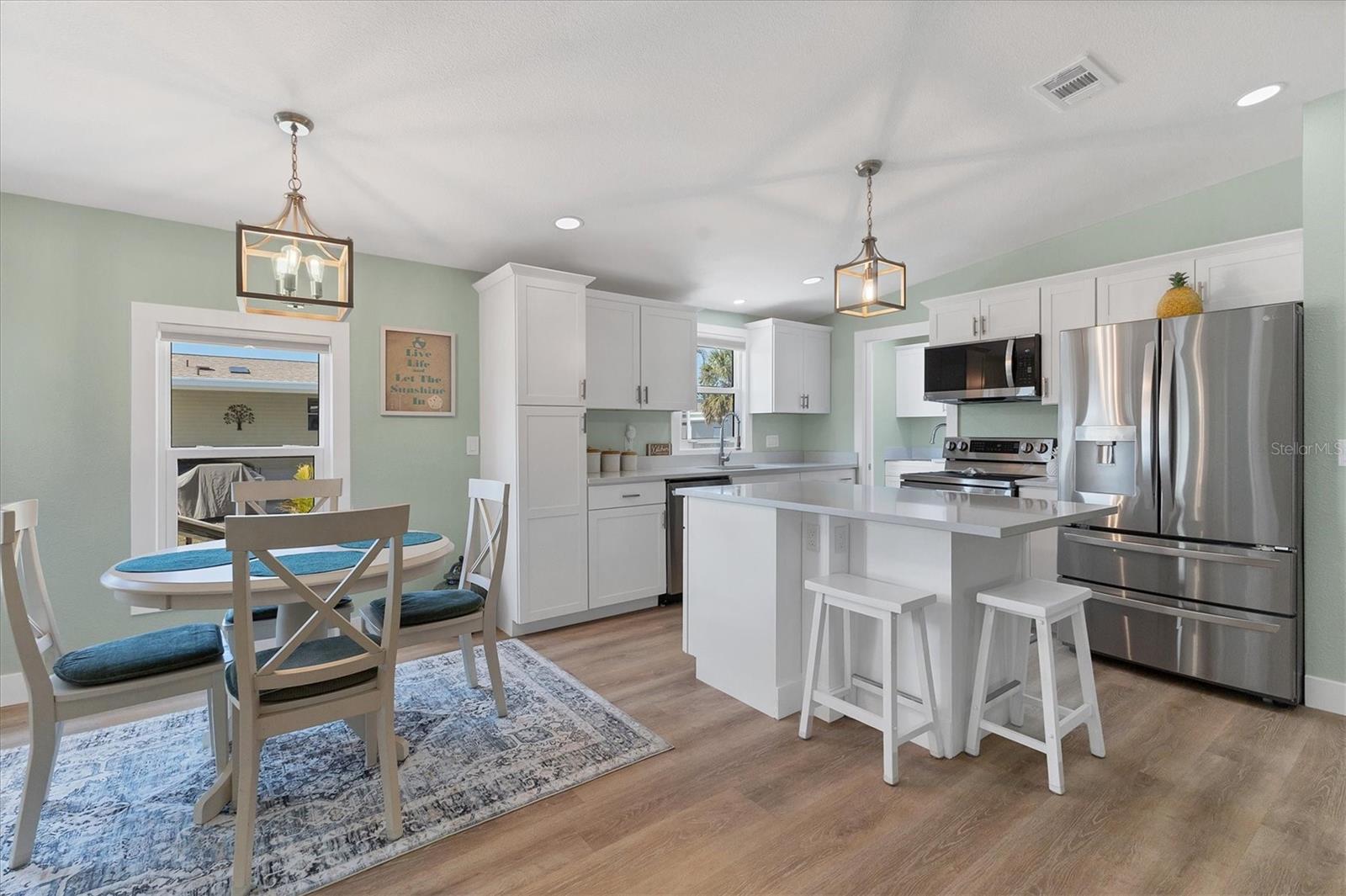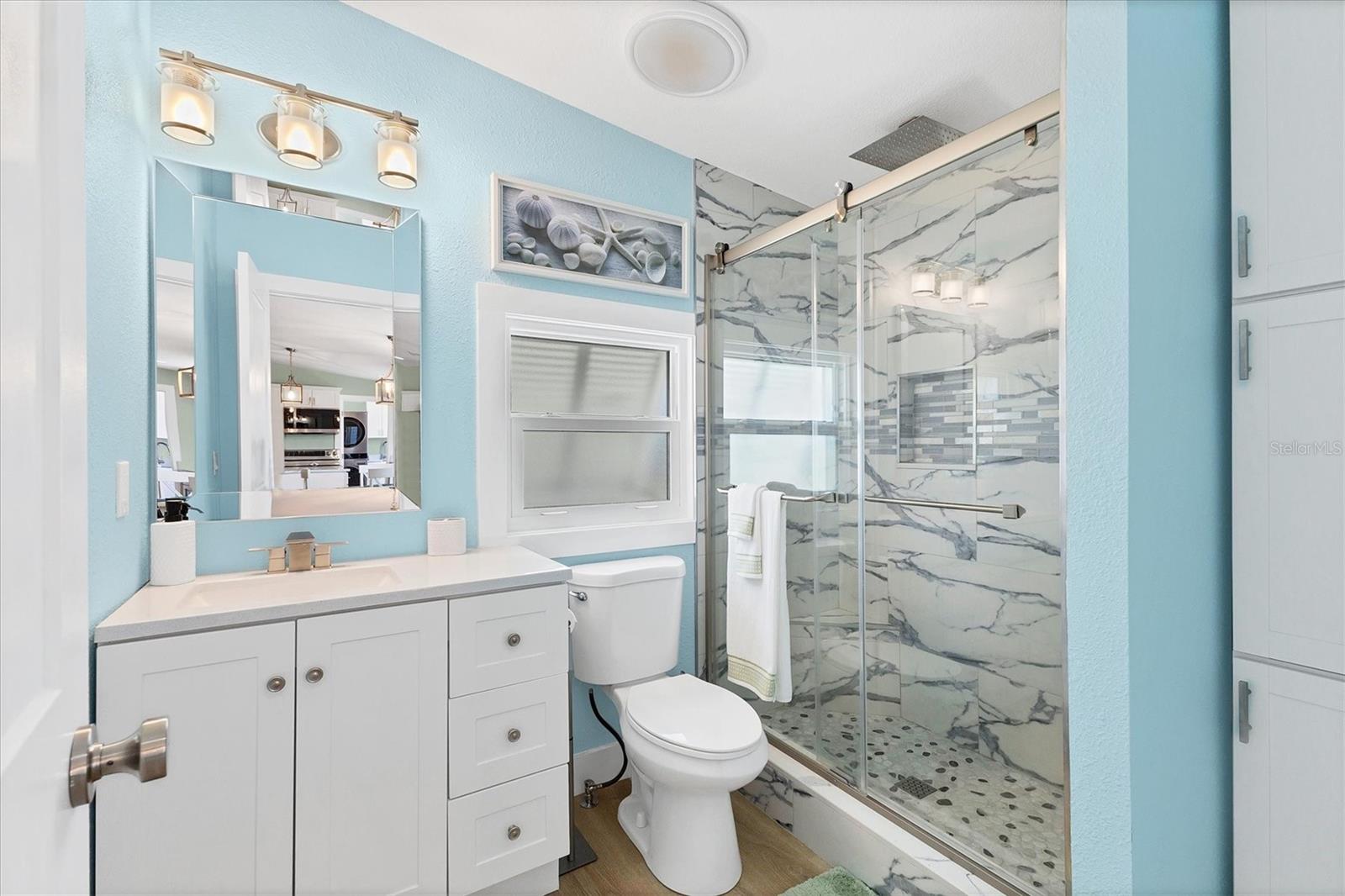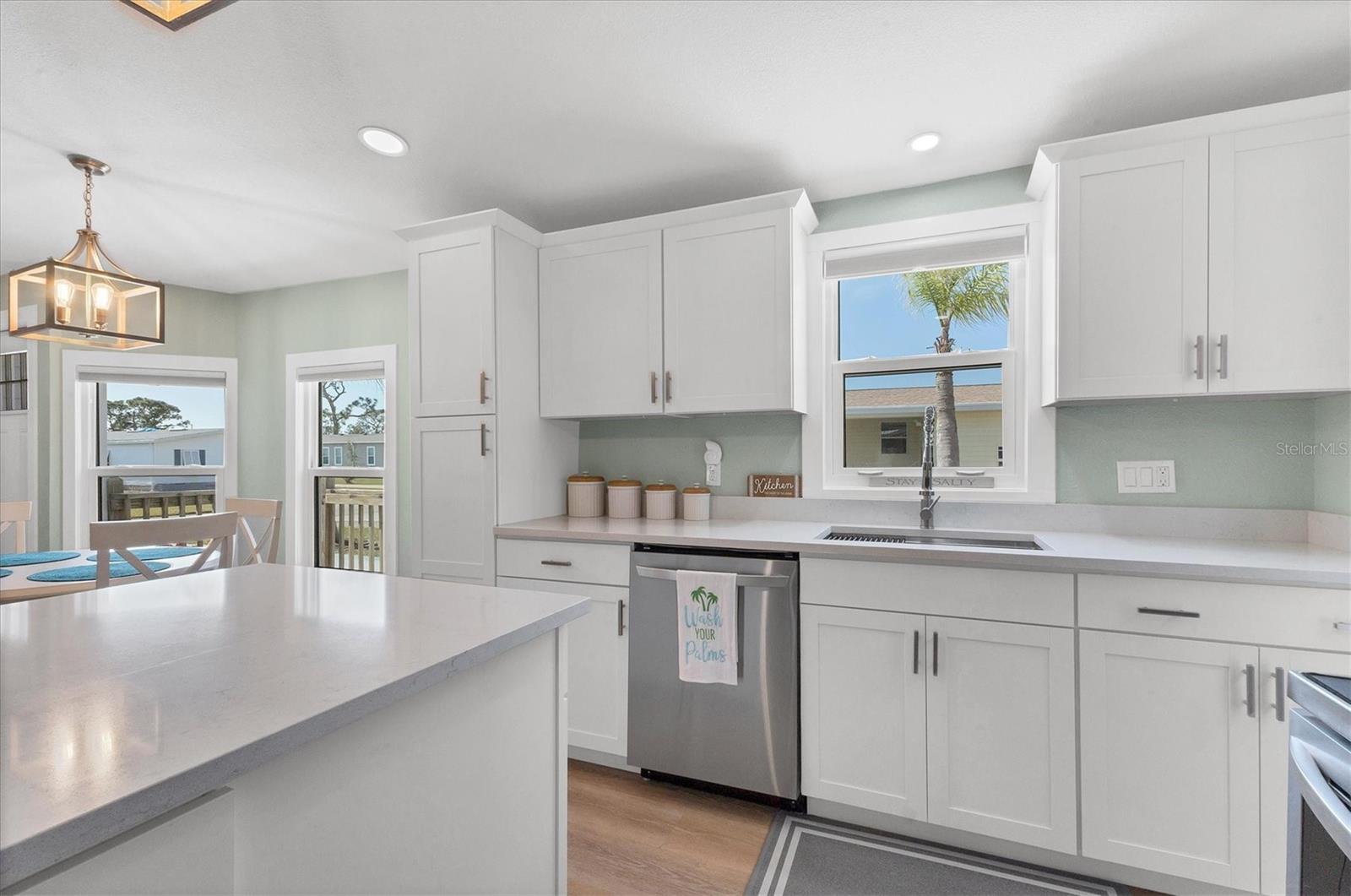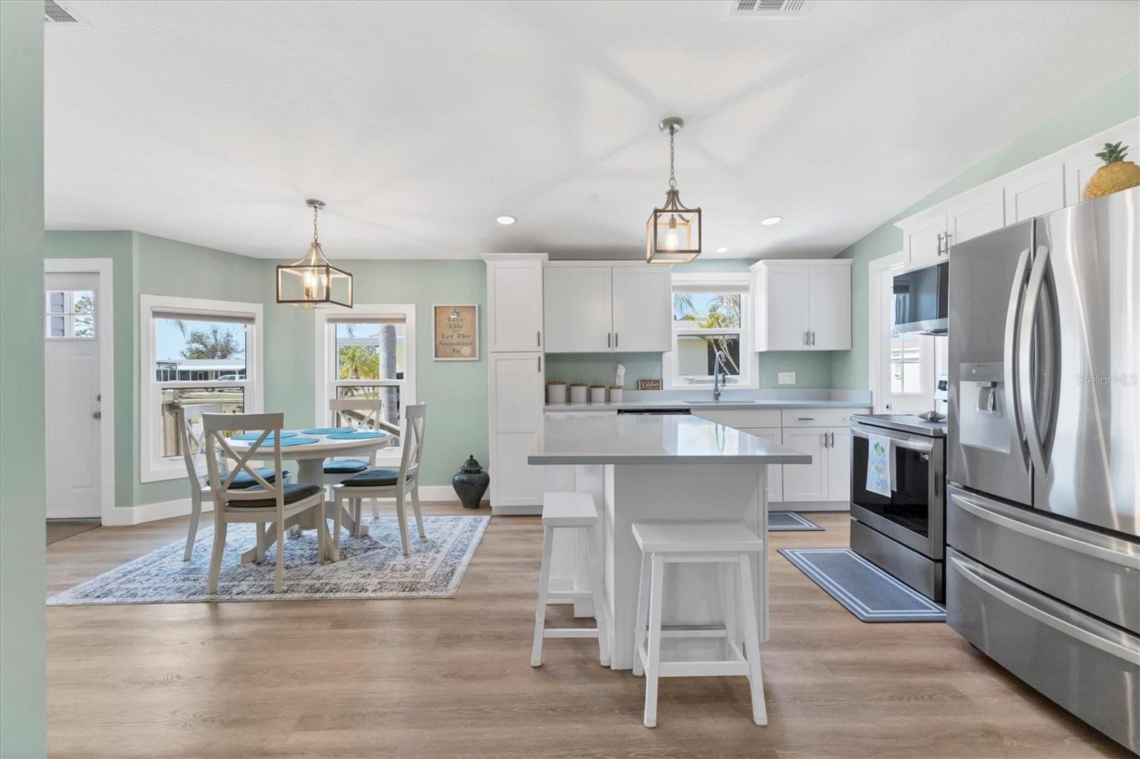 Welcome to Sandalhaven Estates II/ Kestral Circle with " NO LOT FEES. YOU OWN THE LAND! " LOW HOA FEES $100 A YEAR !! This home is in a Deed Restricted; +55 manufactured home community located a few miles away from the Emarald Coast in Beautiful Englewood Florida. The home is Fully updated from Top to Bottom, it looks like a Brand-New Home. When you step into the home you will quickly notice the Beautiful New LVP Flooring throughout and Vaulted Ceilings, Can Lights with Dimmer Switches, Decorative Ceiling Fans, Fresh Paint throughout and an Open Floorplan which is Great for Entertaining! The Kitchen and Laundry Room have New Quartz Countertops with Big Sinks. All NEW MATCHING APPLIANCES - Convection Oven with Bluetooth and Air Fryer, Built in Microwave, Refrigerator and Stackable Washer/Dryer. The Bedrooms and Bathrooms are on separate ends of the home which allows for privacy. Primary Bedroom has Walk-in closet the Primary bathroom has dual sinks, Both Bathrooms feature Blue Tooth Lights that change colors. Showers have New Tile and Pebbled Floors, Rain Shower Head with Sprayer and Glass Doors. Outdoors features Metal Roof, New Vapor Barrier under the home. Bahama Shutters in front for sun protection. The driveway has also had improvements-widened and attractive/durable coating. Enjoy What Sunny Florida, this home is close to beaches, shopping, restaurants, golfing, boating, biking, walking. Feel like you are Vacation all the time and Make this your next Home !!