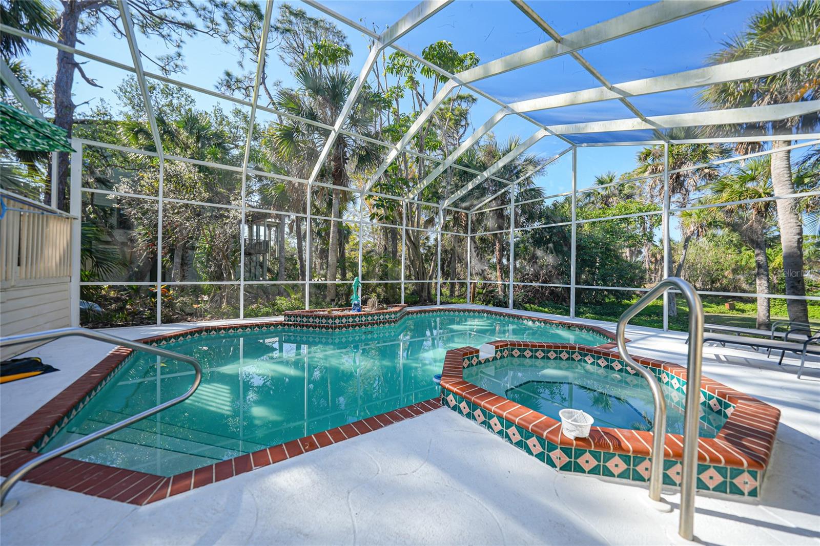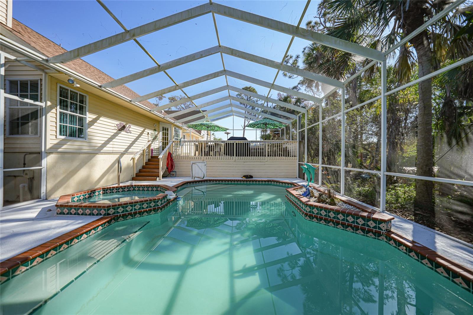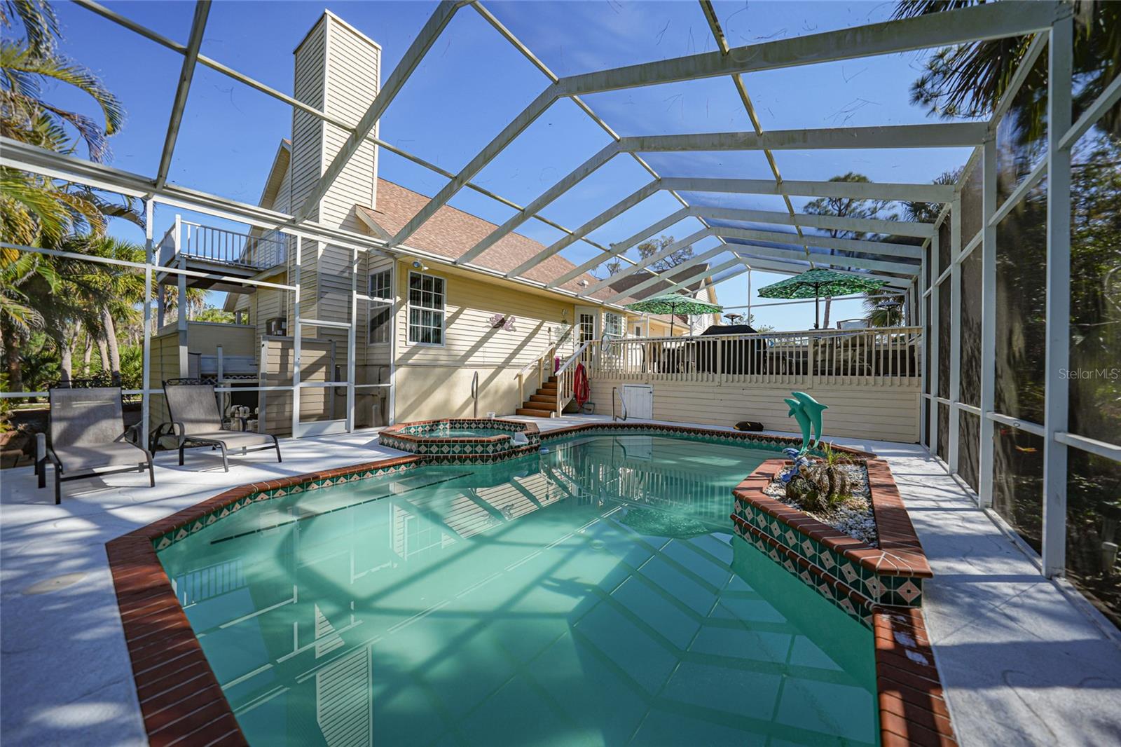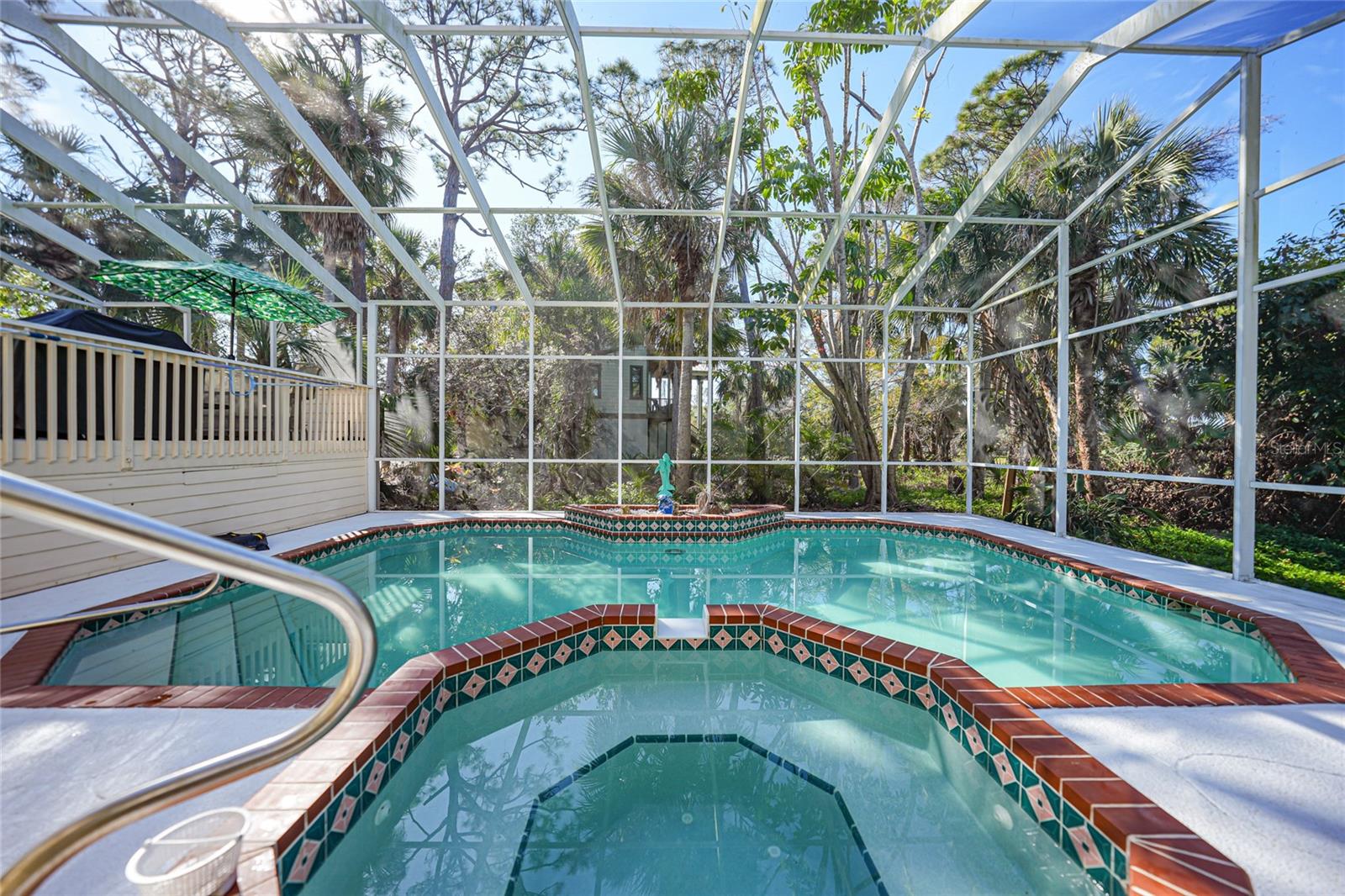 Unique Old Florida-Style Pool Home with Mother-In-Law Suite Near Lemon Bay Park! Discover this one-of-a-kind 4-bedroom, 3.5-bathroom home with an oversized 2-car garage and a separate 1-bedroom, 1-bathroom mother-in-law suite with its own living room and full kitchen—perfect for guests or rental income. Nestled on half an acre next to Lemon Bay Park, this home offers privacy, character, and a true Florida lifestyle. There is even a seasonal path that leads to the Lemon Bay Park. Built on a raised stem wall, this bi-level home has no hurricane damage and exudes Old Florida charm. The welcoming front porch features a beautiful tongue-and-groove ceiling, setting the tone for the unique craftsmanship inside. Step through the entryway with tile floors and be greeted by a formal living room (currently an office) with elegant crown molding, chair rail accents, and wood flooring. The primary suite on the first floor boasts large windows, a walk-in closet, carpet flooring, and an ensuite bathroom with a dual-sink vanity, step-in shower with seats, and luxury vinyl tile floors. The heart of the home is the well-appointed kitchen, featuring an island, stainless steel appliances, and a cozy breakfast nook with a charming bay window. The spacious living room impresses with soaring ceilings, a decorative fireplace, and plush carpet. Upstairs, you'll find a second living area with a wet bar and walk-out balcony, plus two oversized bedrooms and a full bathroom with a tub/shower combo. The outdoor space is a private oasis, featuring a raised deck overlooking the pool and spa, lush landscaping, and a boardwalk and sidewalk wrapping around the home. Situated just minutes from Historic Dearborn Street in Old Englewood, you’ll have easy access to boutique shopping, dining, and the public library. Plus, enjoy the beauty of Lemon Bay Park, offering serene waterfront views, nature trails, and kayak access to Lemon Bay. This is a rare opportunity to own a spacious home in a prime location—schedule your private tour today!