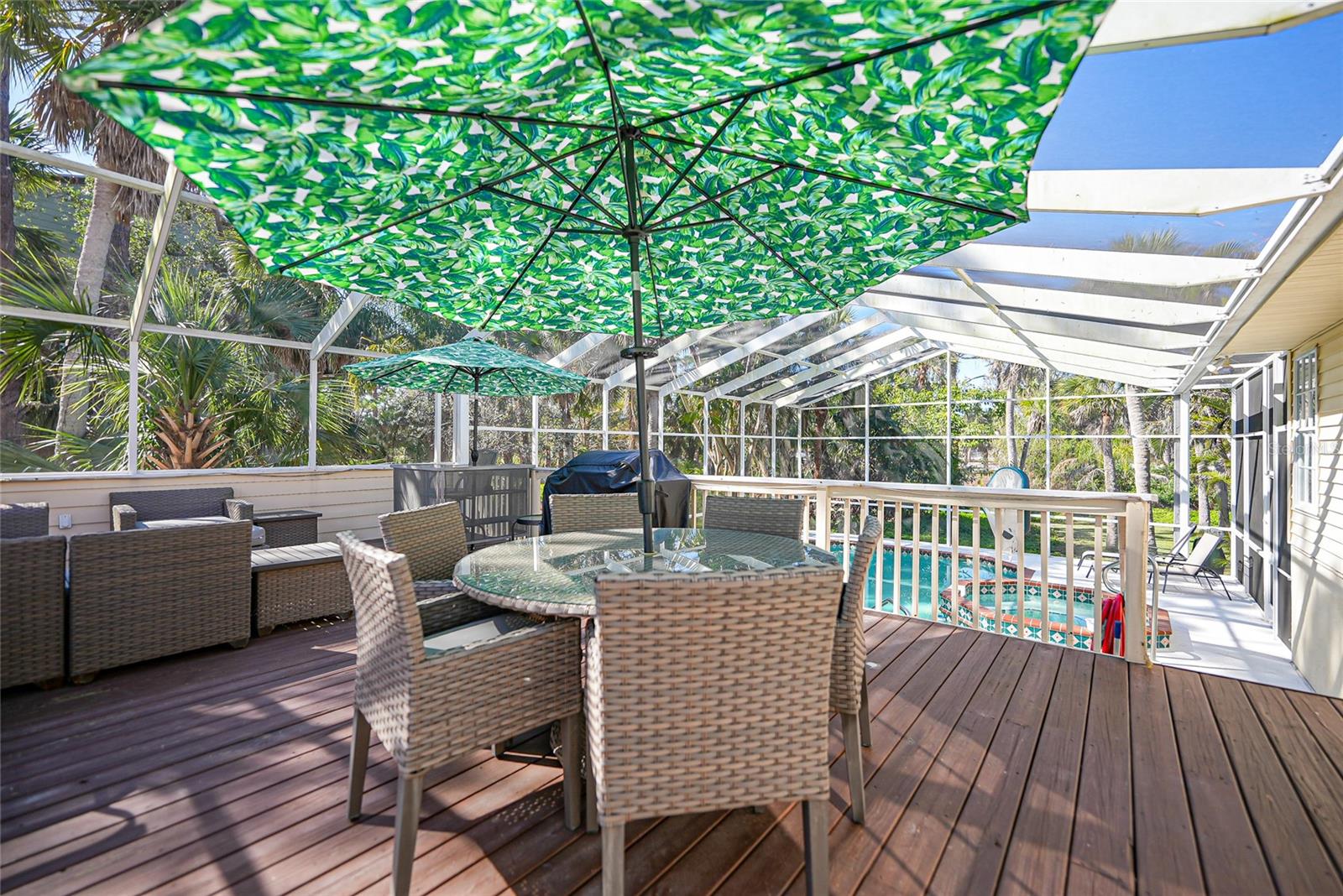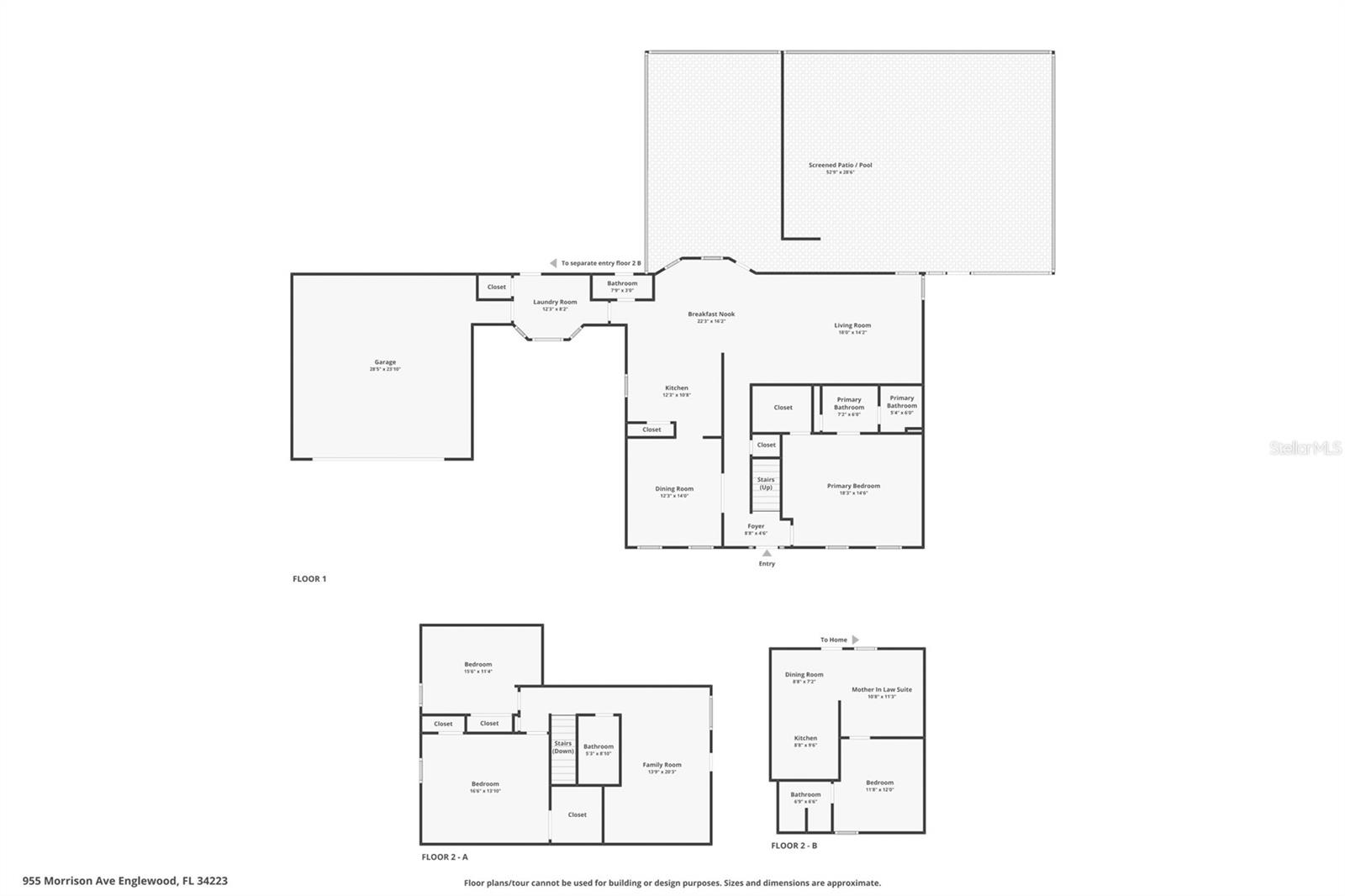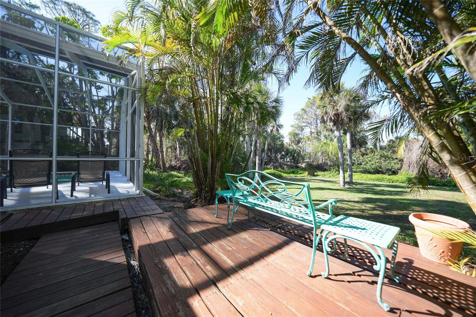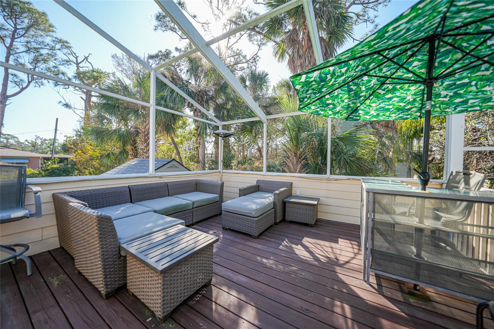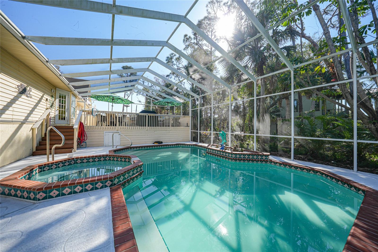 Unique Old Florida-Style Pool Home with Mother-In-Law Suite Near Lemon Bay Park! Discover this one-of-a-kind 4-bedroom, 3.5-bathroom home with an oversized 2-car garage and a separate 1-bedroom, 1-bathroom mother-in-law suite with its own living room and full kitchen—perfect for guests or rental income. Nestled on half an acre next to Lemon Bay Park, this home offers privacy, character, and a true Florida lifestyle. There is even a seasonal path that leads to the Lemon Bay Park. Built on a raised stem wall, this bi-level home has no hurricane damage and exudes Old Florida charm. The welcoming front porch features a beautiful tongue-and-groove ceiling, setting the tone for the unique craftsmanship inside. Step through the entryway with tile floors and be greeted by a formal living room (currently an office) with elegant crown molding, chair rail accents, and wood flooring. The primary suite on the first floor boasts large windows, a walk-in closet, carpet flooring, and an ensuite bathroom with a dual-sink vanity, step-in shower with seats, and luxury vinyl tile floors. The heart of the home is the well-appointed kitchen, featuring an island, stainless steel appliances, and a cozy breakfast nook with a charming bay window. The spacious living room impresses with soaring ceilings, a decorative fireplace, and plush carpet. Upstairs, you'll find a second living area with a wet bar and walk-out balcony, plus two oversized bedrooms and a full bathroom with a tub/shower combo. The outdoor space is a private oasis, featuring a raised deck overlooking the pool and spa, lush landscaping, and a boardwalk and sidewalk wrapping around the home. Situated just minutes from Historic Dearborn Street in Old Englewood, you’ll have easy access to boutique shopping, dining, and the public library. Plus, enjoy the beauty of Lemon Bay Park, offering serene waterfront views, nature trails, and kayak access to Lemon Bay. This is a rare opportunity to own a spacious home in a prime location—schedule your private tour today!