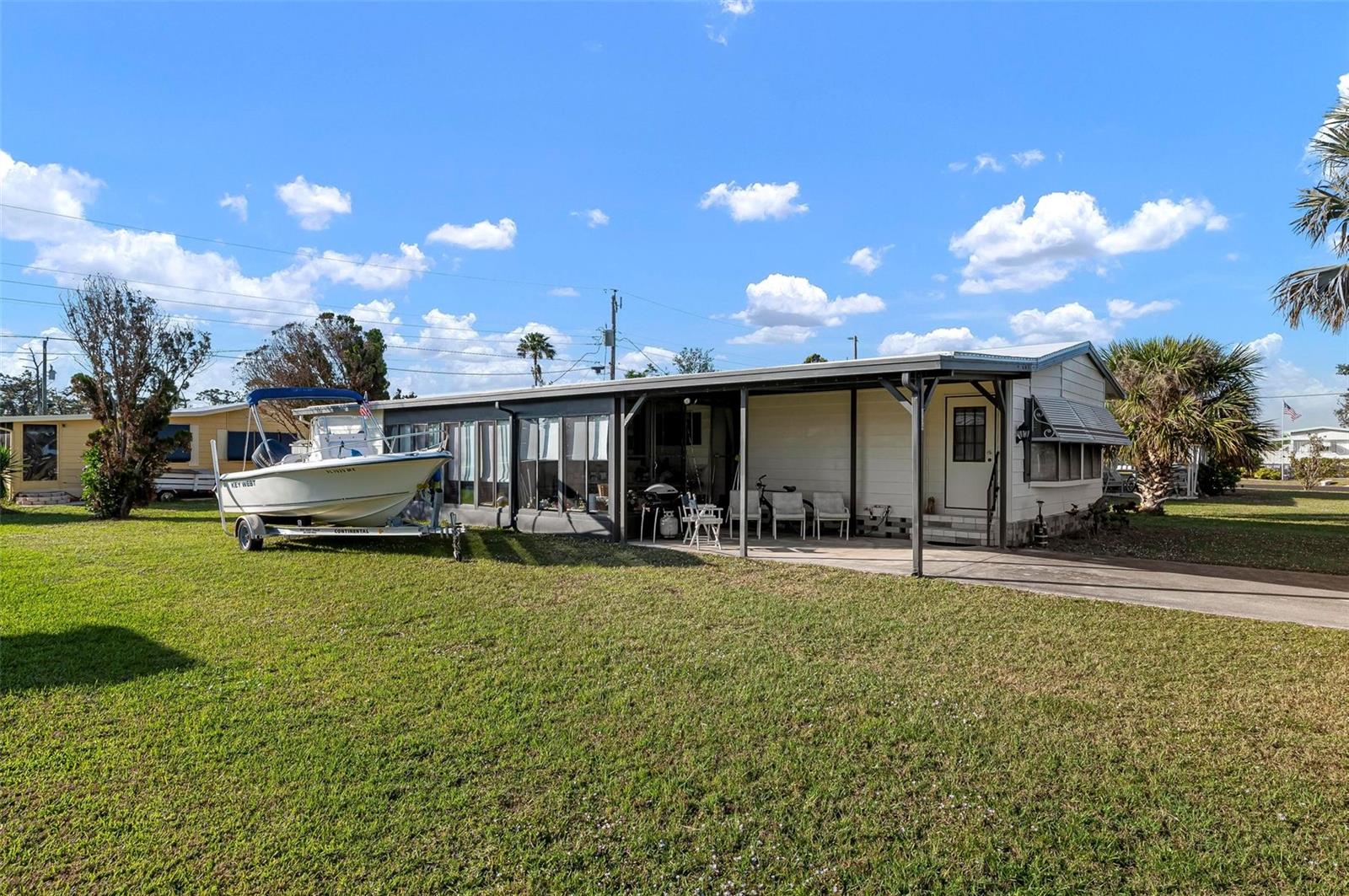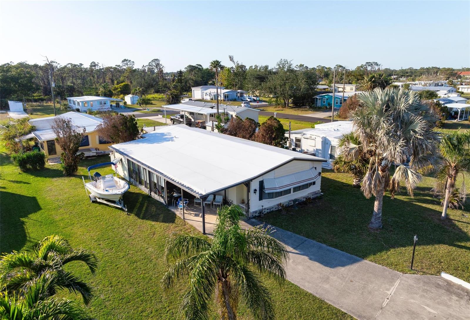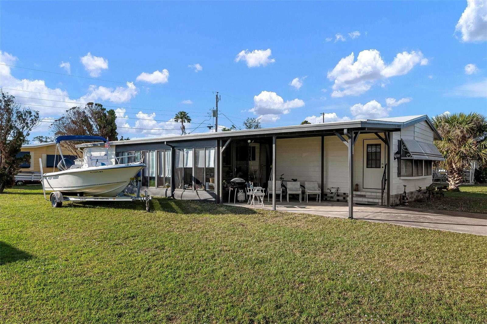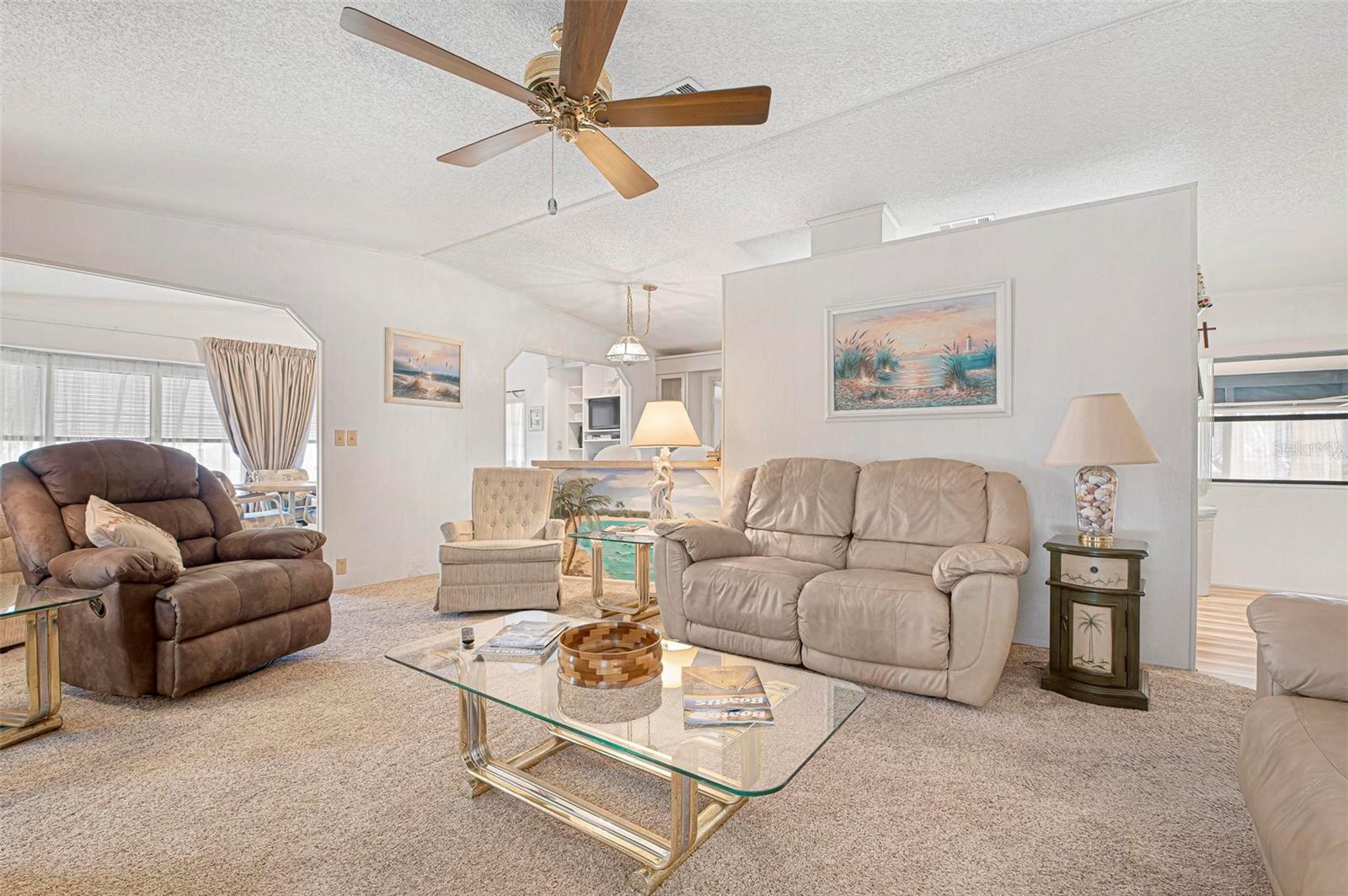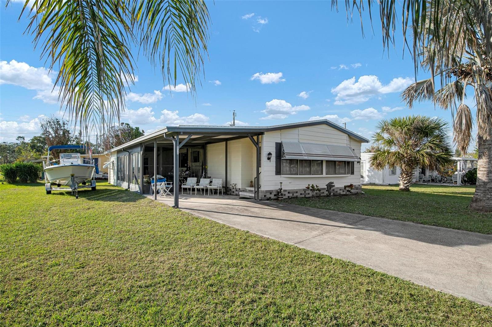 Discover this well-maintained 1988 mobile home offering plenty of space and comfort, sold fully furnished for a seamless move-in experience. Upon entering, you'll be welcomed by a bright and airy flex space, filled with natural light from the front-facing windows, ideal for a cozy sitting area, home office, or creative space. The spacious living room provides ample room for entertaining, while the kitchen features a convenient bar-top counter with built-in storage, perfect for casual dining or enjoying drinks with friends. A dedicated indoor laundry room adds to the home's functionality. The large primary bedroom boasts an ensuite bath and generous closet space. Recent updates include flooring (within the past six years), bathroom renovations (within the past 10 years), and major improvements such as a new roof, replumbing, and a new water heater. The HVAC system is only 10 years old, ensuring comfort and efficiency. Mobile Gardens offers an optional, low-cost HOA membership of $200 per year which grants access to amenities like a recreation center, shuffleboard, social events, and two community boat ramps. Boat slips are available separately on a first-come, first-served basis for an additional fee. Conveniently located near stunning Gulf beaches, shopping, dining, and live entertainment, this home is perfect as a seasonal getaway or investment opportunity. Embrace the Florida boating lifestyle—schedule your showing to see this turn-key furnished home!