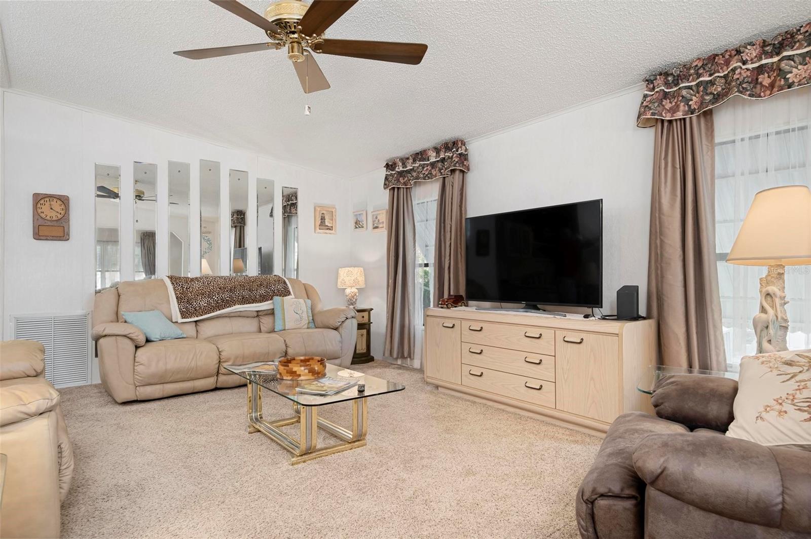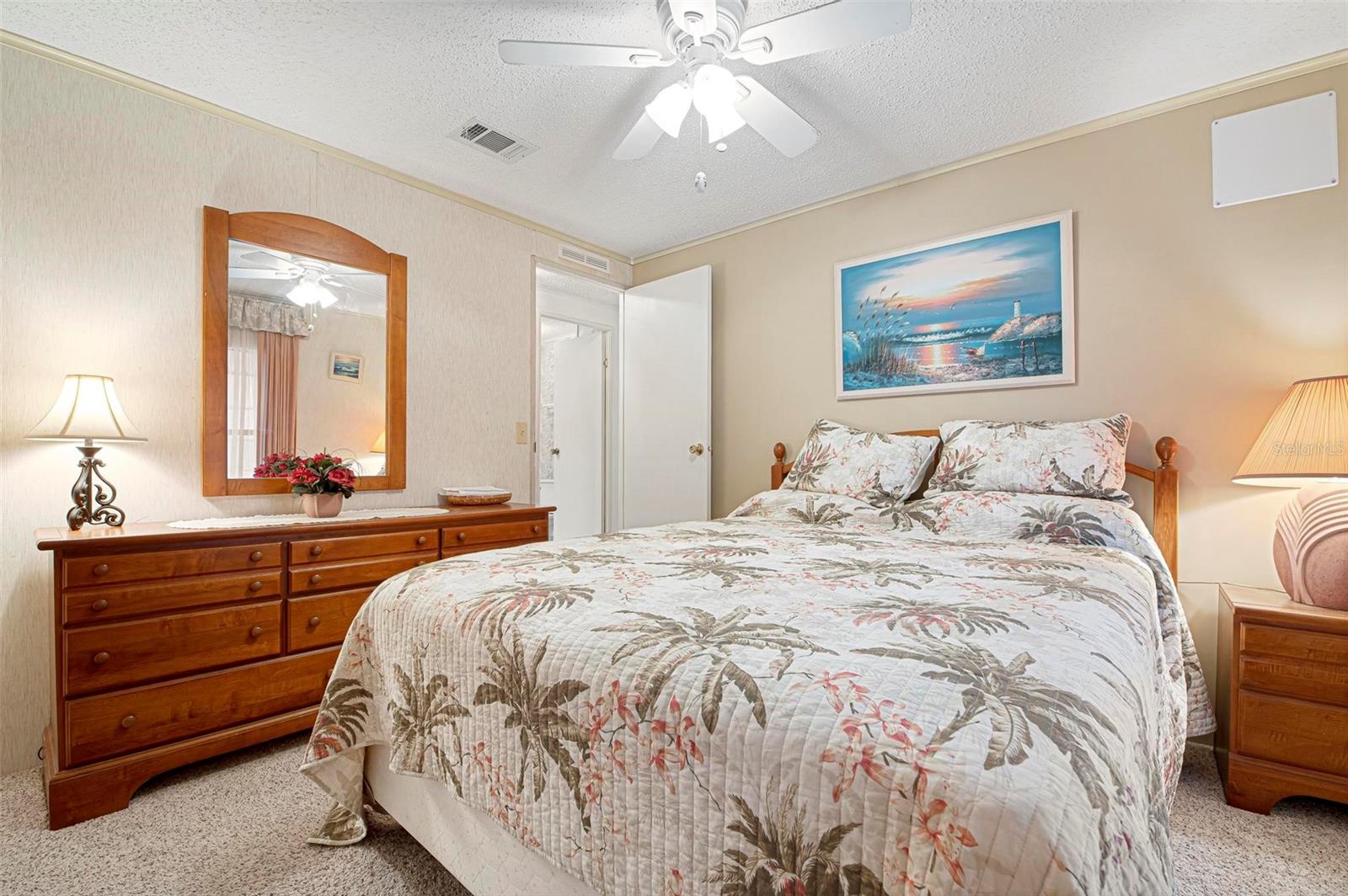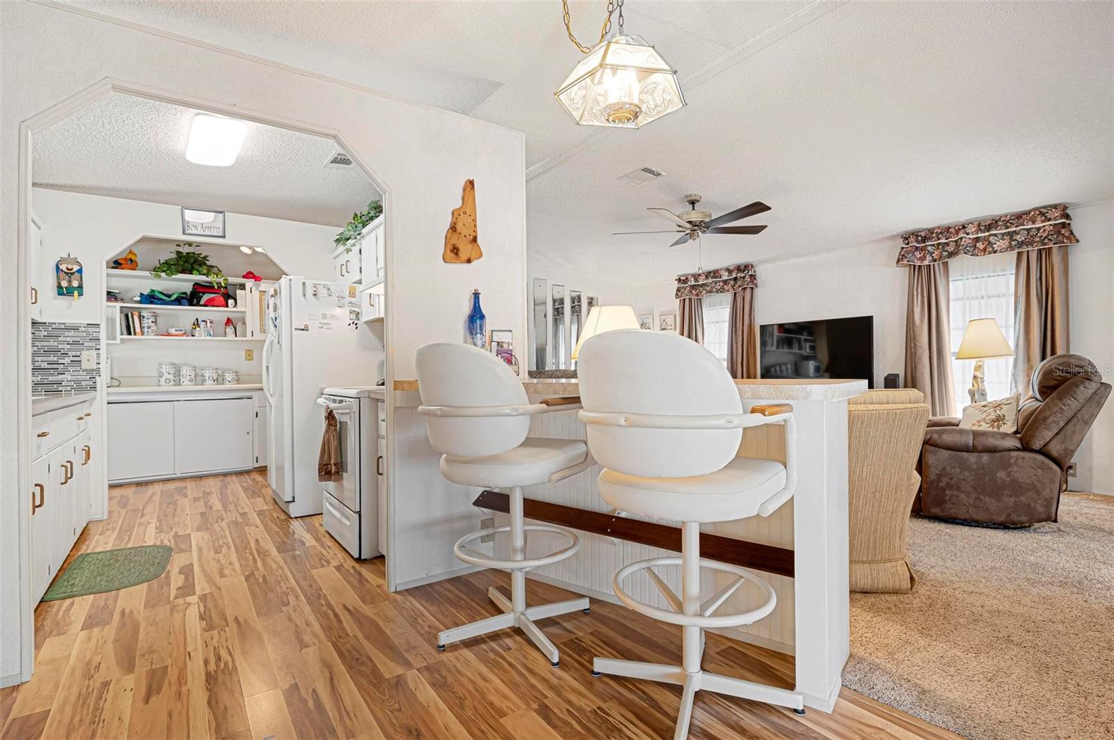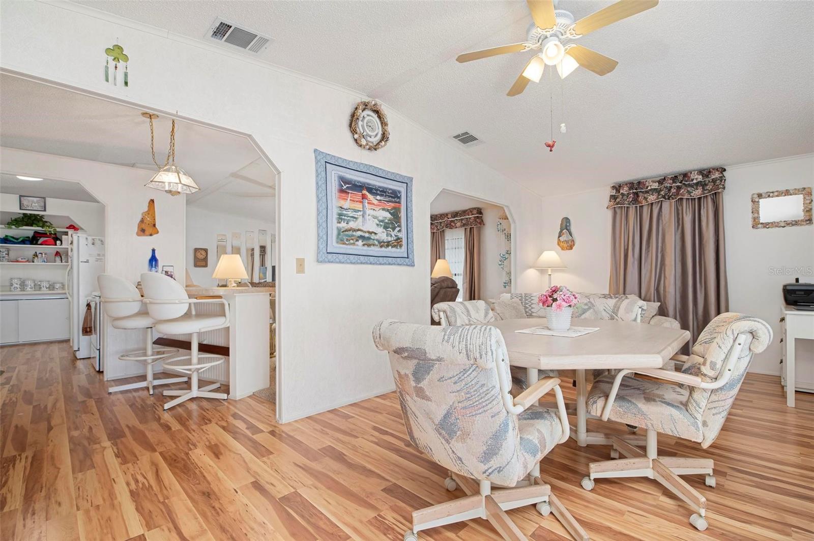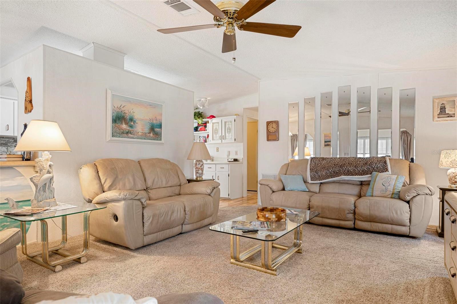 Discover this well-maintained 1988 mobile home offering plenty of space and comfort, sold fully furnished for a seamless move-in experience. Upon entering, you'll be welcomed by a bright and airy flex space, filled with natural light from the front-facing windows, ideal for a cozy sitting area, home office, or creative space. The spacious living room provides ample room for entertaining, while the kitchen features a convenient bar-top counter with built-in storage, perfect for casual dining or enjoying drinks with friends. A dedicated indoor laundry room adds to the home's functionality. The large primary bedroom boasts an ensuite bath and generous closet space. Recent updates include flooring (within the past six years), bathroom renovations (within the past 10 years), and major improvements such as a new roof, replumbing, and a new water heater. The HVAC system is only 10 years old, ensuring comfort and efficiency. Mobile Gardens offers an optional, low-cost HOA membership of $200 per year which grants access to amenities like a recreation center, shuffleboard, social events, and two community boat ramps. Boat slips are available separately on a first-come, first-served basis for an additional fee. Conveniently located near stunning Gulf beaches, shopping, dining, and live entertainment, this home is perfect as a seasonal getaway or investment opportunity. Embrace the Florida boating lifestyle—schedule your showing to see this turn-key furnished home!