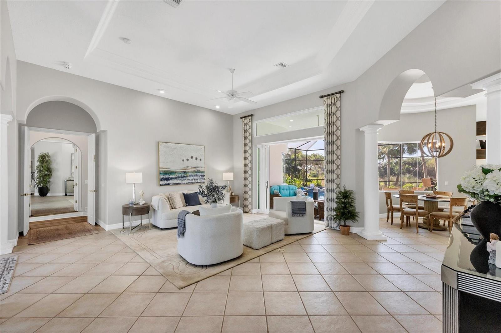Stunning Lakefront Estate in Boca Royale – Englewood’s Most Exclusive Gated Community Discover the pinnacle of Florida living in this breathtaking lakefront estate, nestled within the prestigious gated community of Boca Royale in Englewood. This former Arthur Rutenburg model home is a perfect blend of casual elegance and modern comfort, designed with a passion for detail and style. Featuring four spacious bedrooms, a dedicated office, three luxurious bathrooms, and an oversized two-car garage, this home offers everything you need for sophisticated living. The moment you enter, you are greeted by towering leaded glass doors that set the tone for the grandeur that lies within. The open-concept design invites natural light to pour in through oversized windows and sliding glass doors, highlighting the soaring ceilings and providing spectacular views of the custom pool and serene lake beyond. This home is designed to entertain, with a spacious living room that flows seamlessly into the rest of the home, offering a perfect setting for family gatherings or entertaining friends. The gourmet kitchen is a chef's dream, boasting an expansive center island that doubles as additional prep space, and a breakfast bar perfect for casual dining or gathering with guests. Whether you're preparing a meal for two or hosting a crowd, the kitchen offers ample room and functionality for all your culinary endeavors. A thoughtfully designed split floor plan ensures privacy for everyone, while the separate coffee bar area adds a touch of convenience and luxury. Beyond the kitchen, the home offers a private laundry room and office area, enhancing its practicality and ensuring all your needs are met. Step outside to find two incredible outdoor living spaces within the lanai and pool area—one designed for relaxation and the other featuring a full outdoor kitchen with a Jenn-Air gas grill, wet bar, and beverage center. Dive into the sparkling pool or simply unwind while enjoying the tranquility of the pond and lush greenery that provides ultimate privacy. Living in Boca Royale means access to an unparalleled array of amenities. Grab your golf cart and within minutes, you’ll find yourself at the tennis and pickleball courts, or enjoy a workout at the state-of-the-art community gym. The clubhouse is a gathering spot for dining and socializing, with delicious meals and a lively bar where you can meet friends and neighbors. Boca Royale hosts numerous events throughout the year, providing endless opportunities to stay active, engaged, and connected. Don't miss the chance to call this extraordinary home your own. Schedule your private tour today and experience firsthand what makes Boca Royale one of the most sought-after communities in the area!